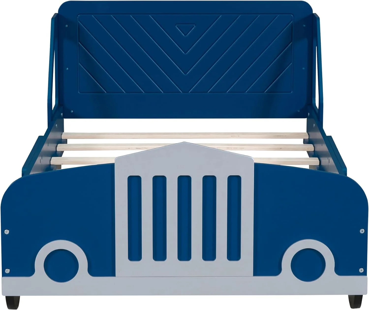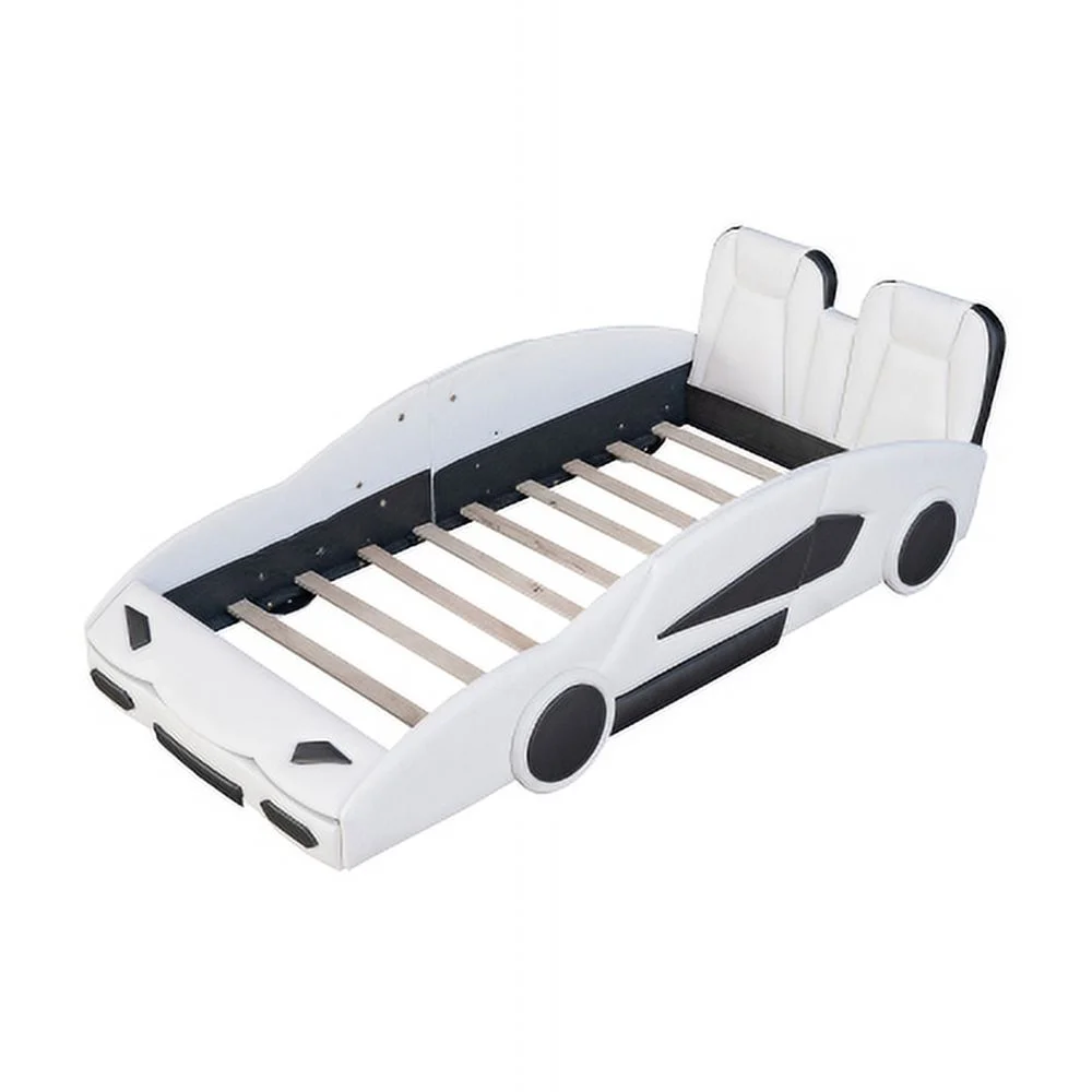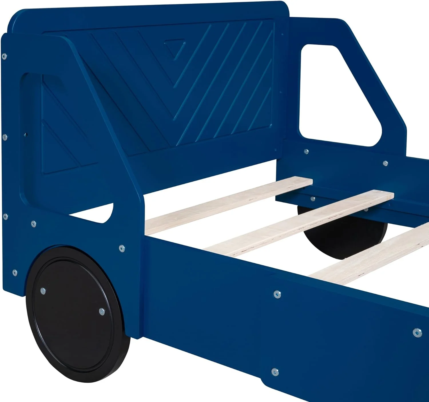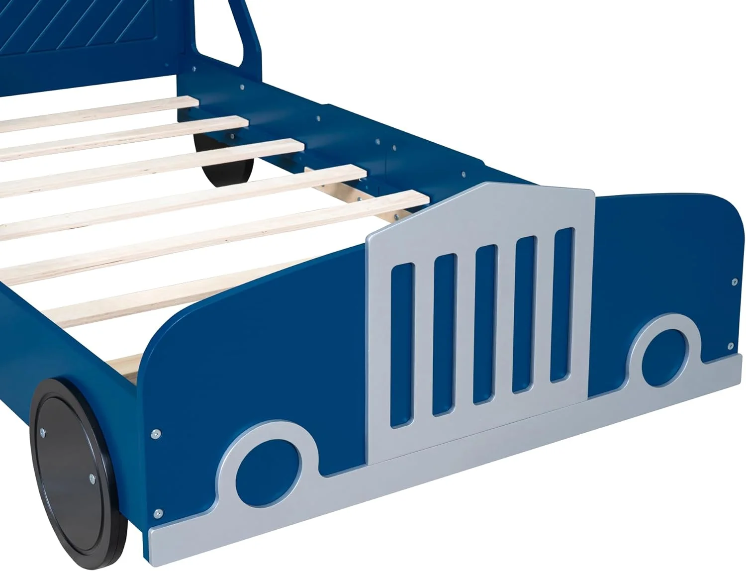 Twin Car Bed,Wooden Twin Size Car-Shaped Platform Bed Frame with Wheels