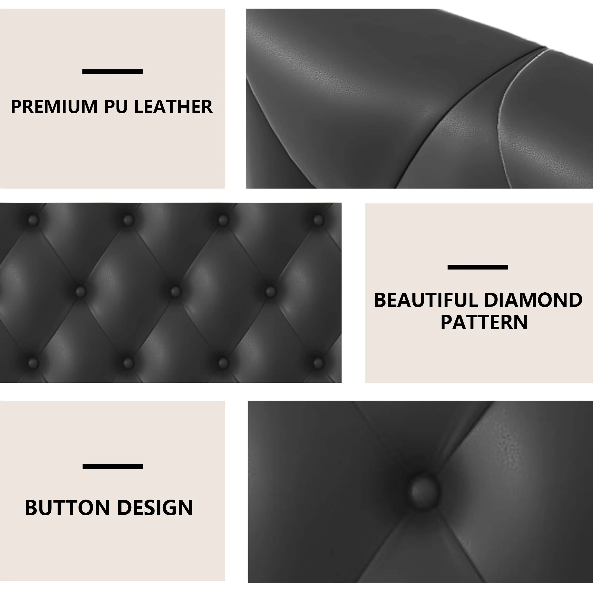 Twin Size Leatherette Bed with Checkered Tufted Headboard, Dark Brown - 43 x 79 x 43 in.