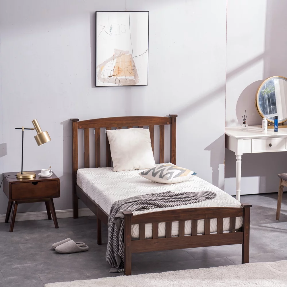 Cap vertical strip bed walnut Twin wood bed pine N201 PWB-044 Cap Vertical Strip Bed Walnut Twin
