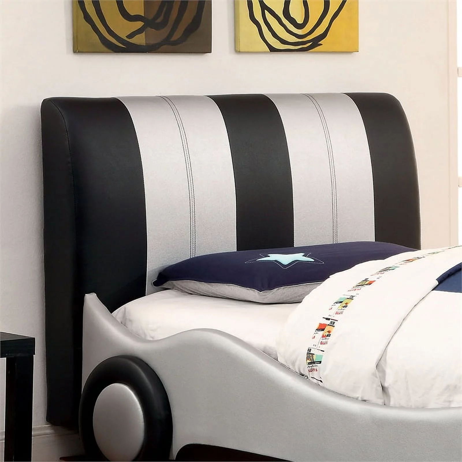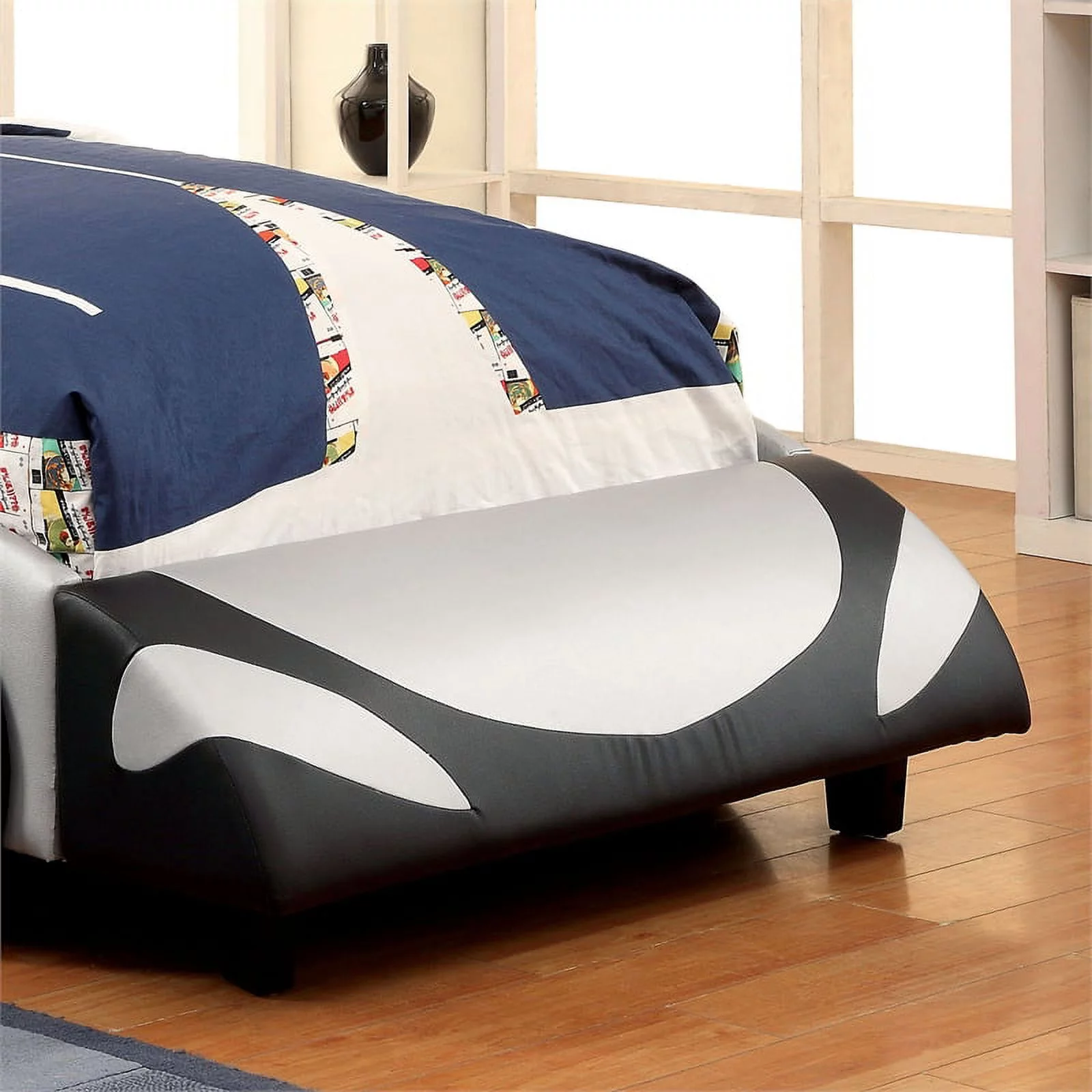 Furniture of America Coxx Faux Leather Full Race Car Bed in Black and Silver