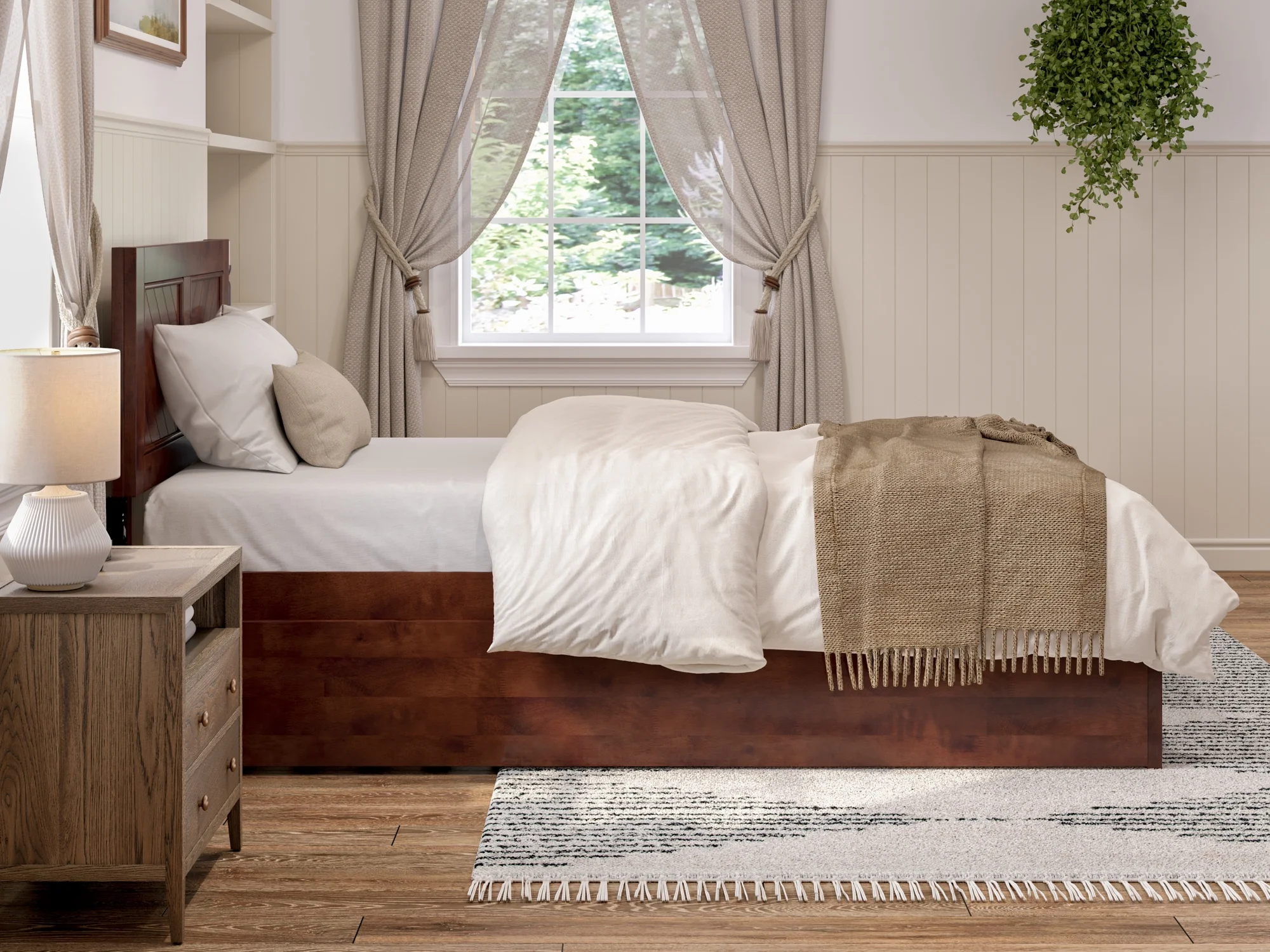 AFI Canyon Walnut Solid Wood Platform Bed with Matching Footboard & Twin Trundle, Twin