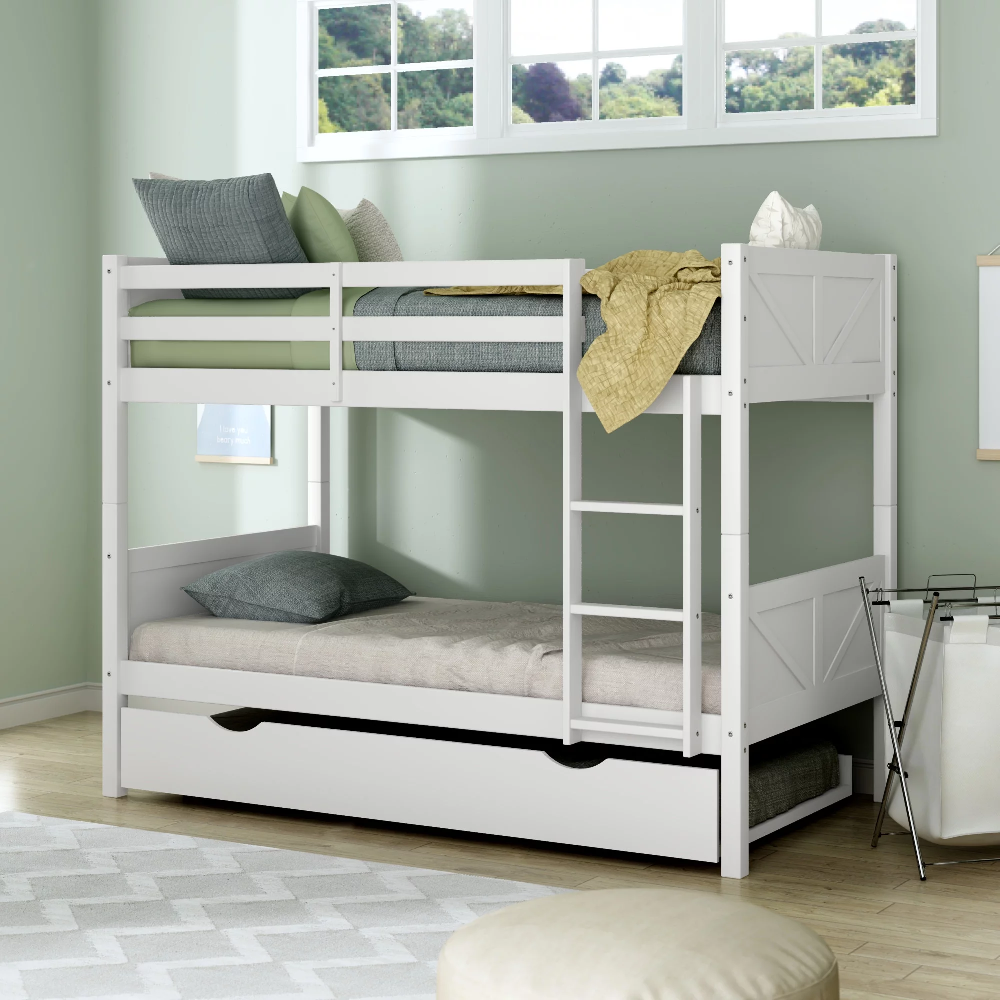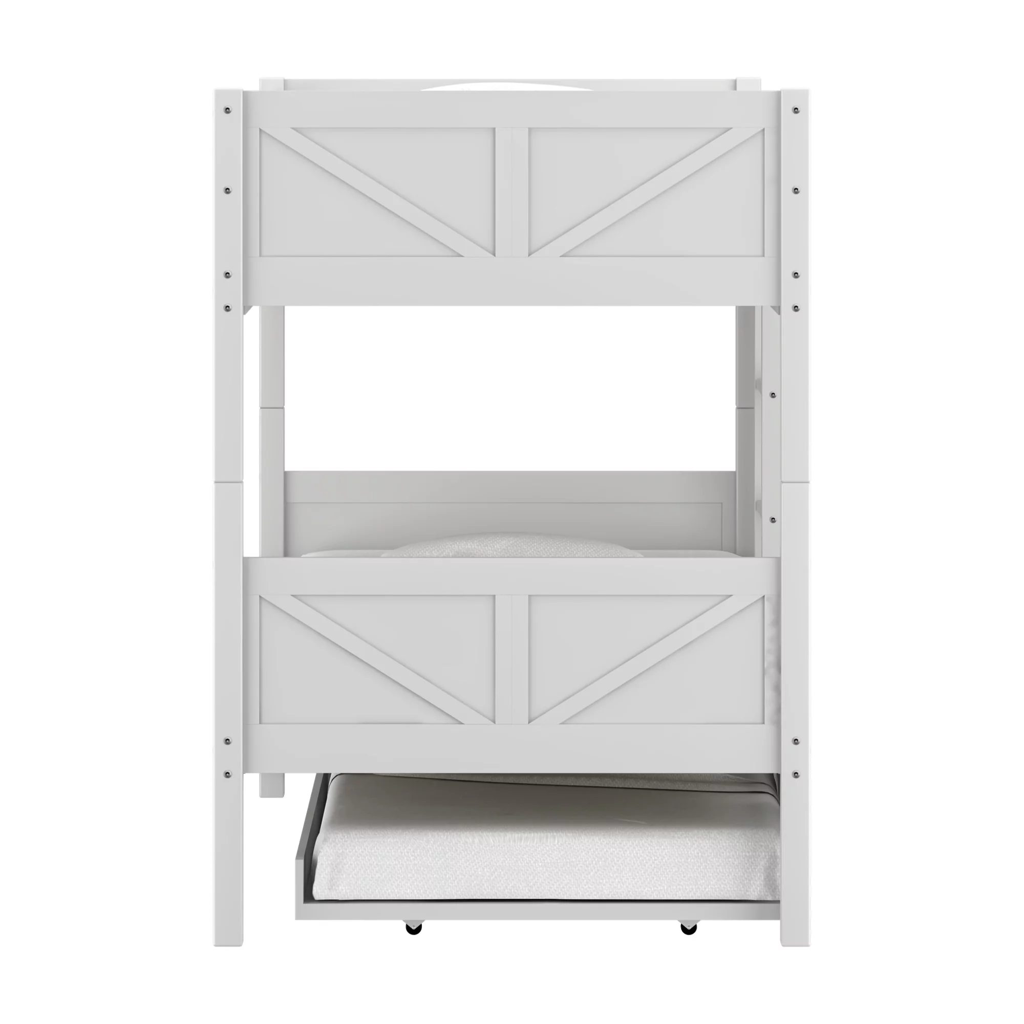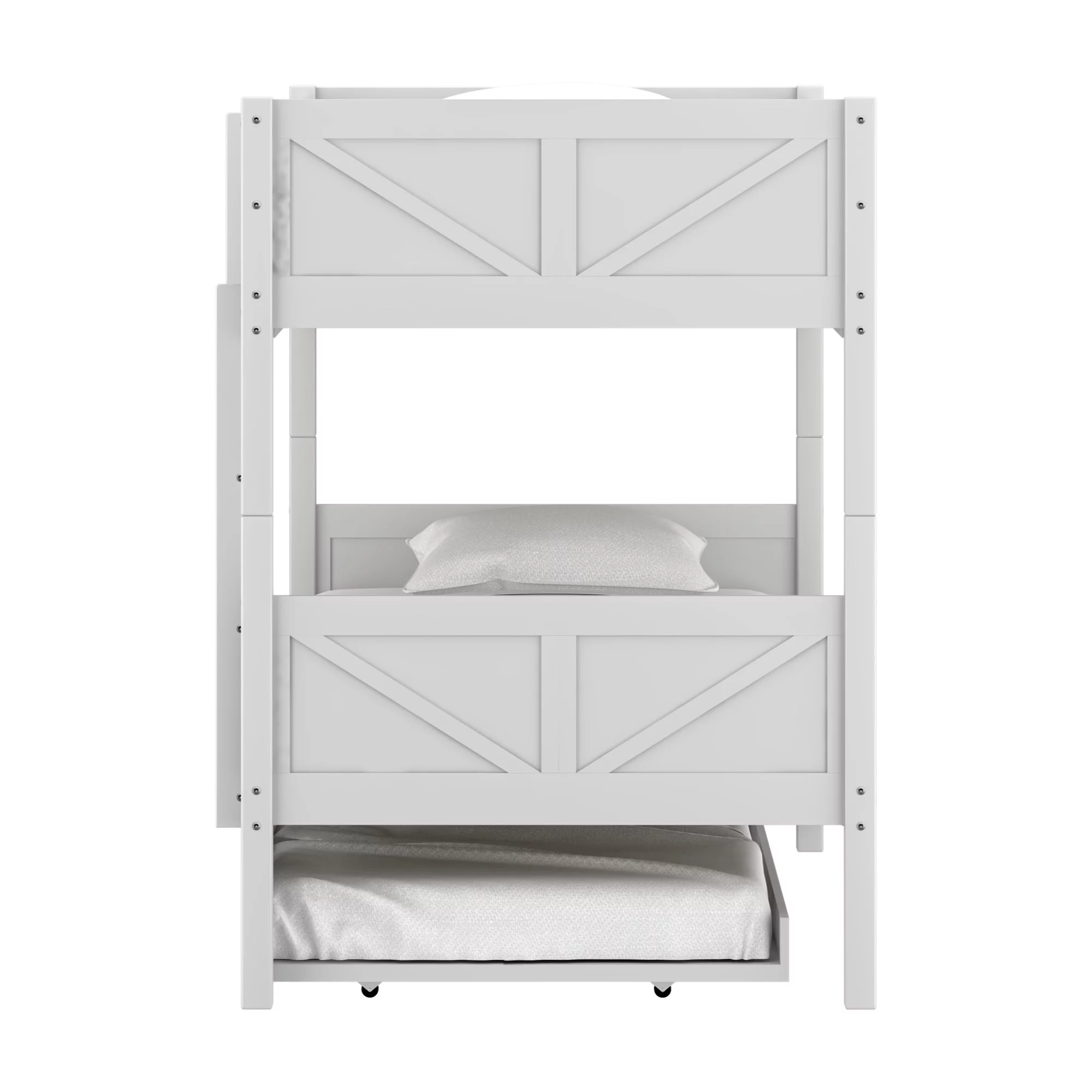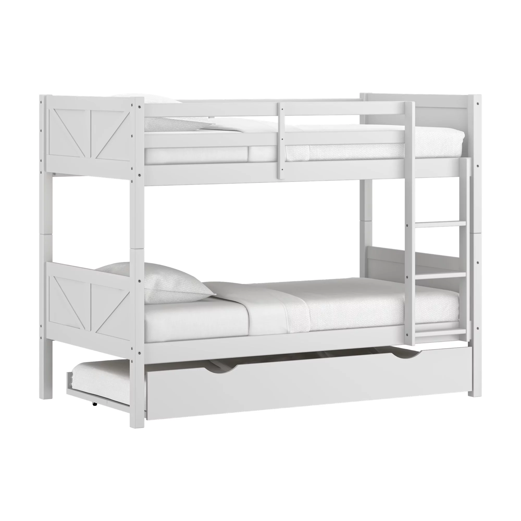 Rae Wood Twin Over Twin Bunk Bed with Trundle, White, by Hillsdale Living Essentials