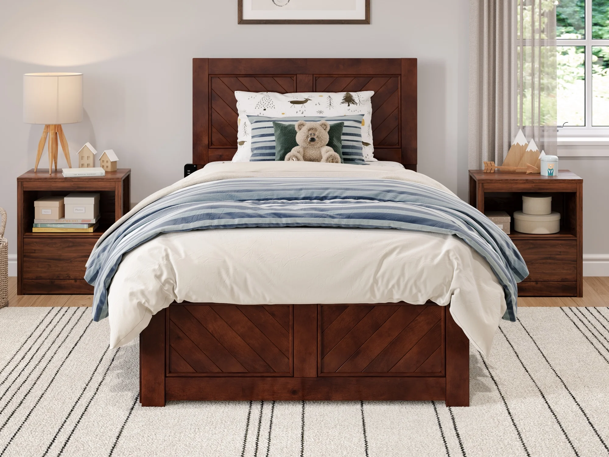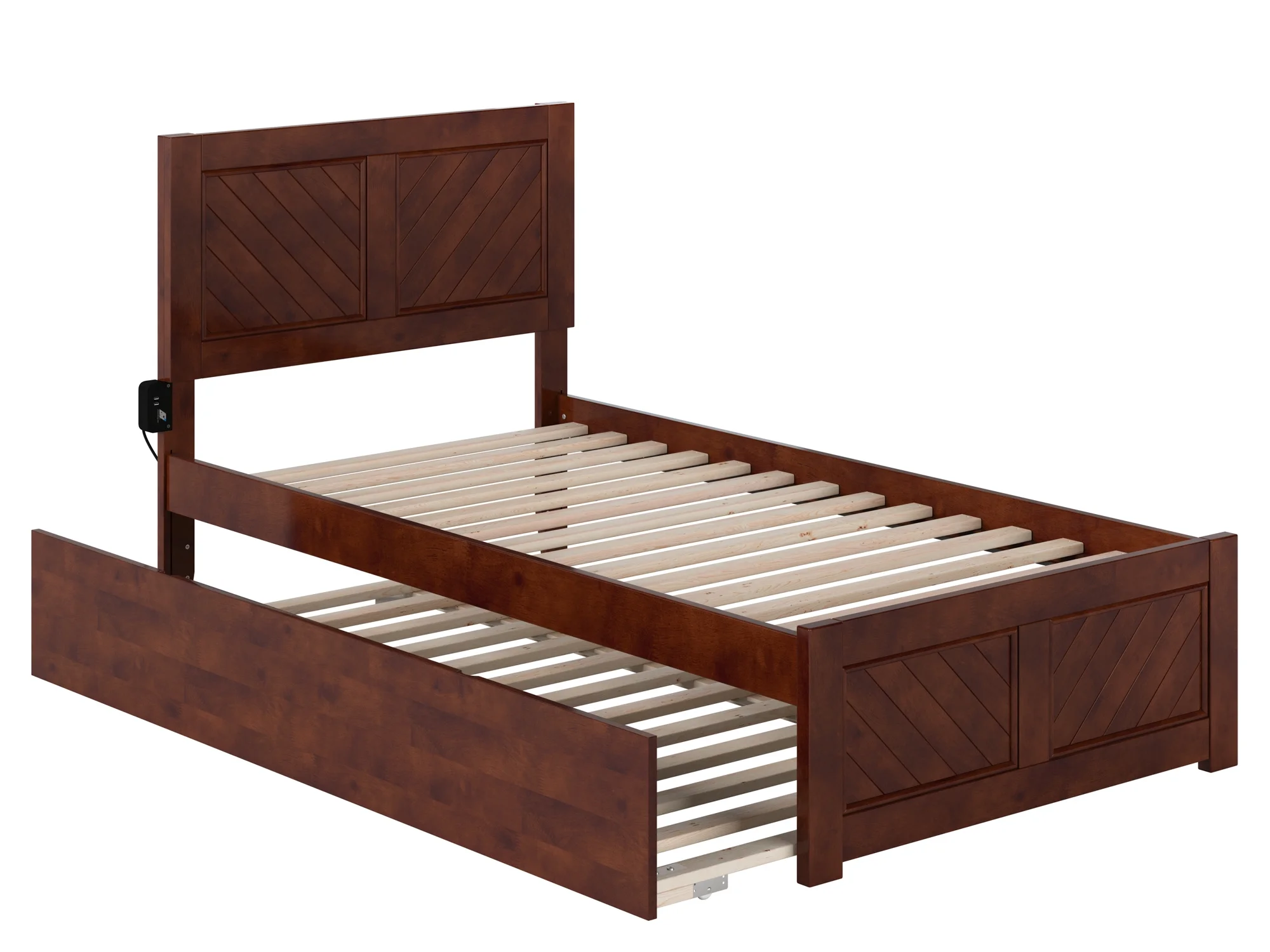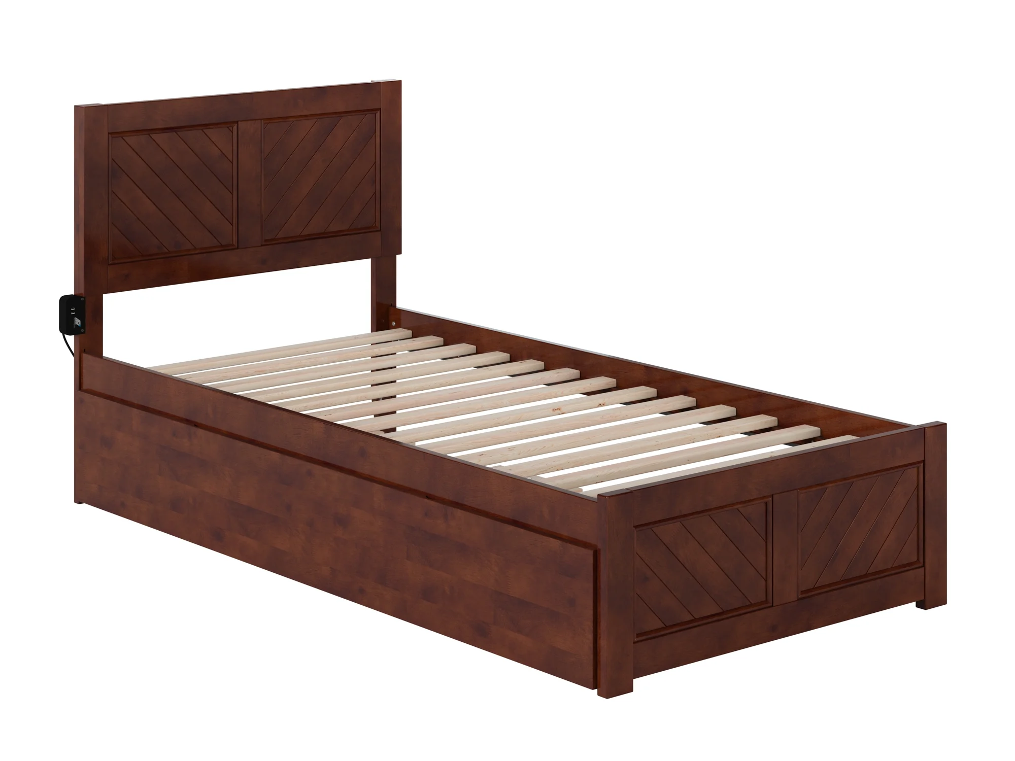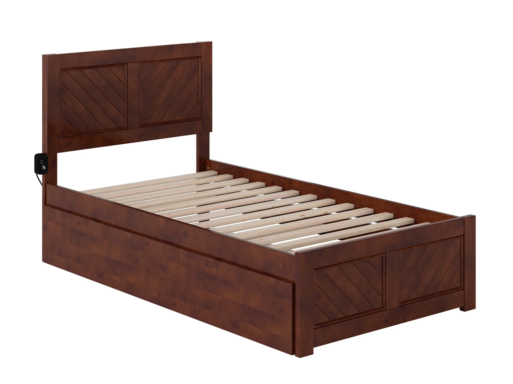 AFI Madison Twin Wood Platform Bed with Matching Footboard & Twin Trundle in Walnut