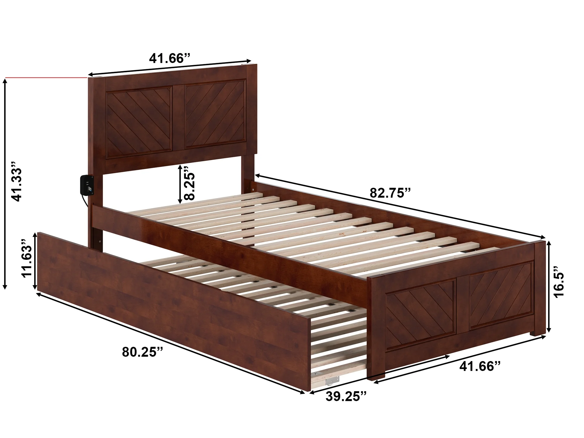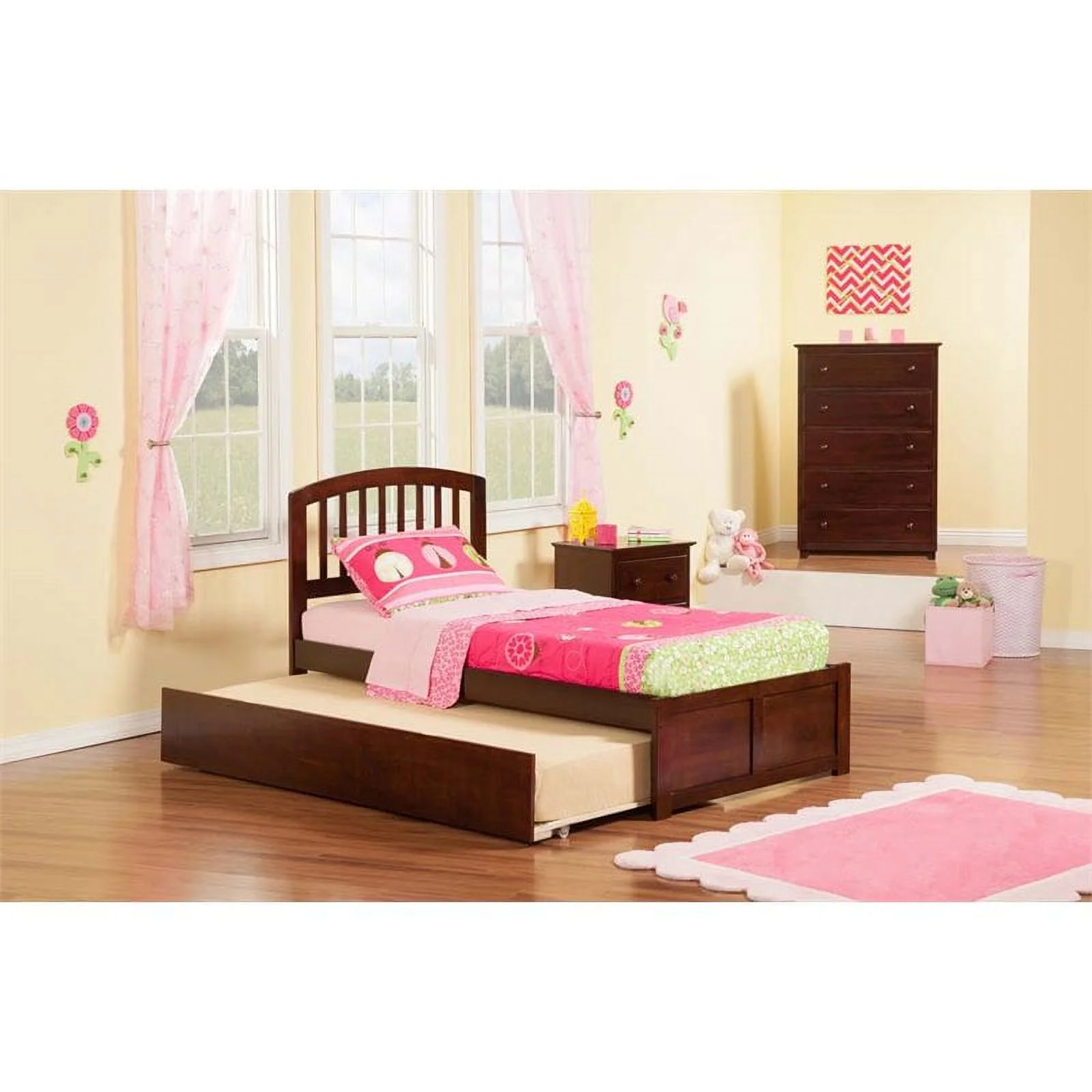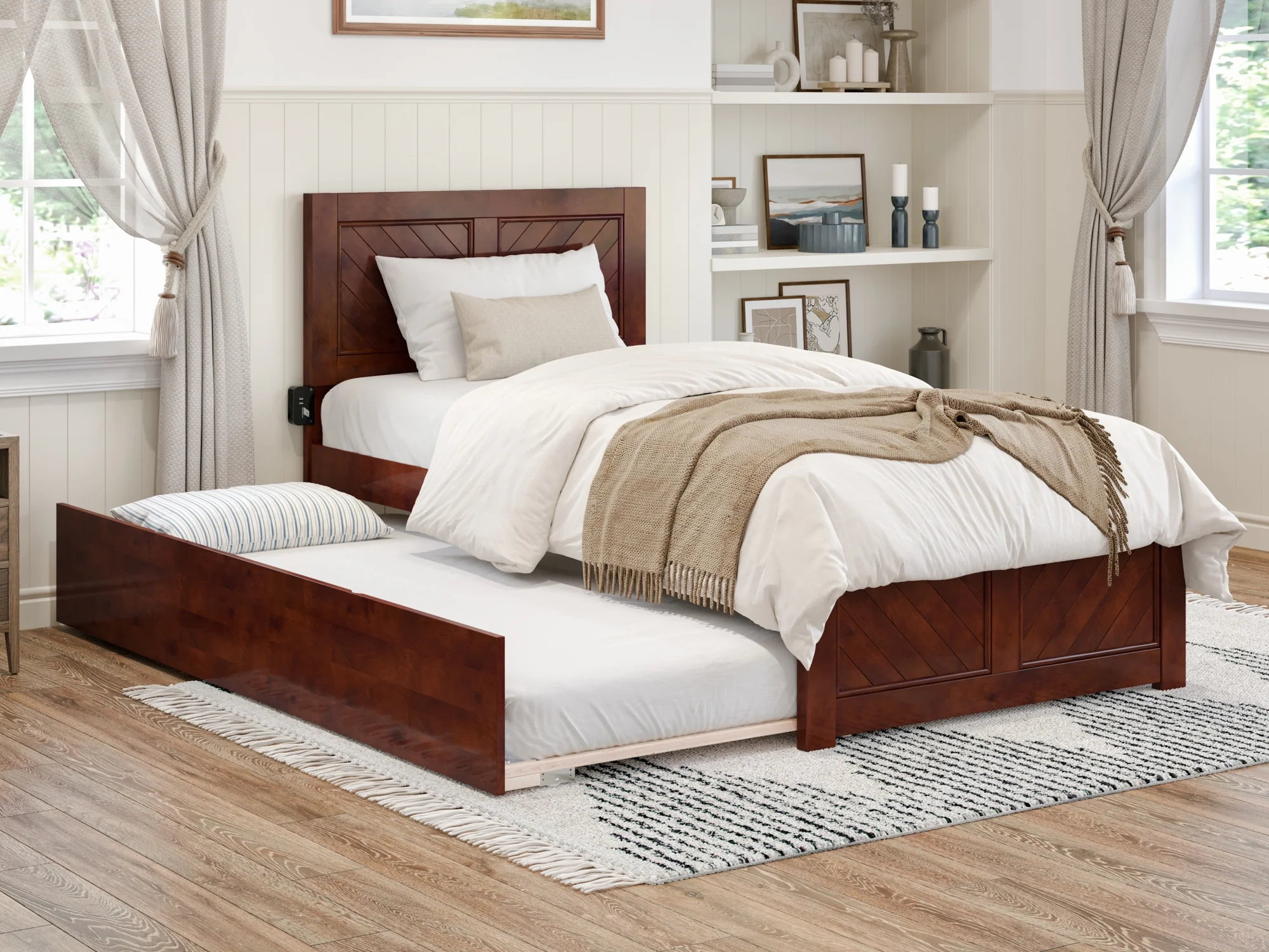 AFI Madison Twin Wood Platform Bed with Matching Footboard & Twin Trundle in Walnut