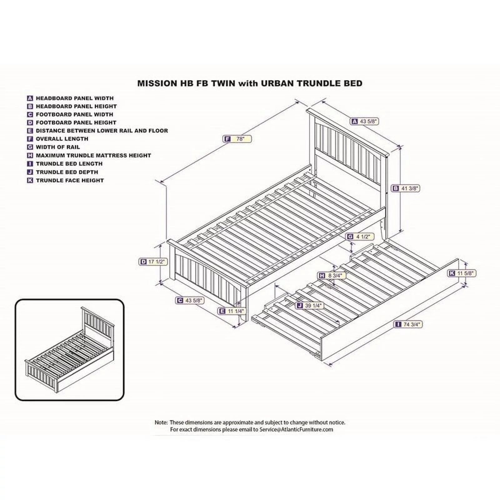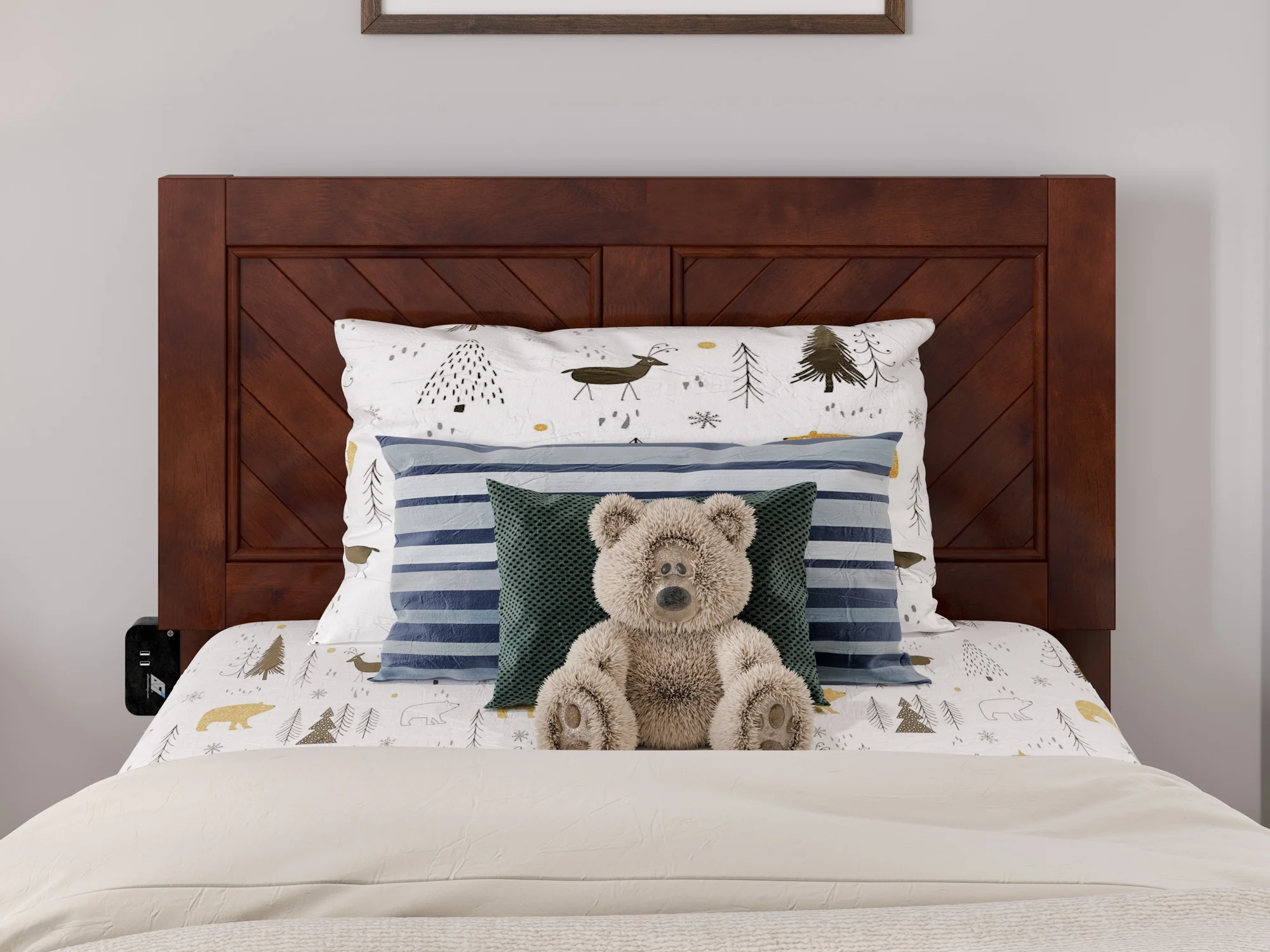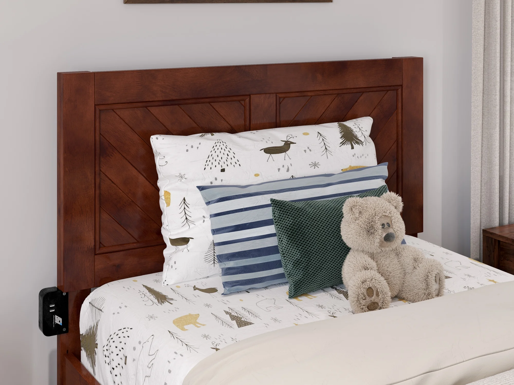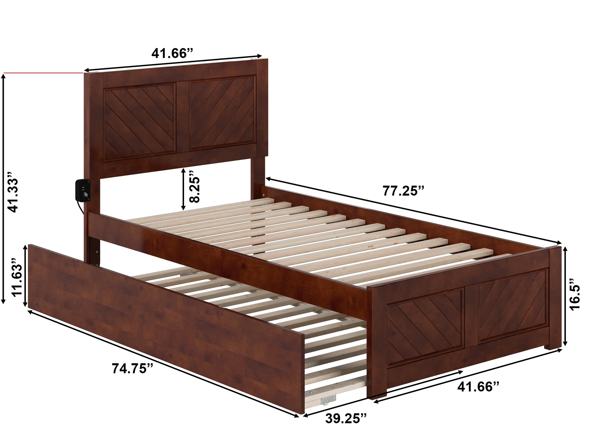 AFI Madison Twin Wood Platform Bed with Matching Footboard & Twin Trundle in Walnut