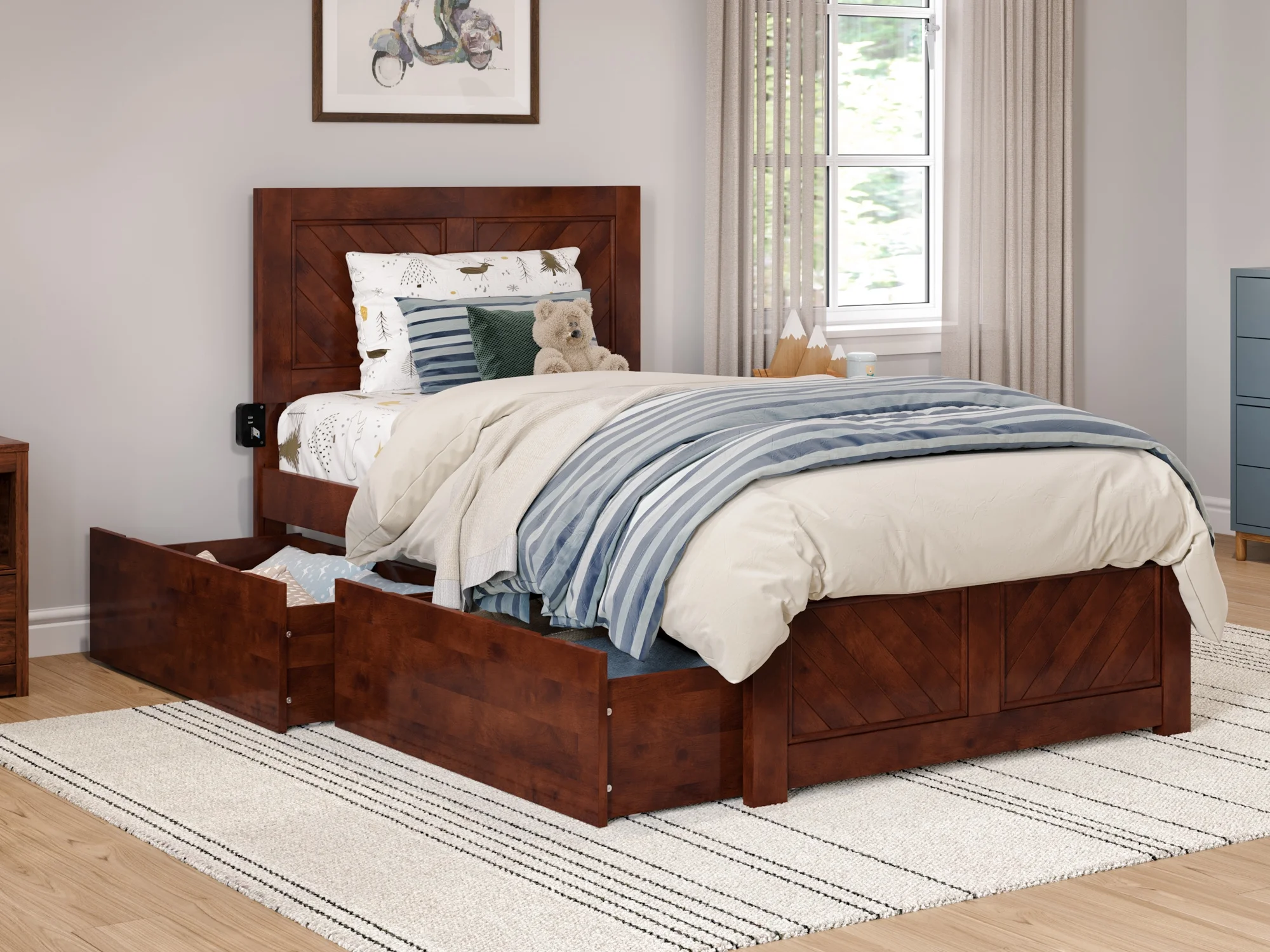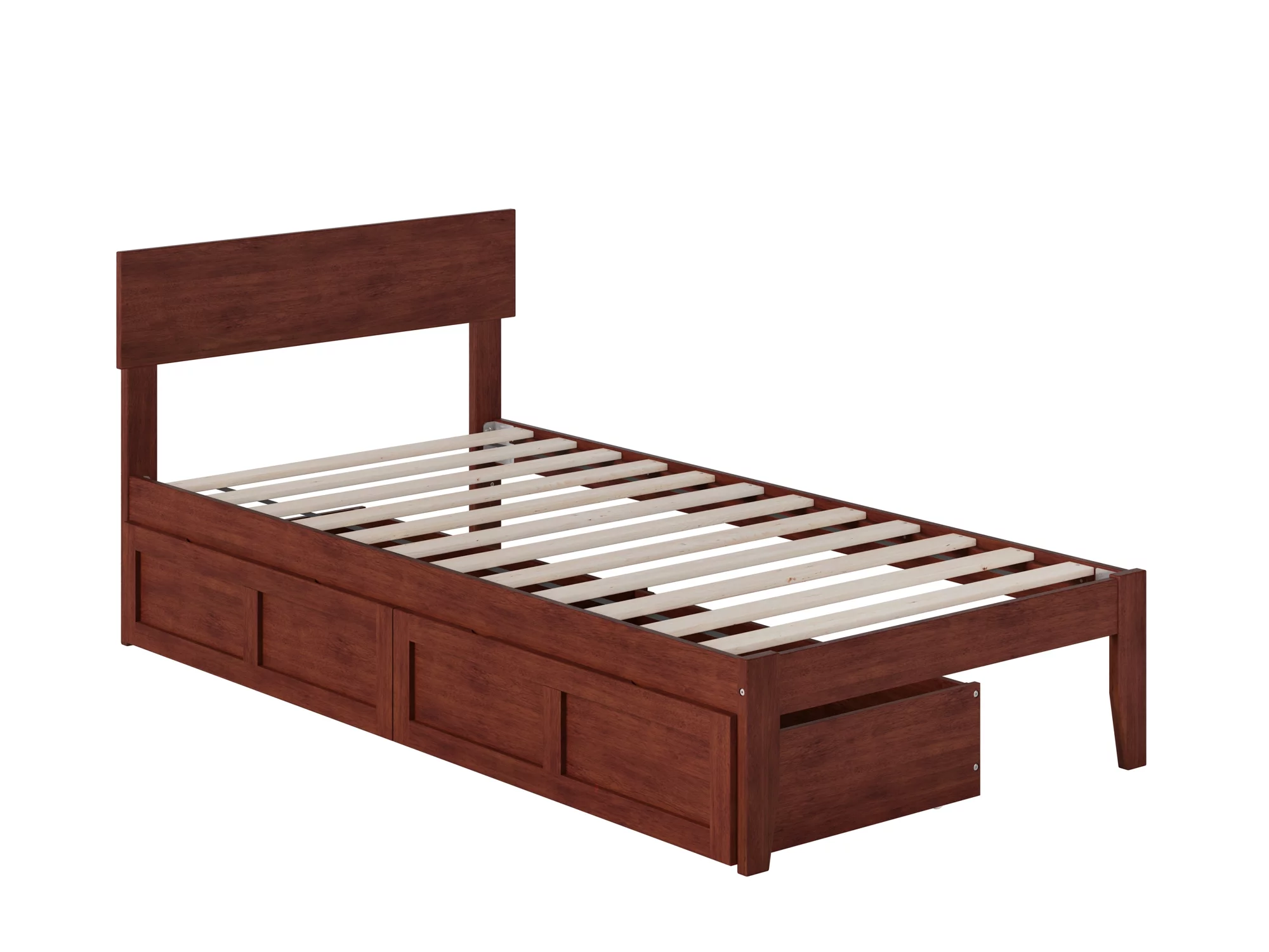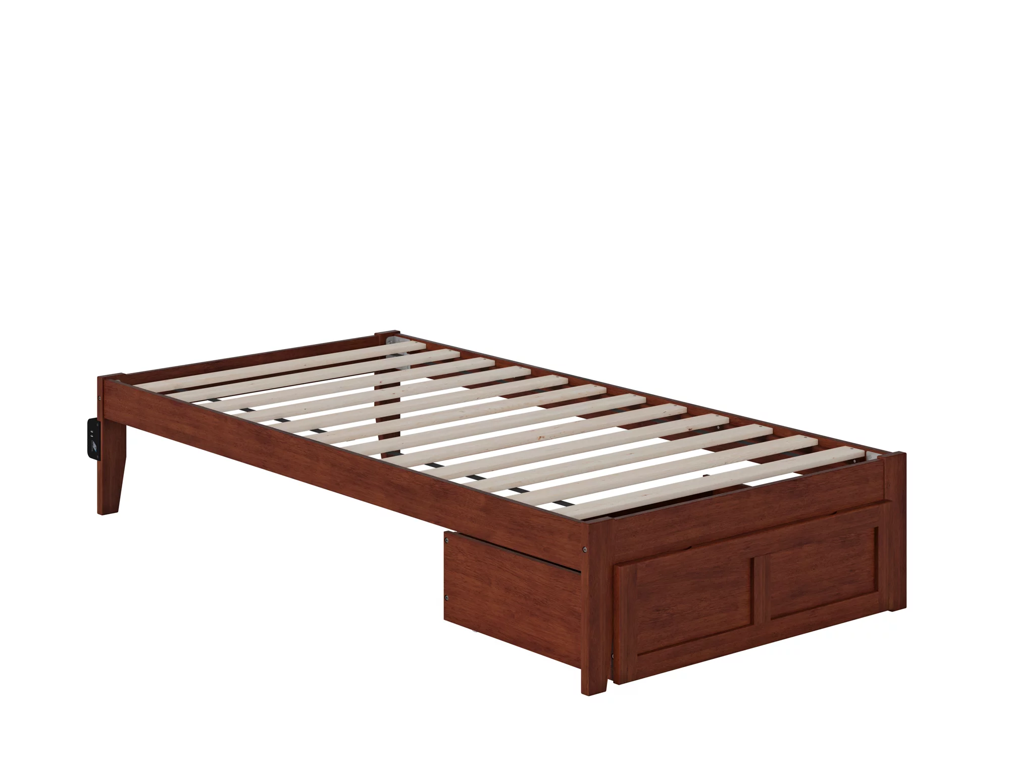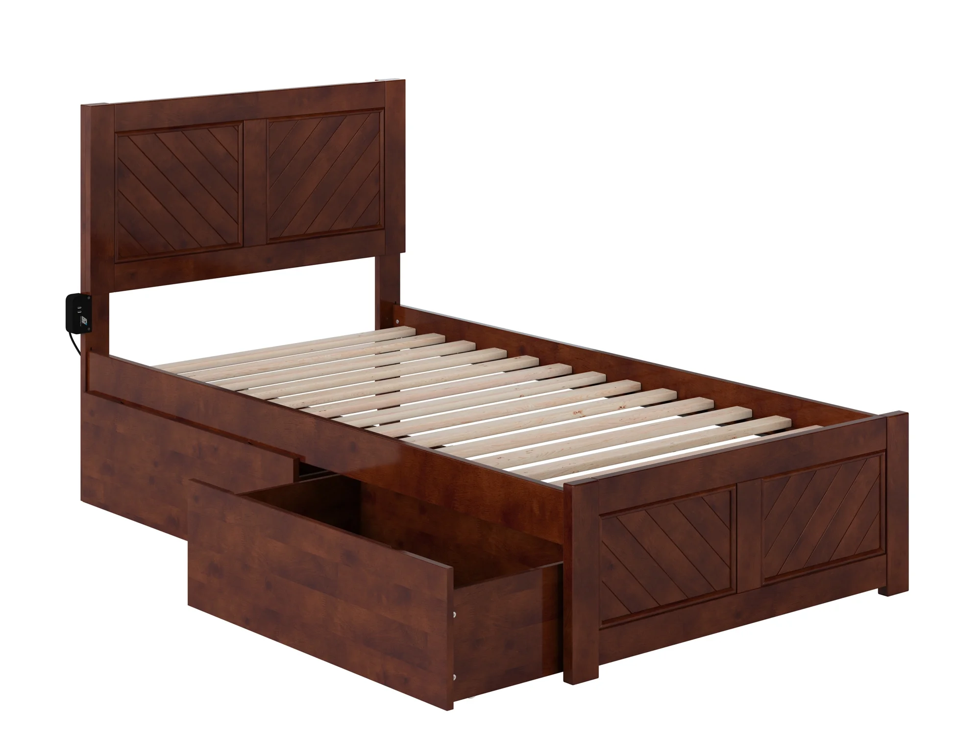 AFI Canyon Walnut Solid Wood Platform Bed with Matching Footboard & Storage Drawers, Twin