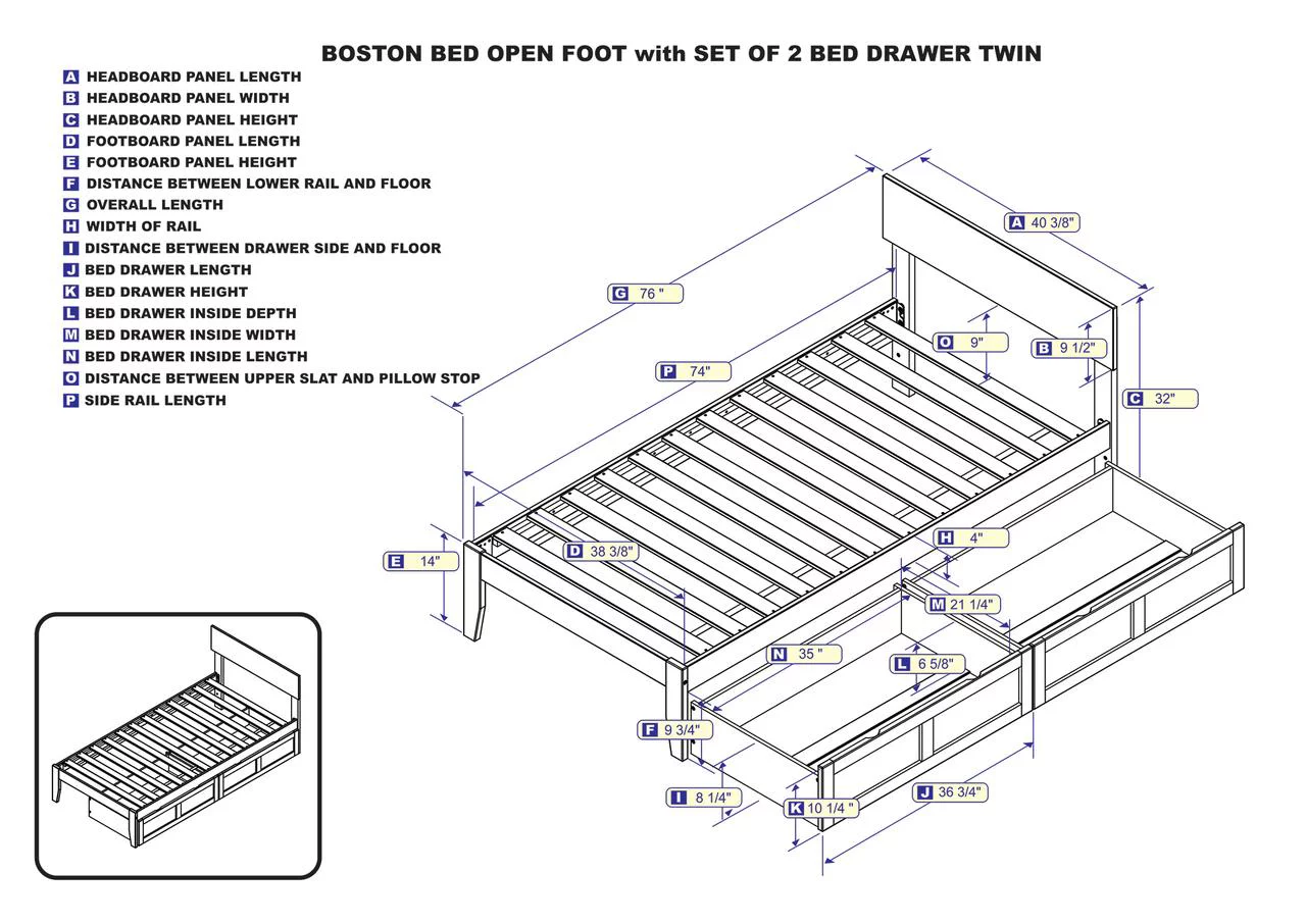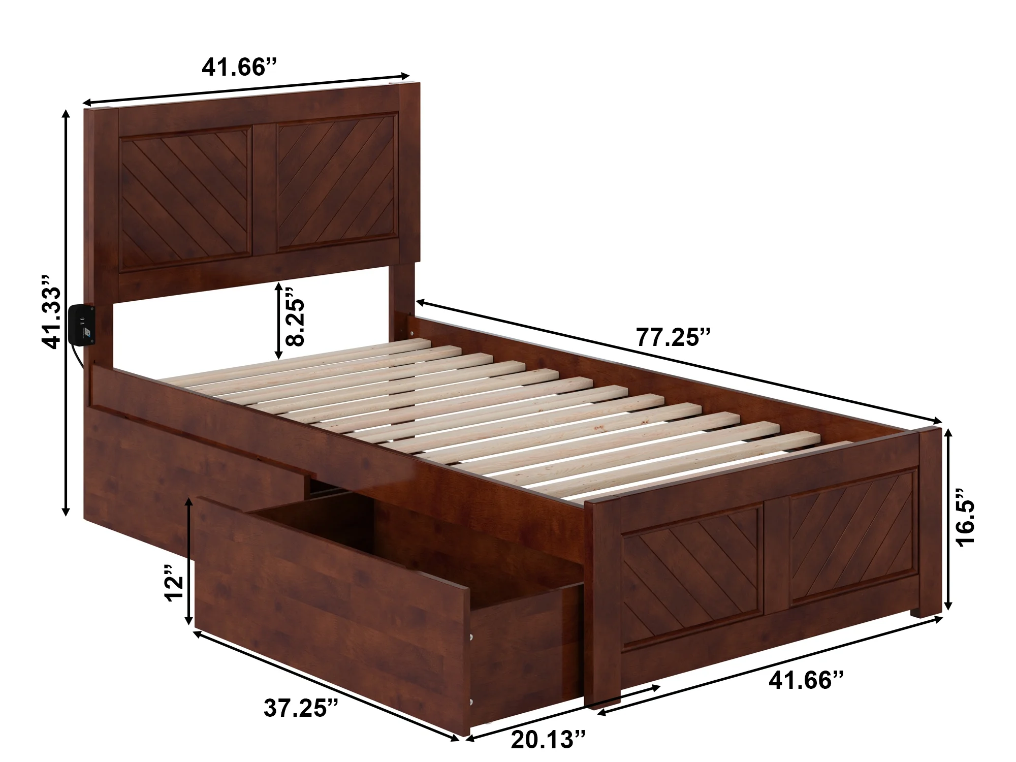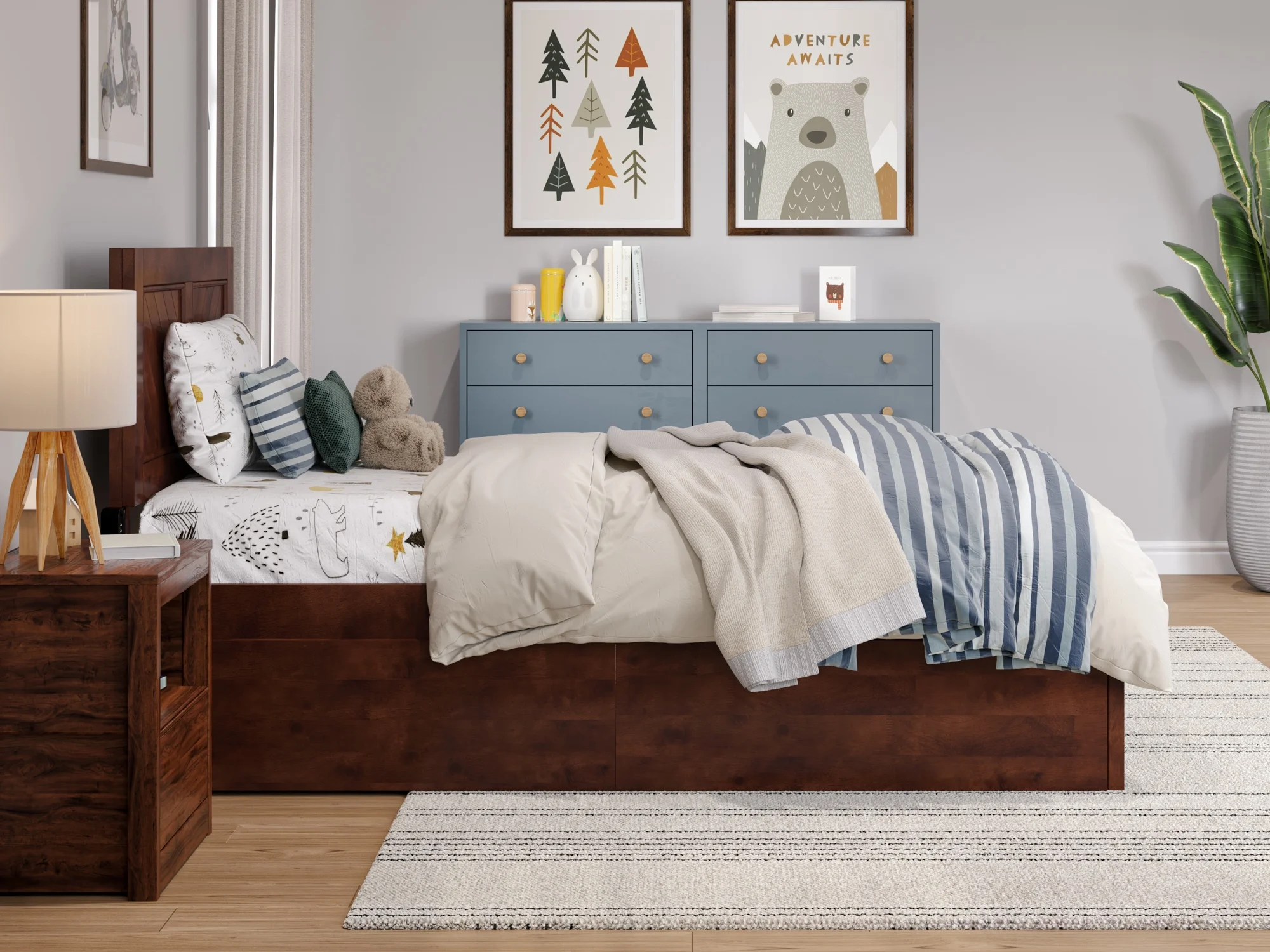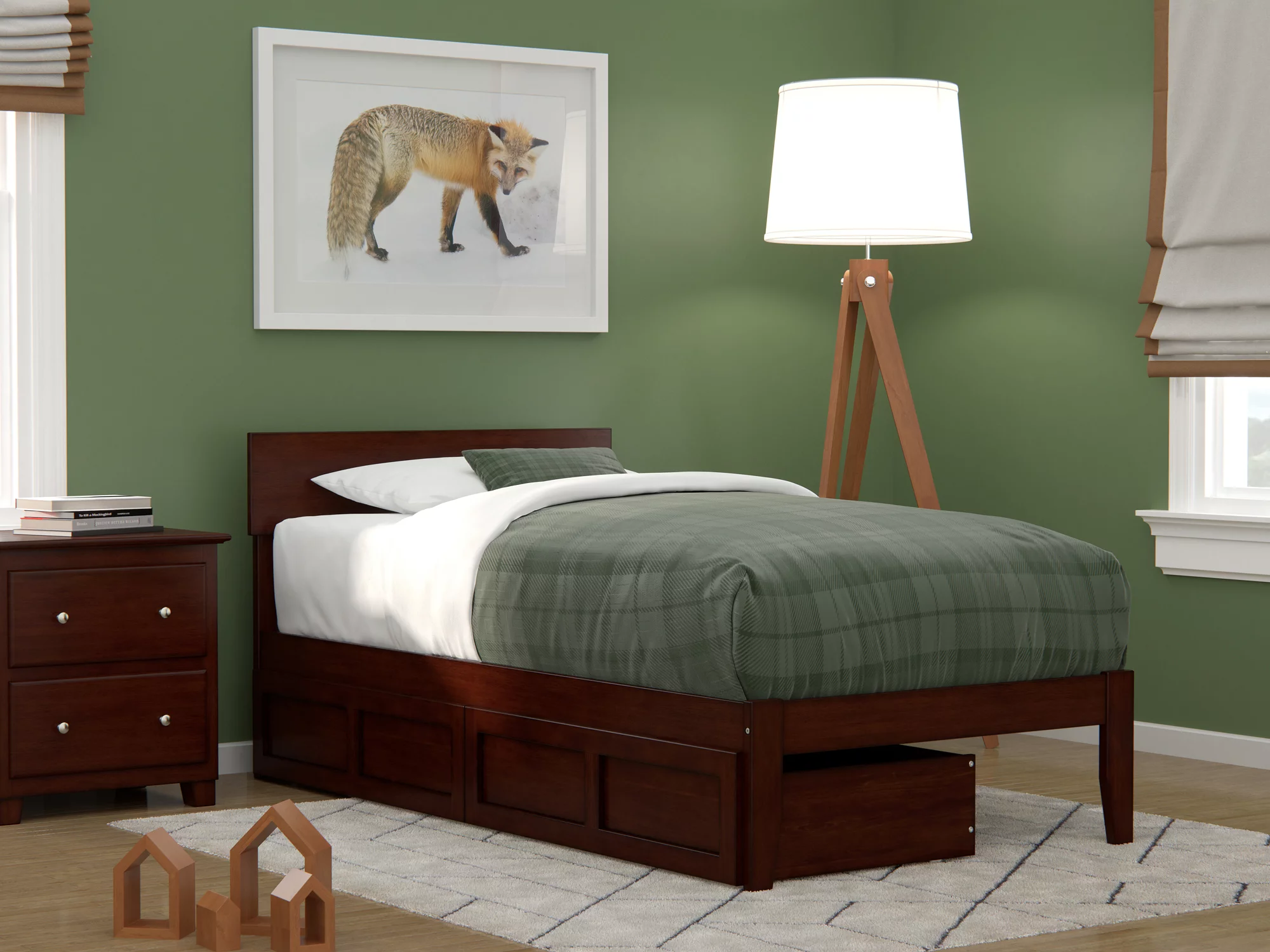 AFI Canyon Walnut Solid Wood Platform Bed with Matching Footboard & Storage Drawers, Twin