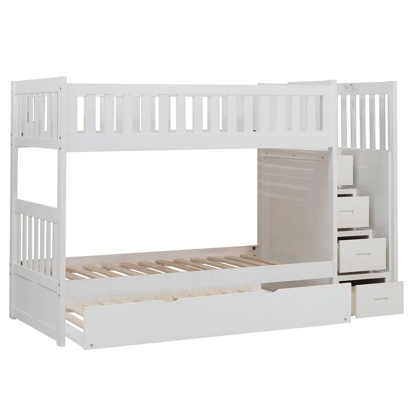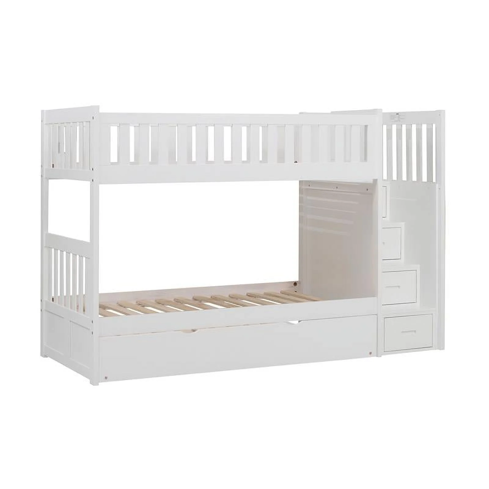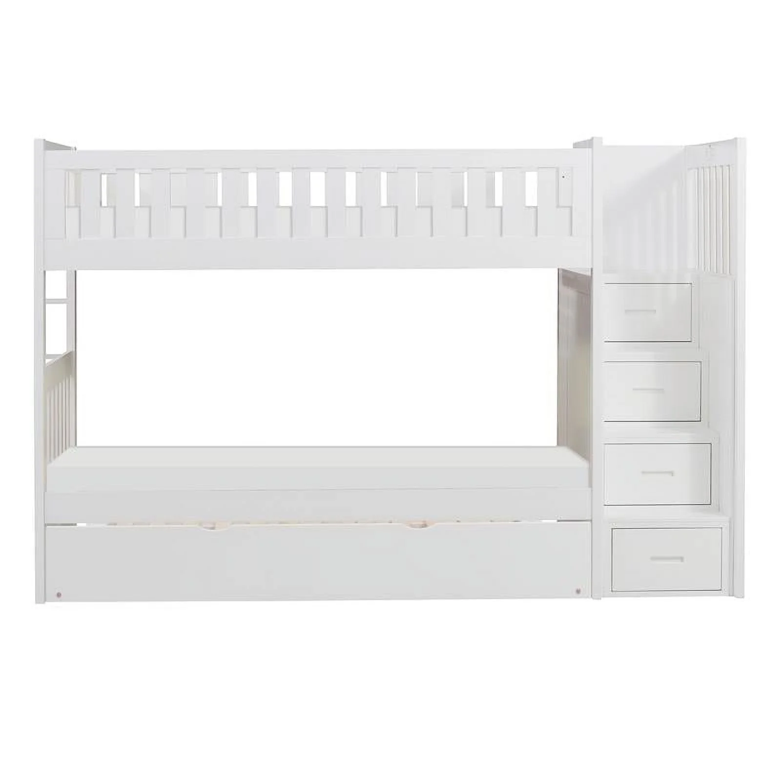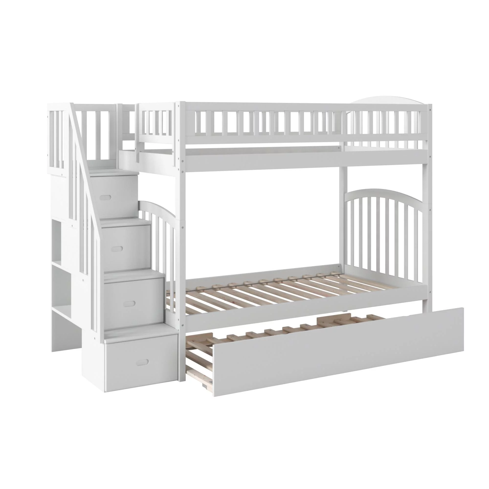 Westbrook Staircase Bunk Twin over Twin with Twin Size Urban Trundle Bed in White