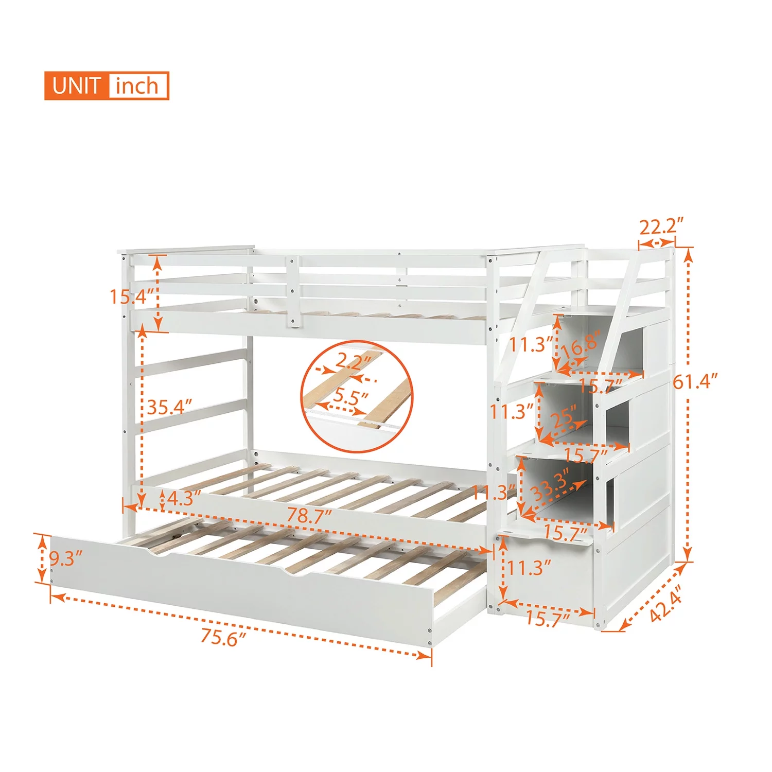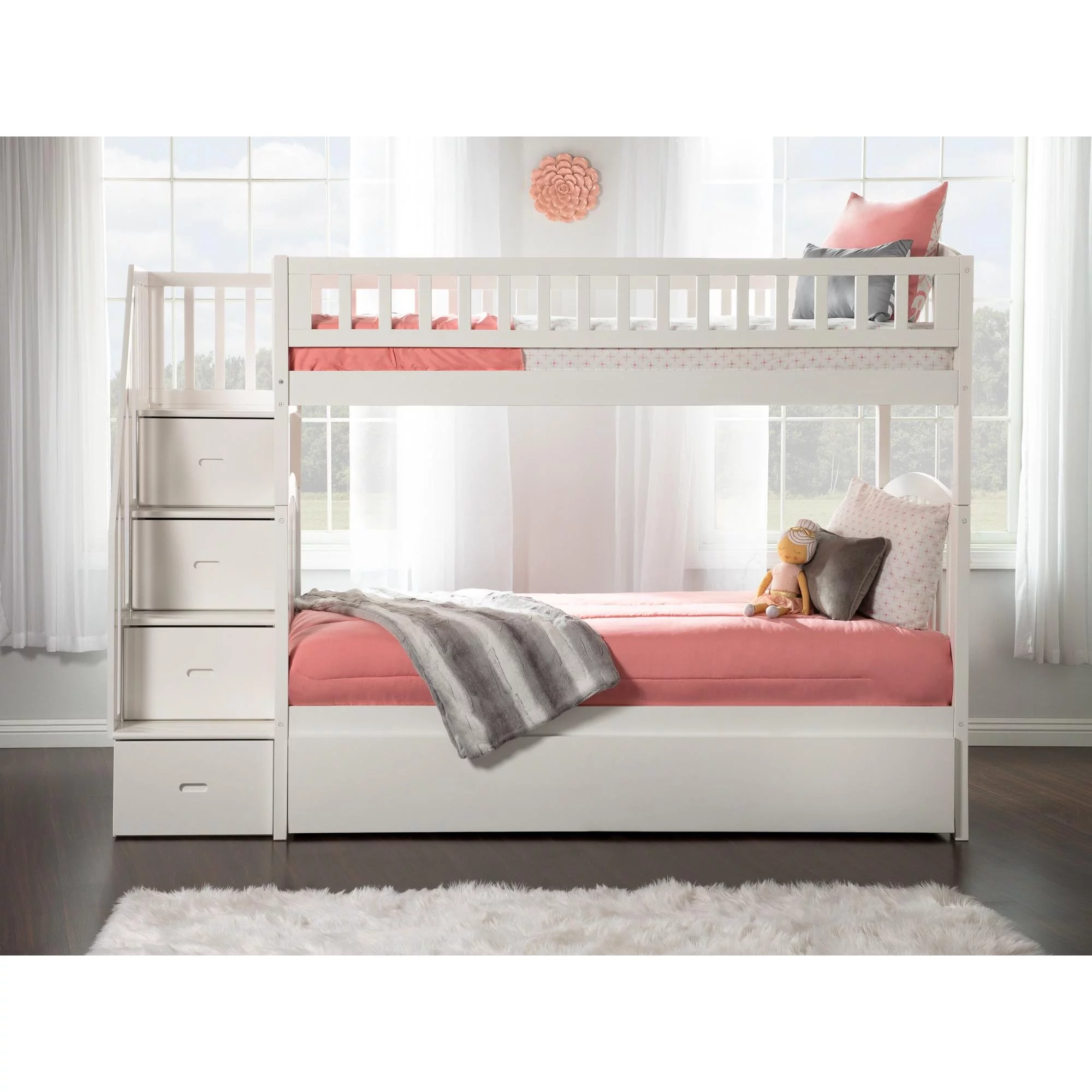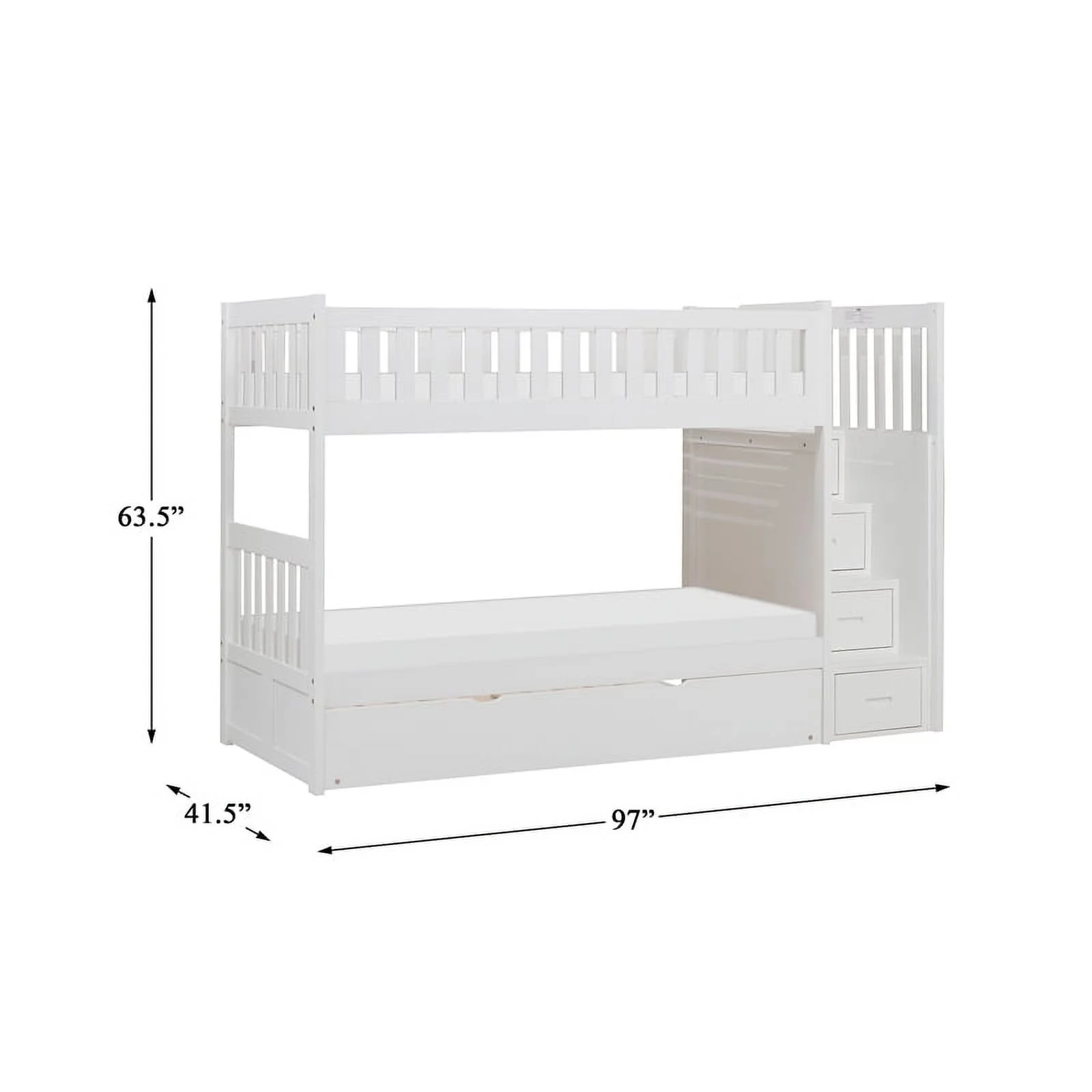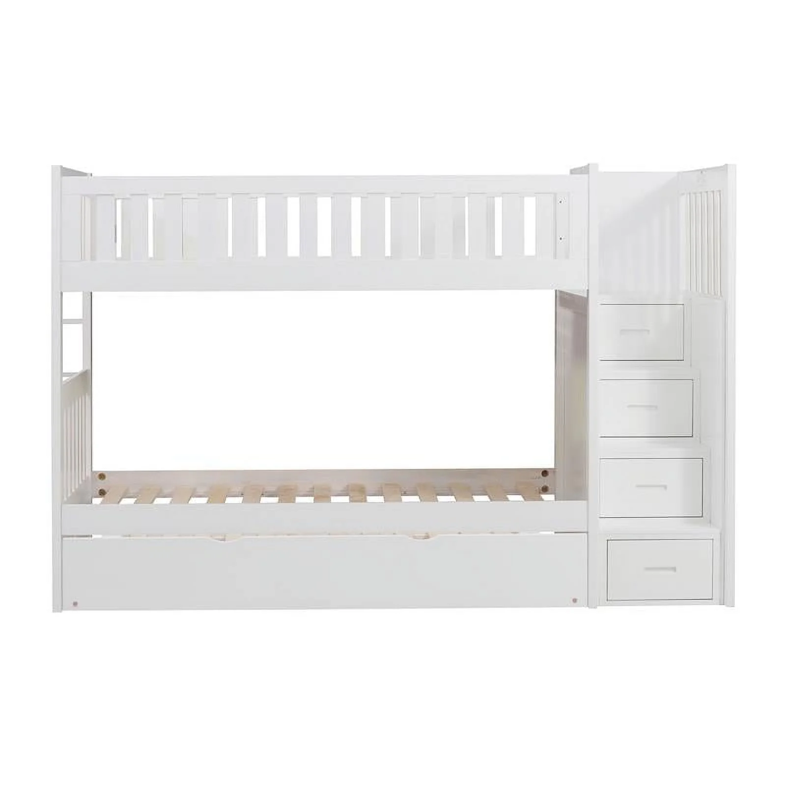 Westbrook Staircase Bunk Twin over Twin with Twin Size Urban Trundle Bed in White