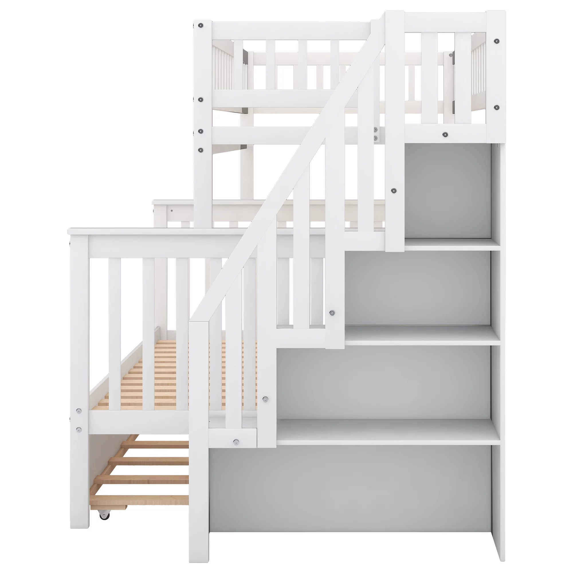 Lexicon Galen Reversible Step Storage Wood Bunk Bed with Trundle Bed in White