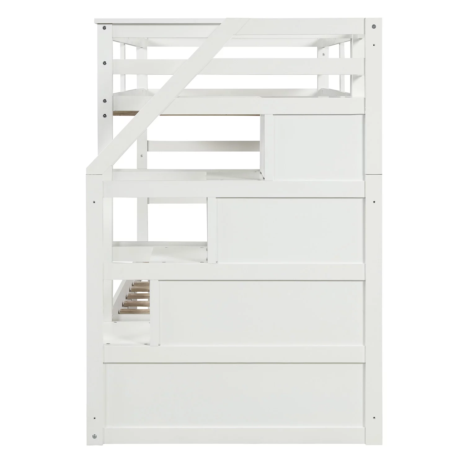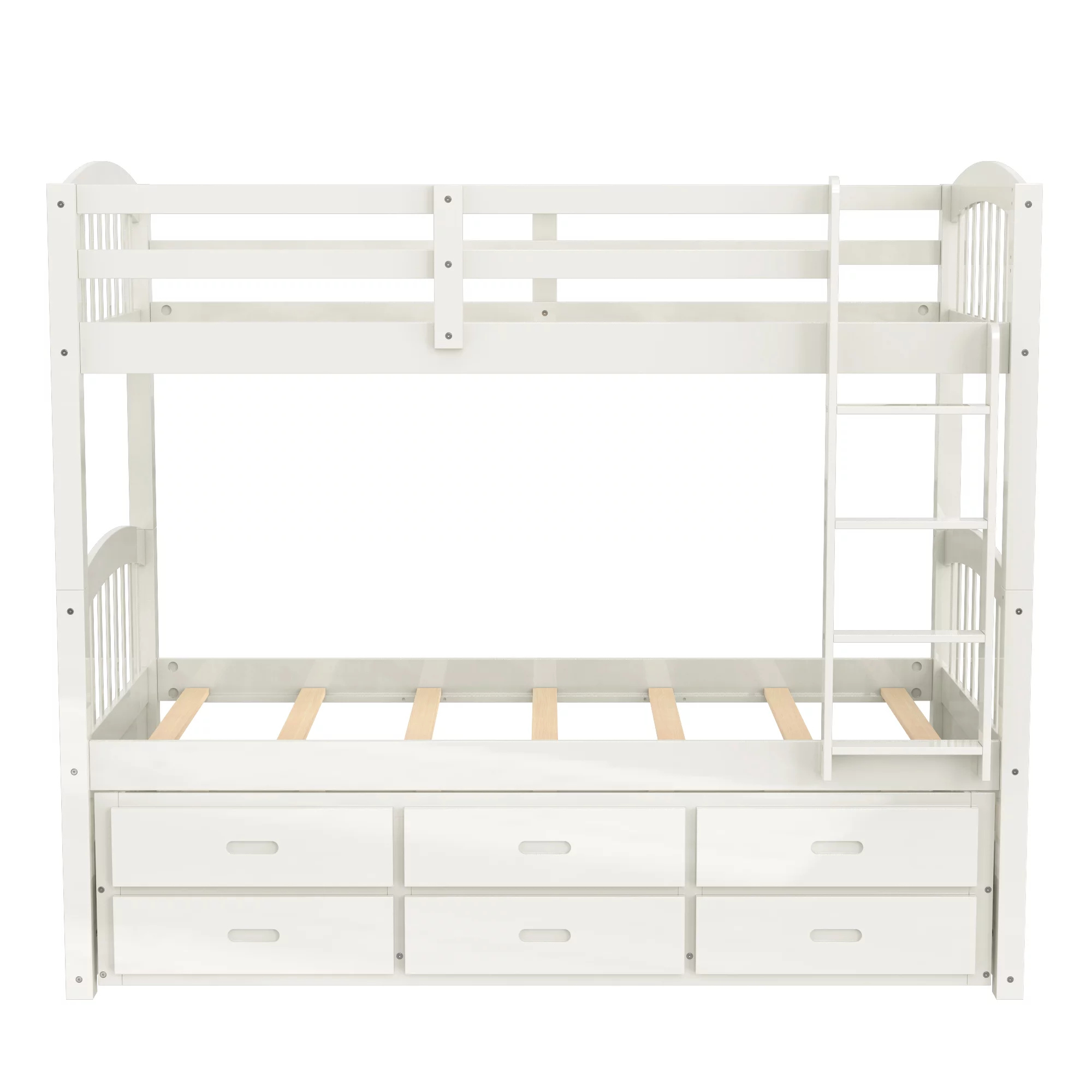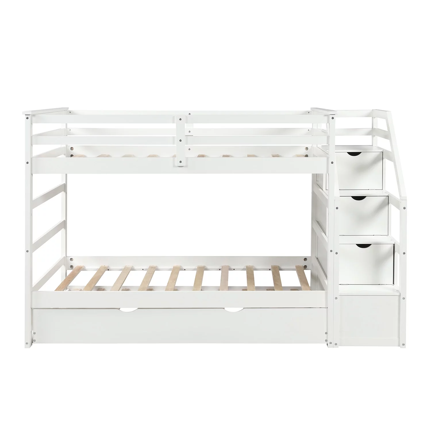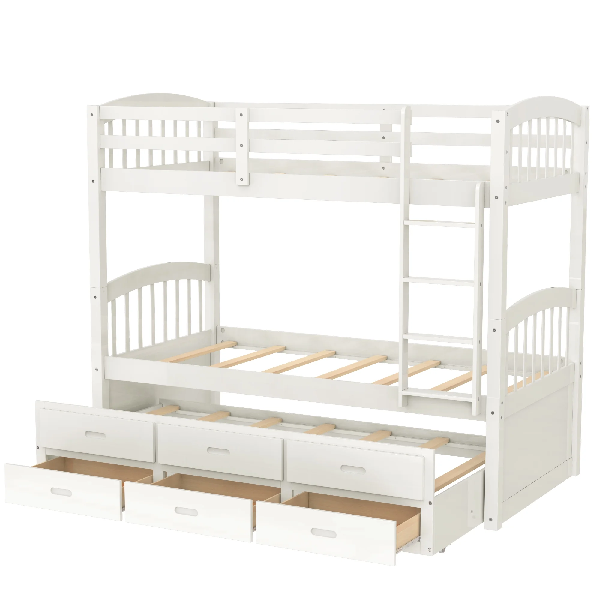 LivEditor Twin over Twin Solid Wood Bunk Bed with Trundle and Storage White