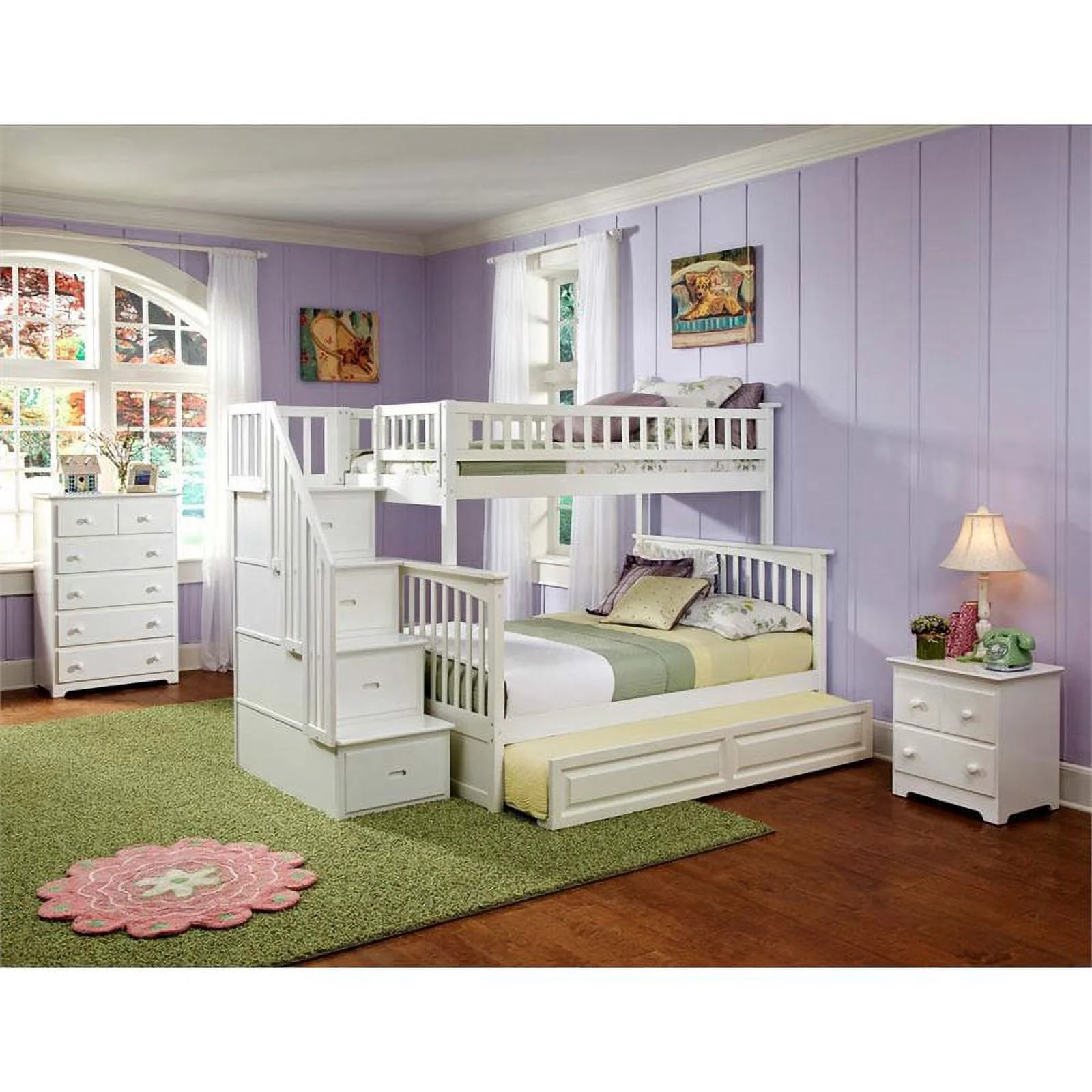 Rosebery Kids Twin over Full Staircase Bunk Bed with Trundle in White
