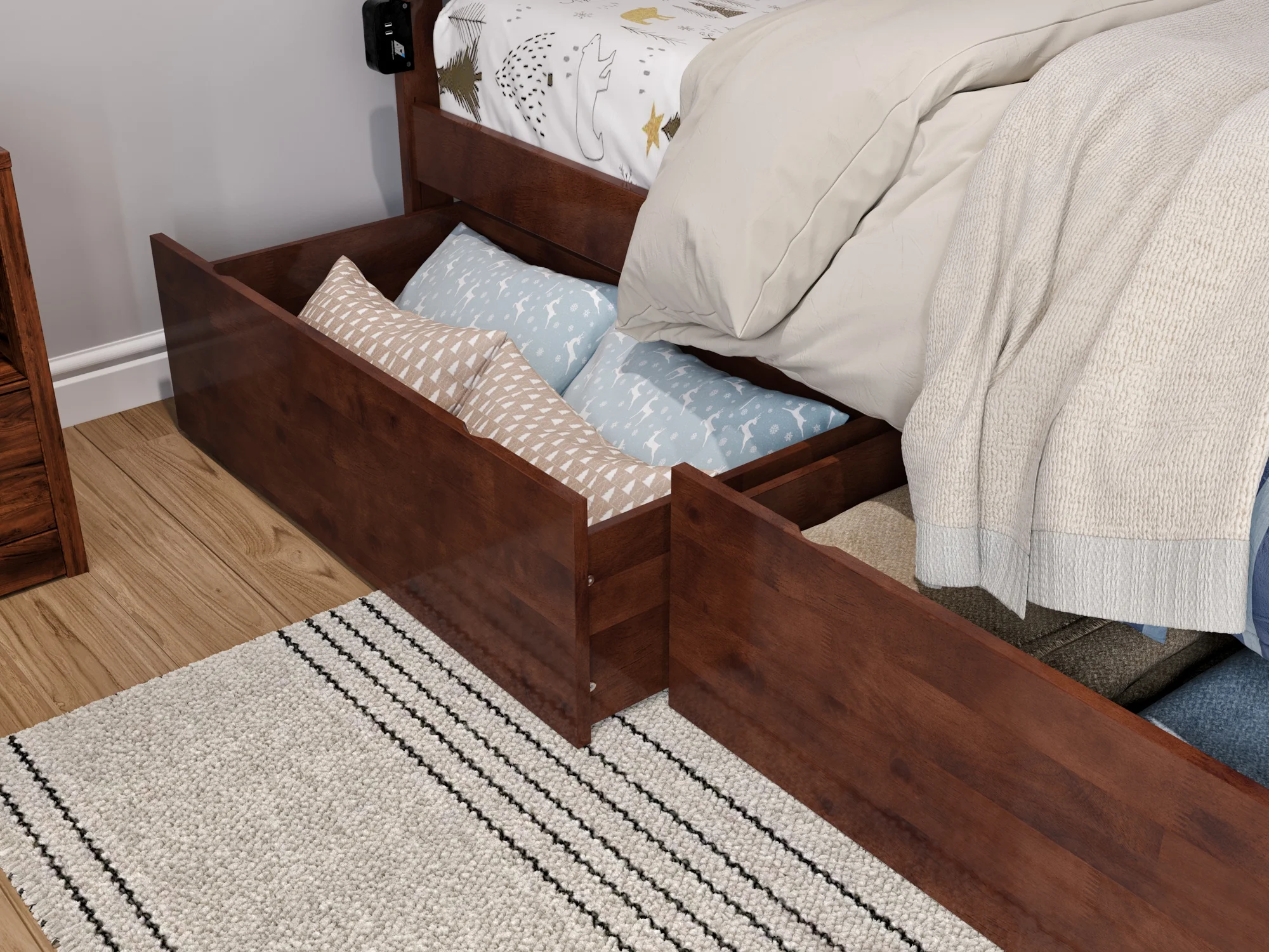 AFI Canyon Walnut Solid Wood Platform Bed with Matching Footboard & Twin XL Trundle, Twin XL