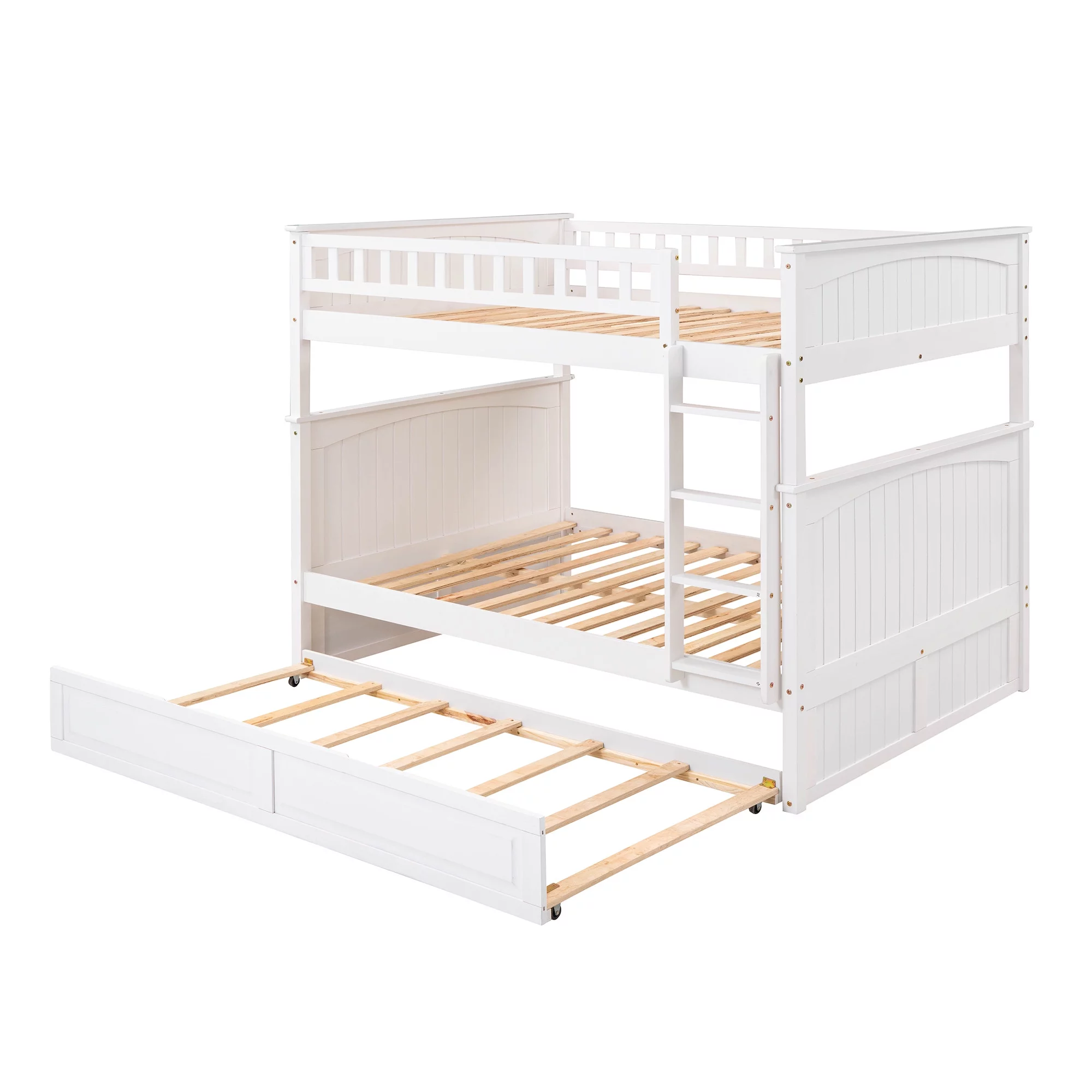 CoSoTower Full Over Full Bunk Bed With Twin Size Trundle, Pine Wood Bunk Bed With Guardrails, White