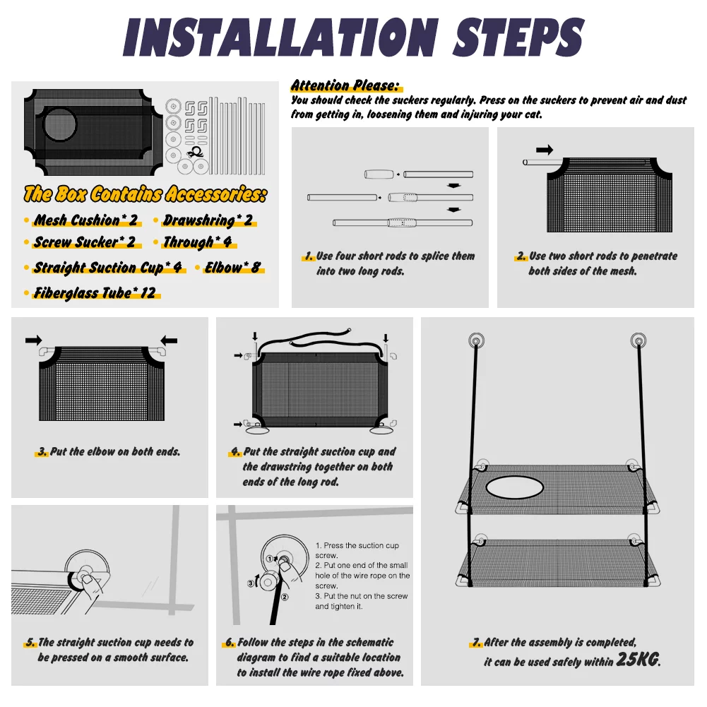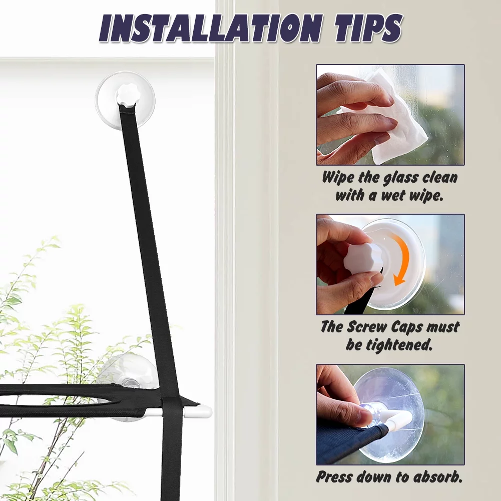 Petbobi Cat Window Perches 2 Layered Hammock Cat Bed up to 55 lb, 20'' x 12'' x 26.4'', Black