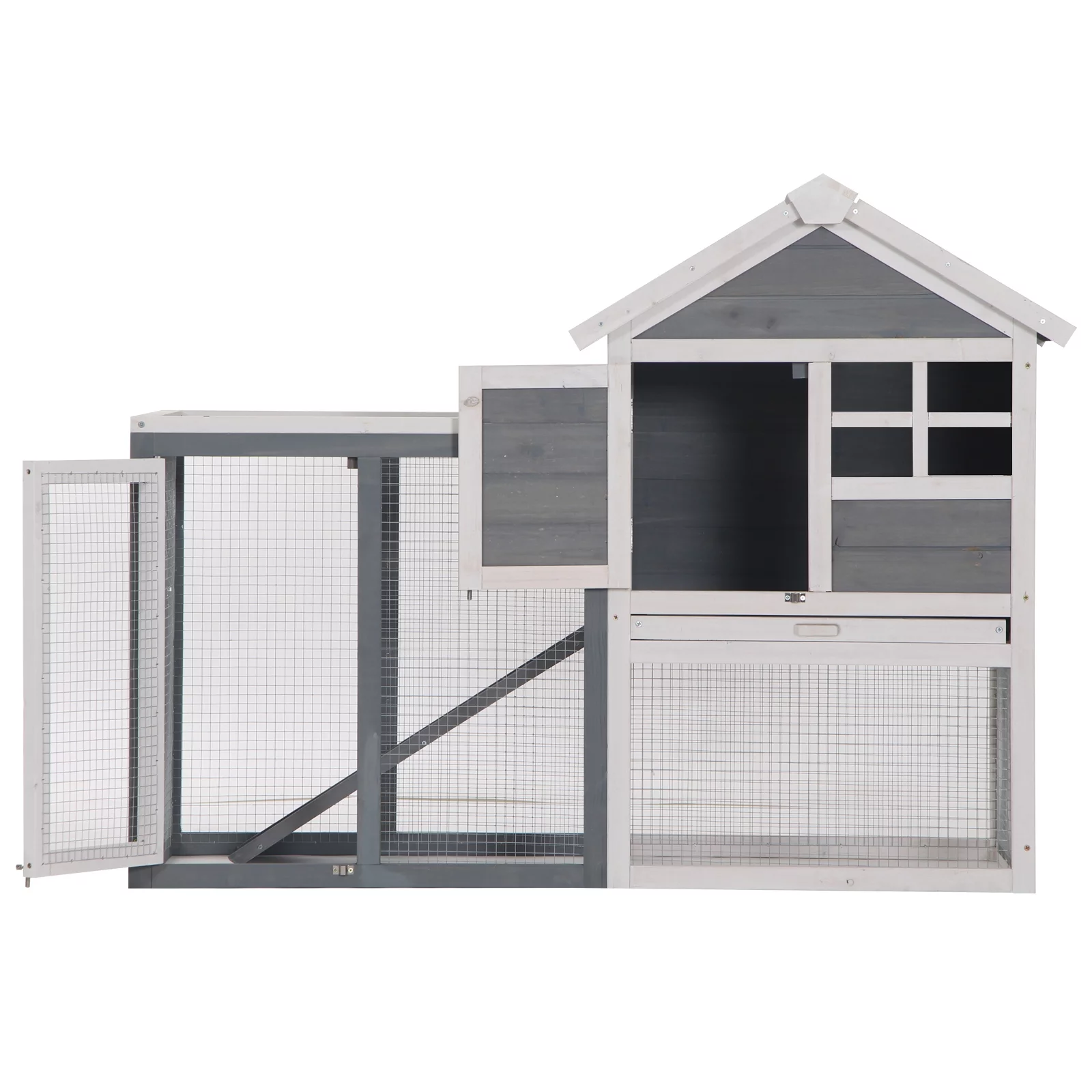 Pawhut Wooden Large Dog House, Perfect for the Porch or Deck and Includes Bottom Slide-Out Tray, 59" L, Gray