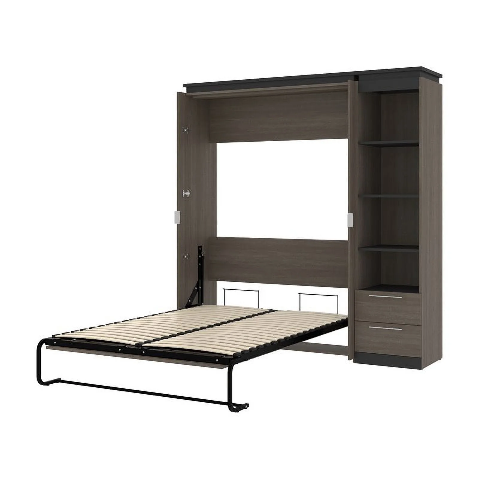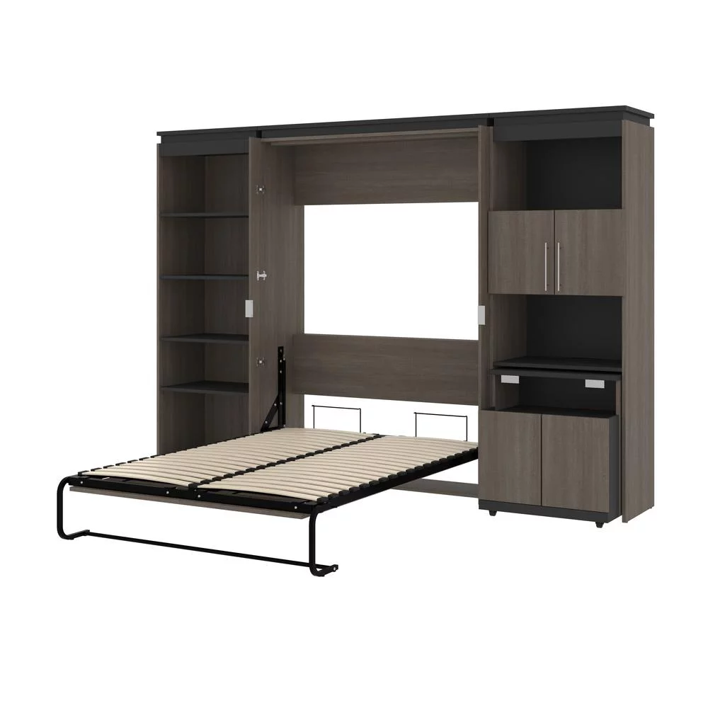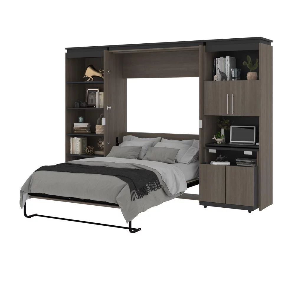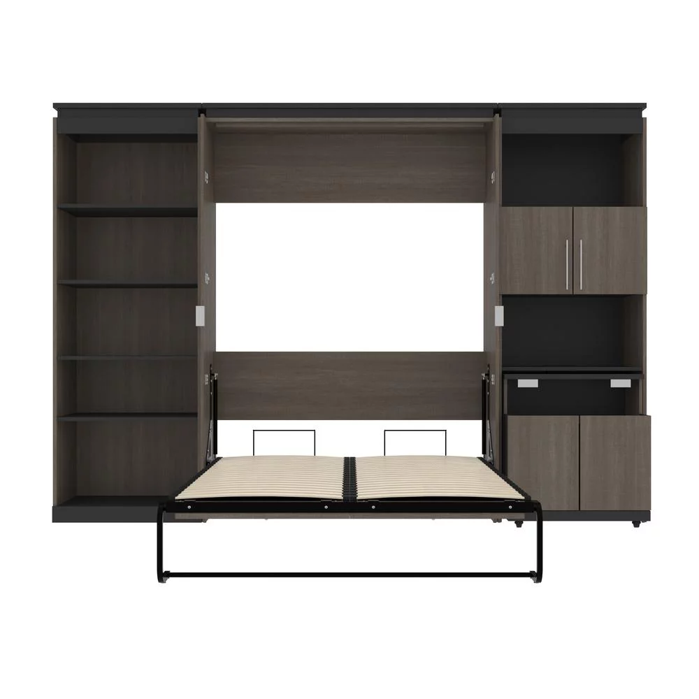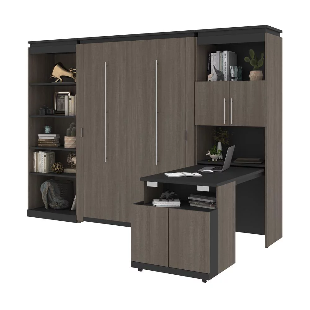 Bestar Orion 118W Full Murphy Bed with Shelving and Fold-Out Desk (119W) in bark gray & graphite