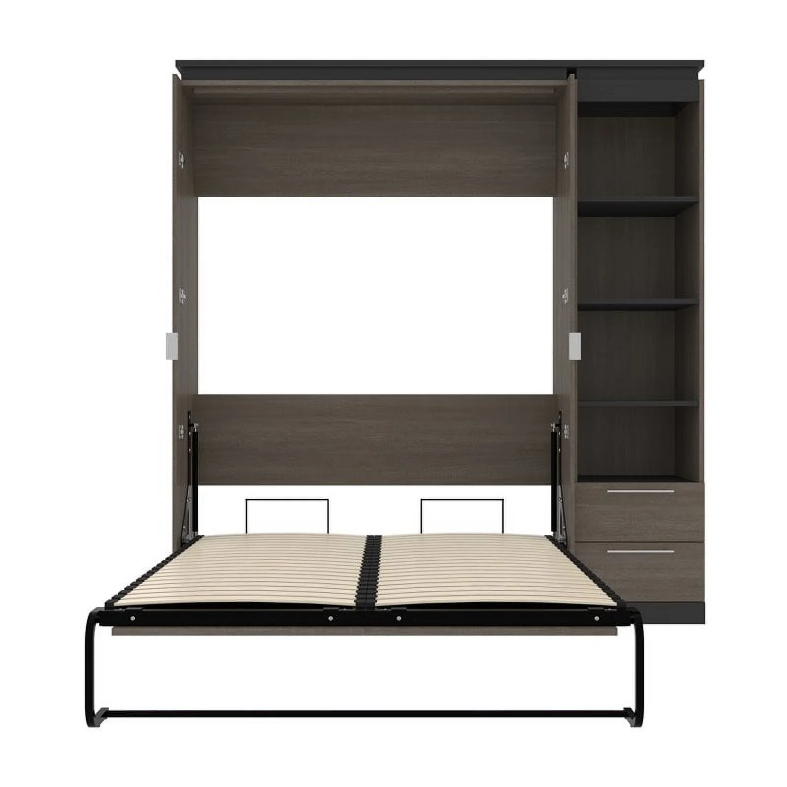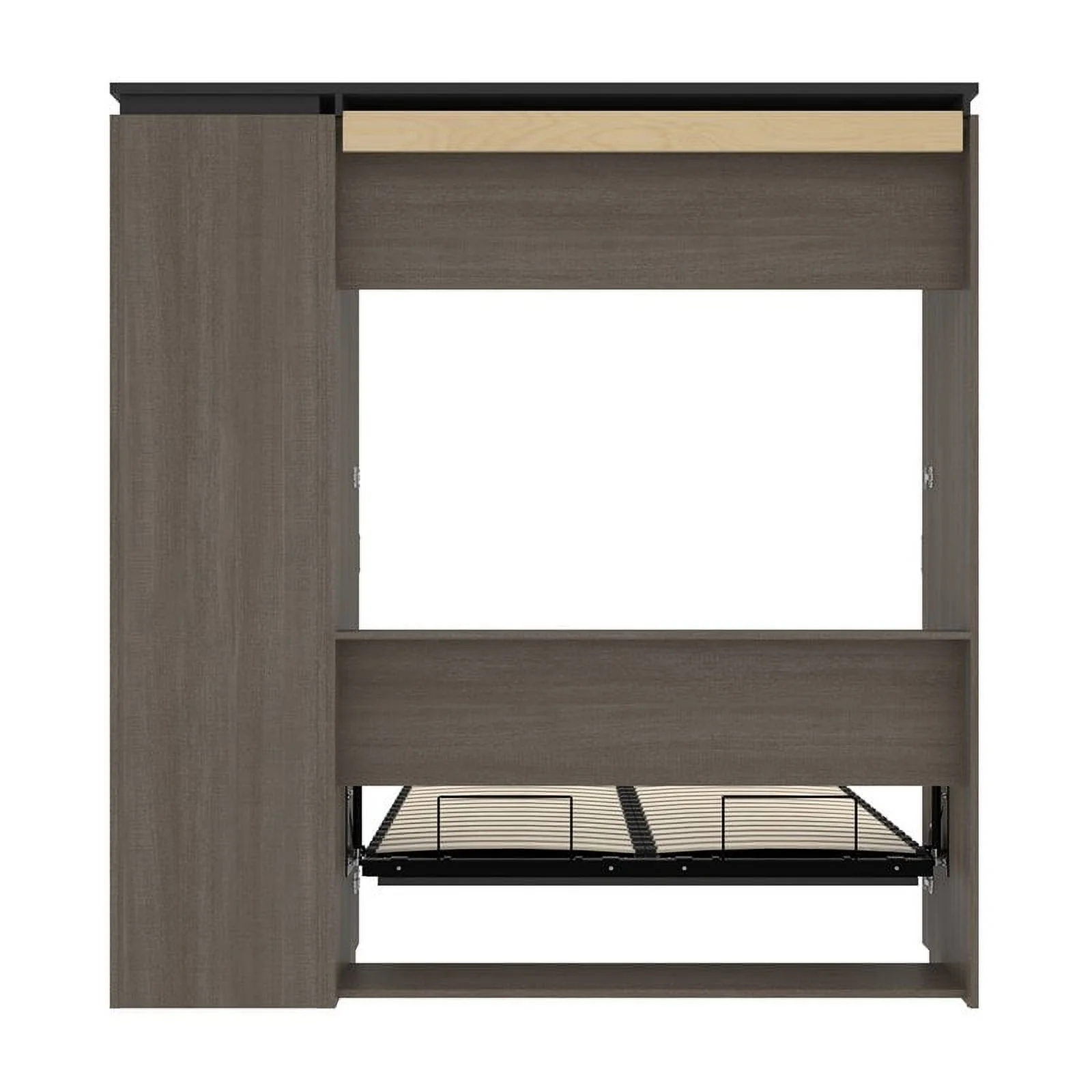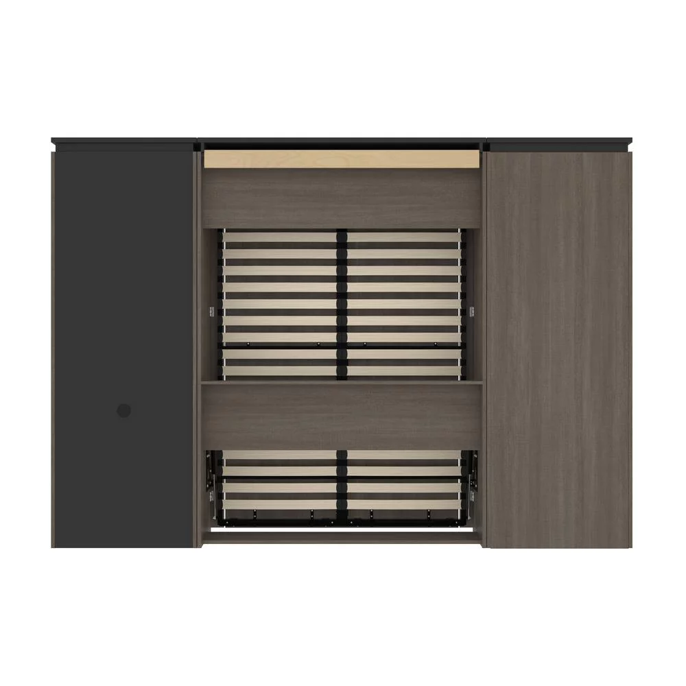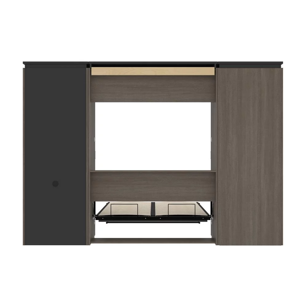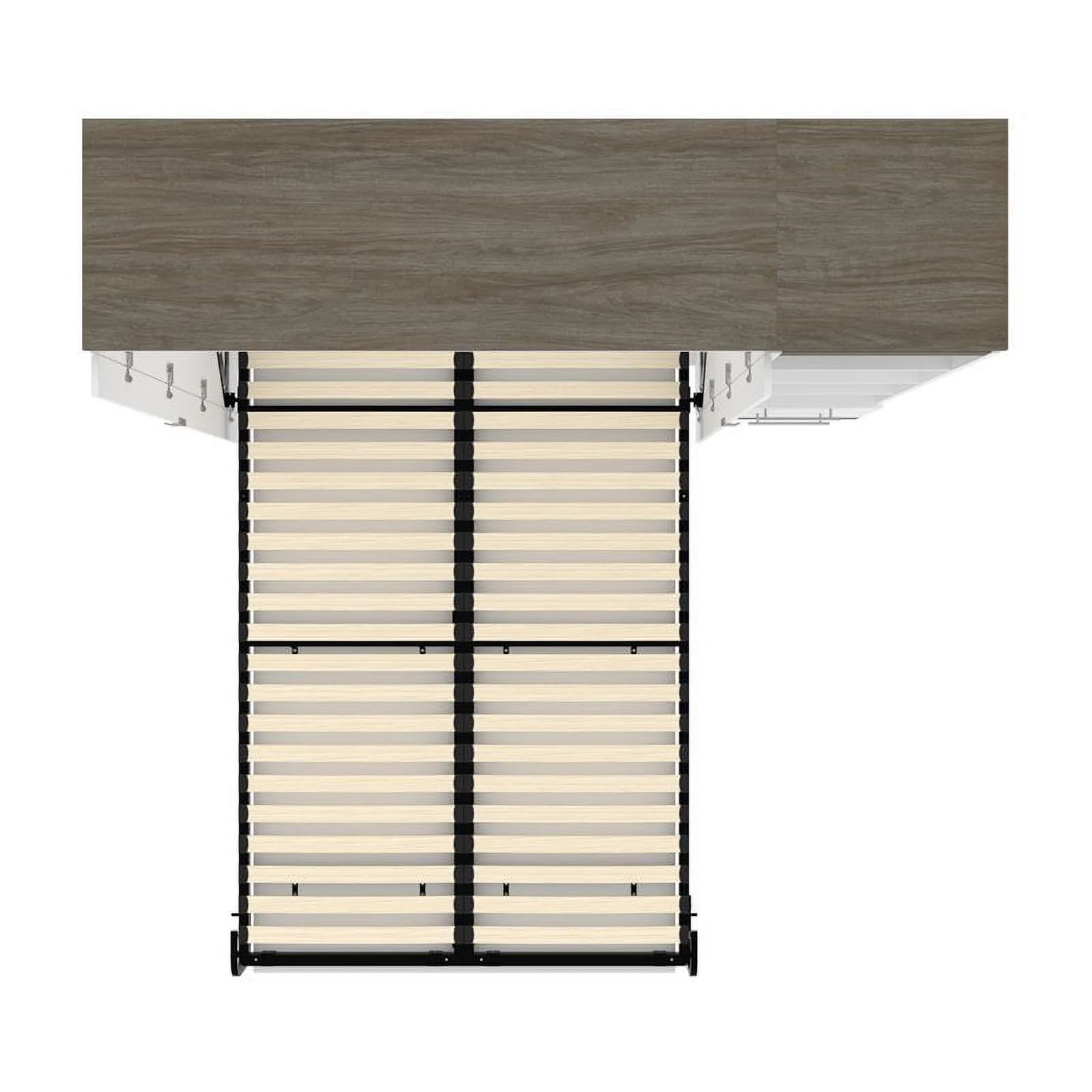 Bestar Orion 118W Full Murphy Bed with Shelving and Fold-Out Desk (119W) in bark gray & graphite