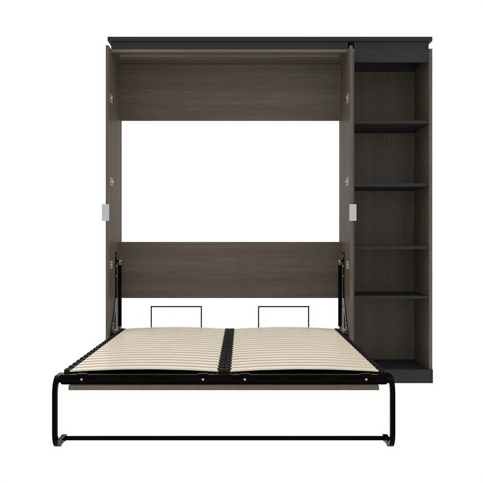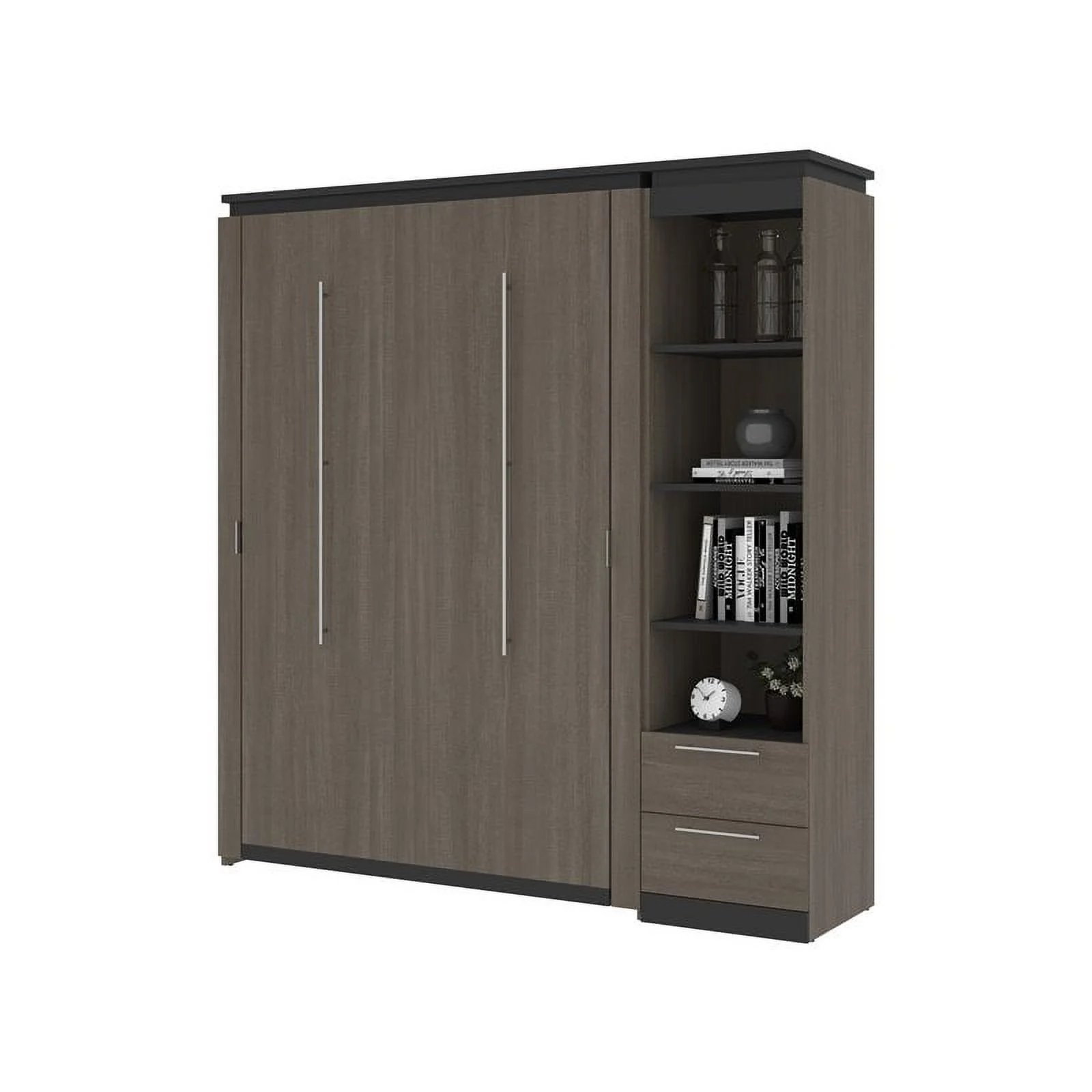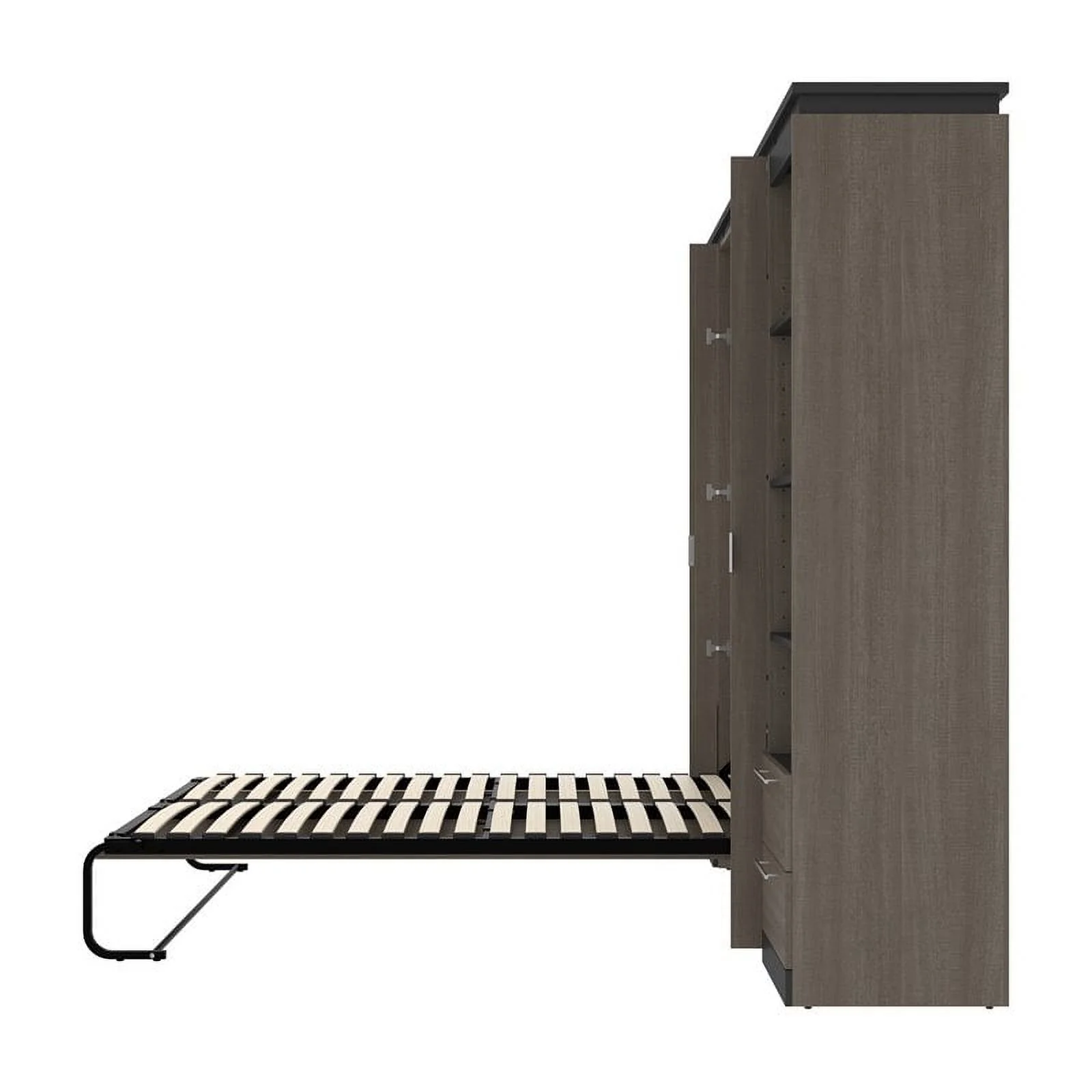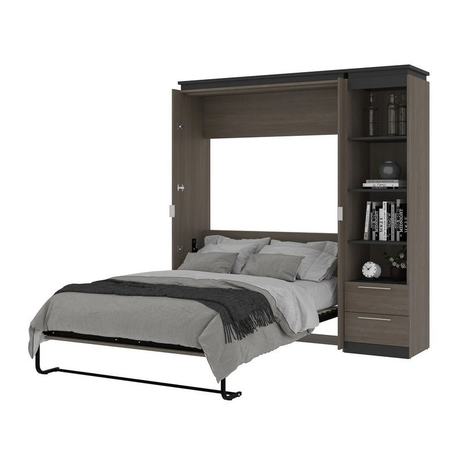 Bestar Orion 118W Full Murphy Bed with Shelving and Fold-Out Desk (119W) in bark gray & graphite