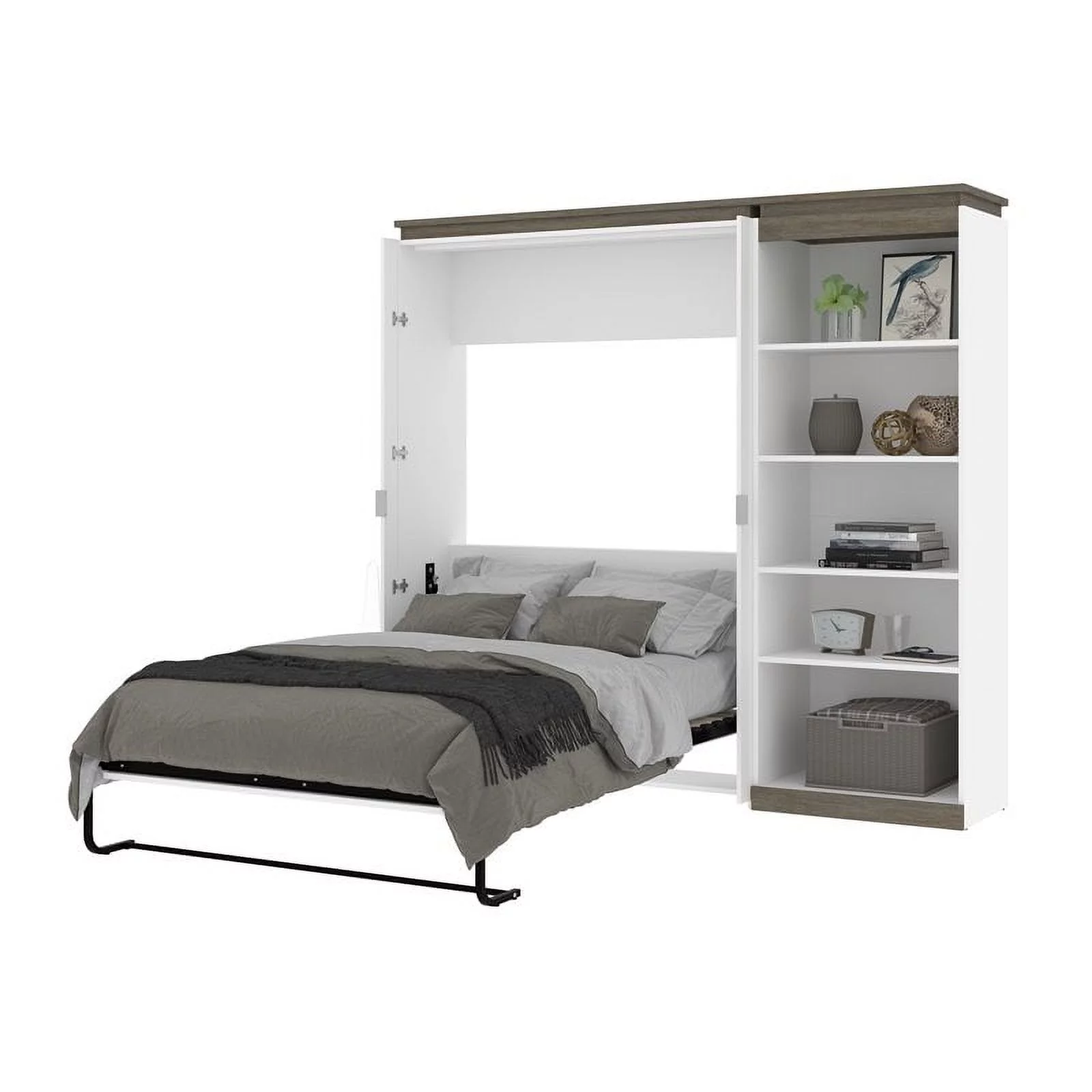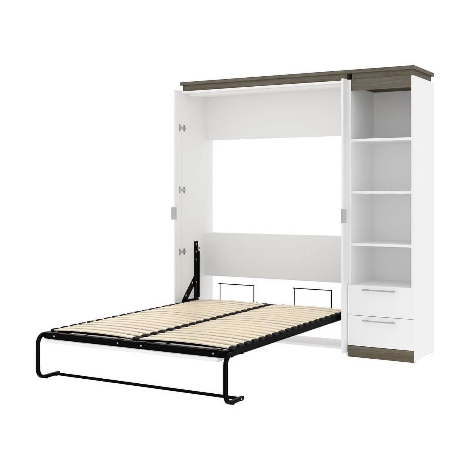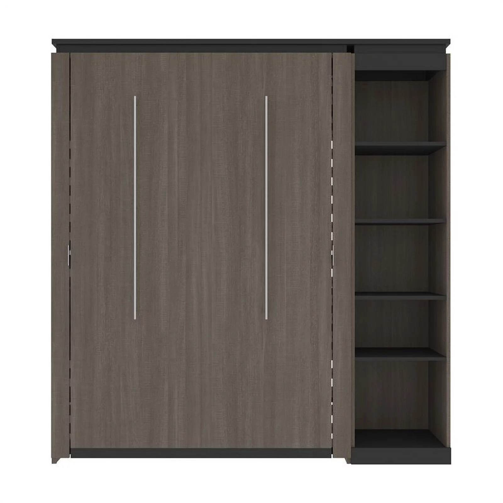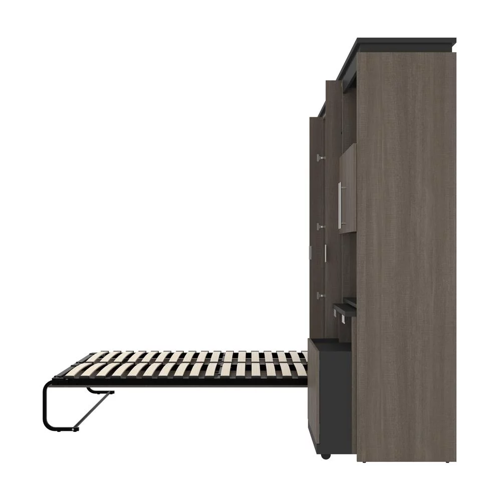 Bestar Orion 118W Full Murphy Bed with Shelving and Fold-Out Desk (119W) in bark gray & graphite