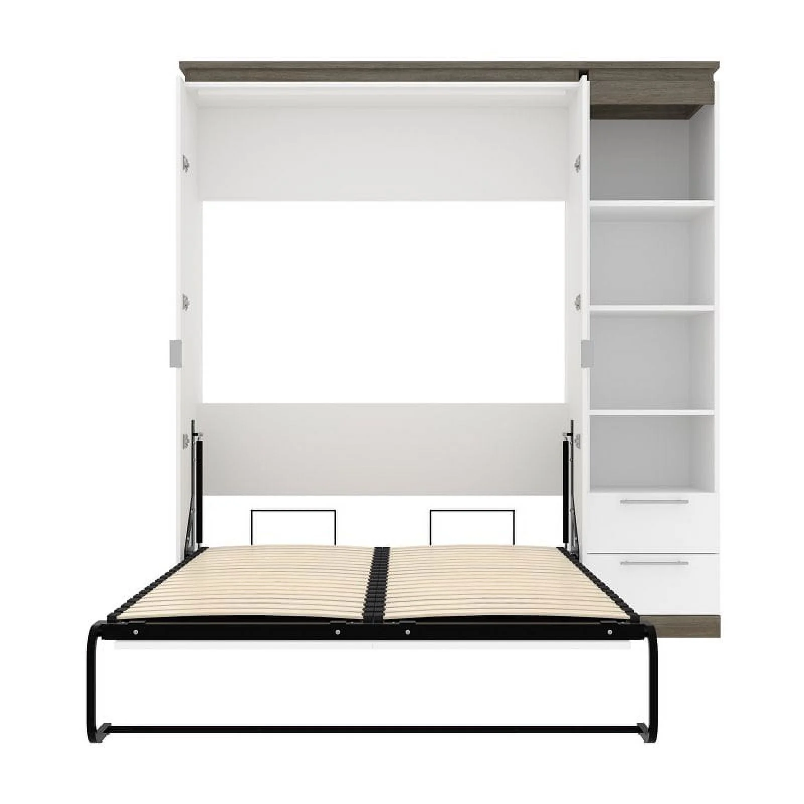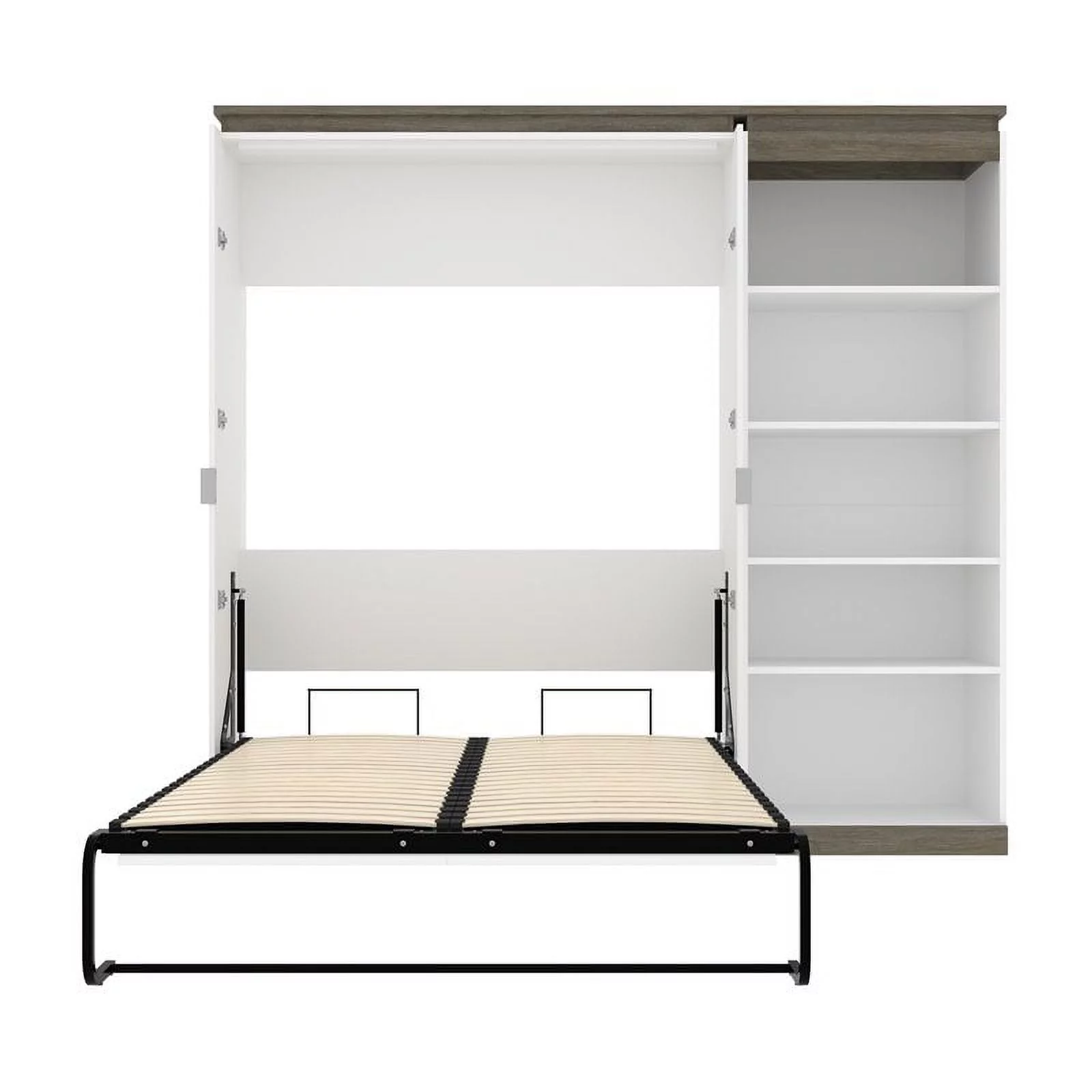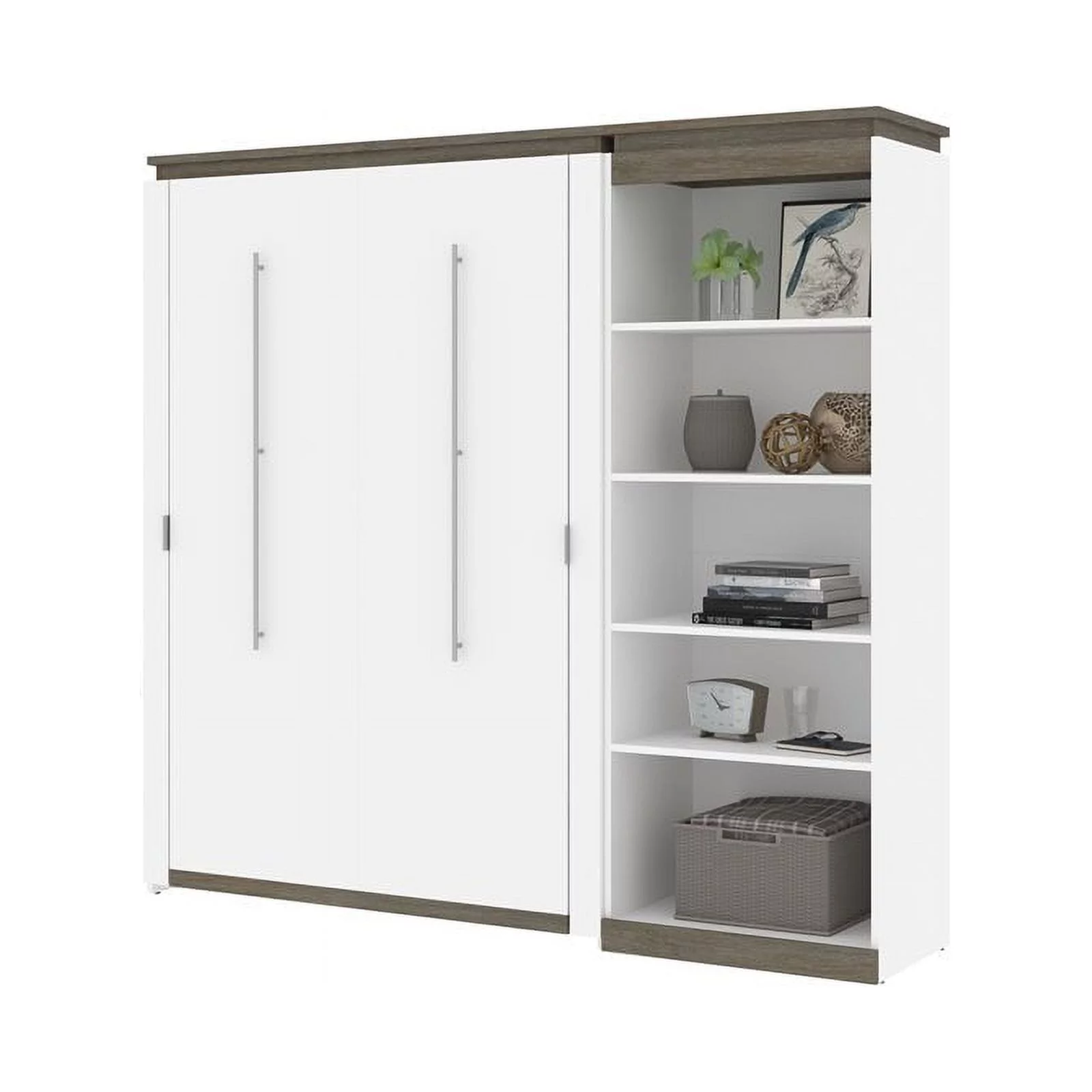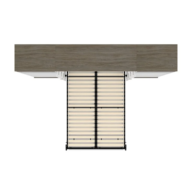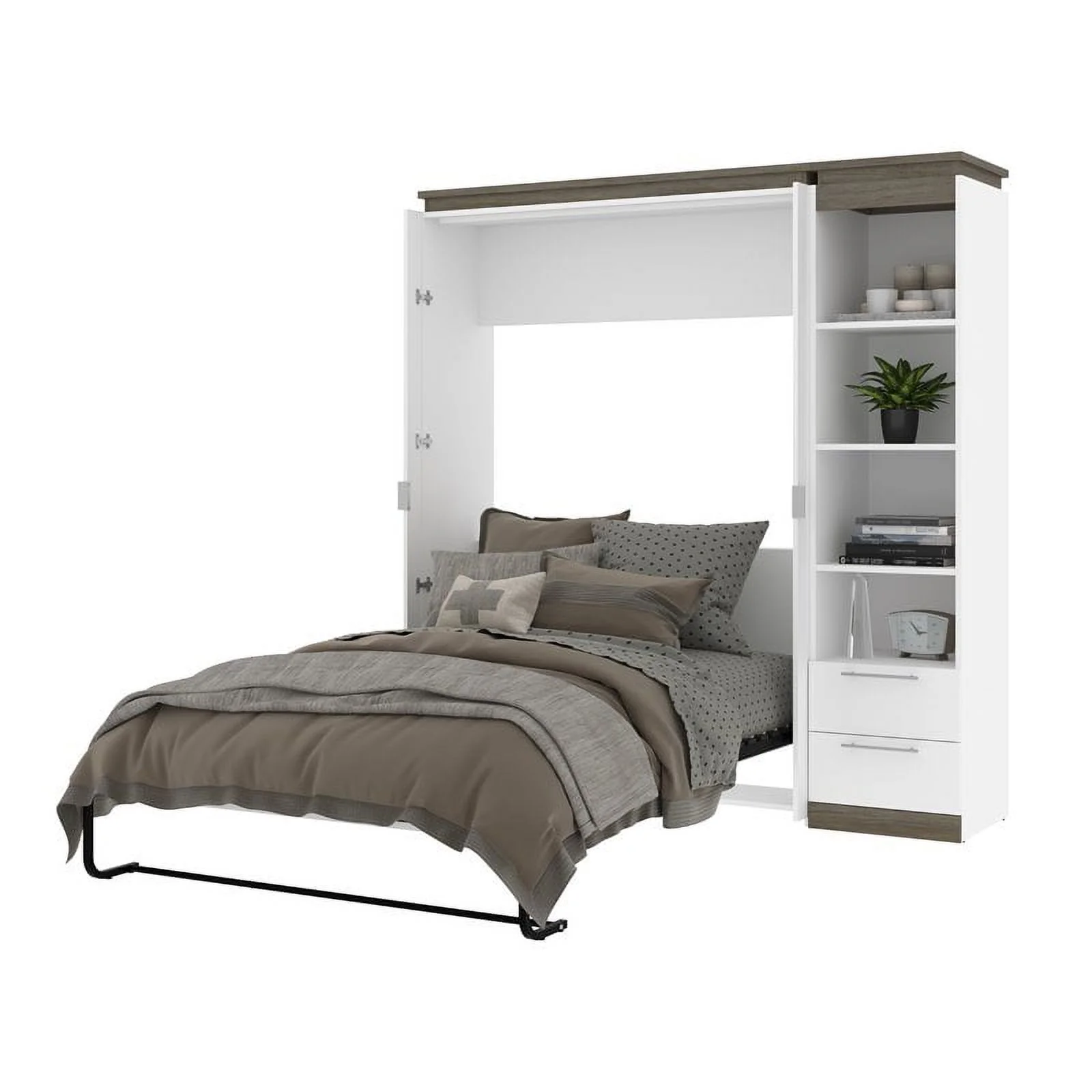 Bestar Orion 118W Full Murphy Bed with Shelving and Fold-Out Desk (119W) in bark gray & graphite
