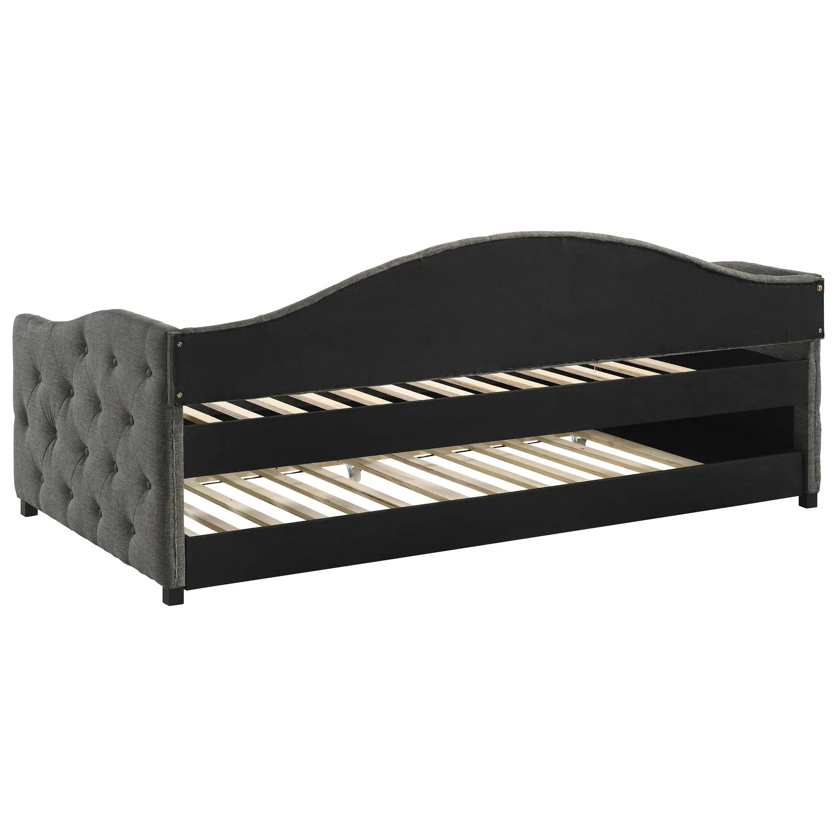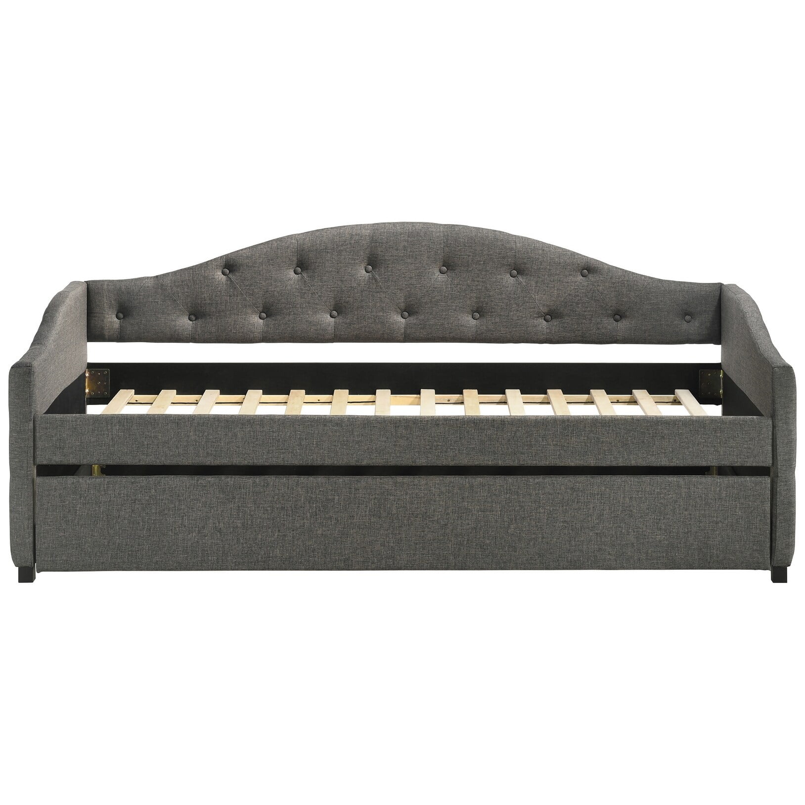 Madeira Upholstered Tufted Camel Back Twin Daybed with Trundle Taupe