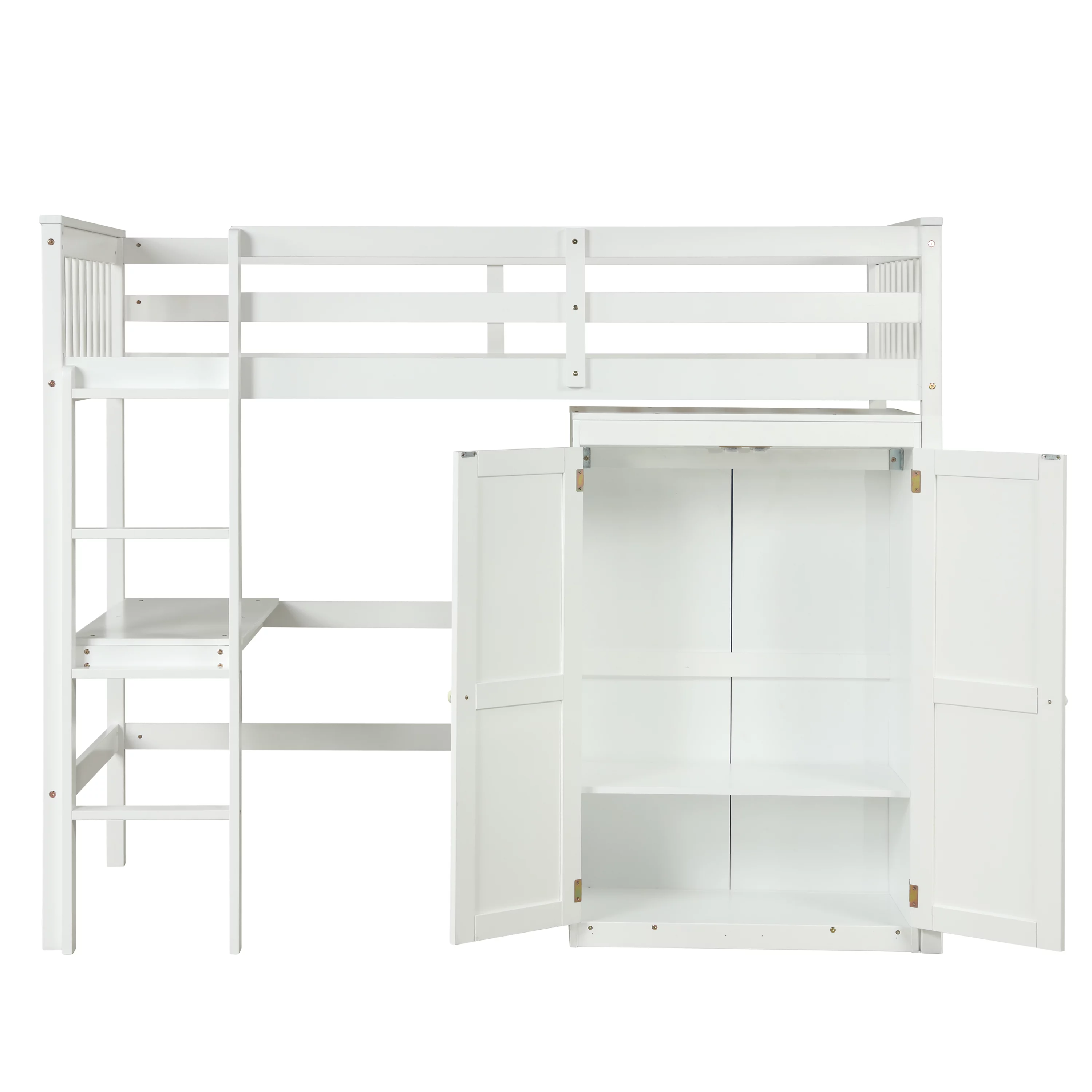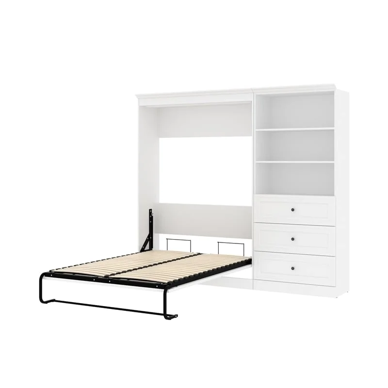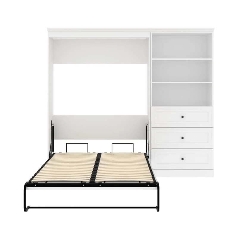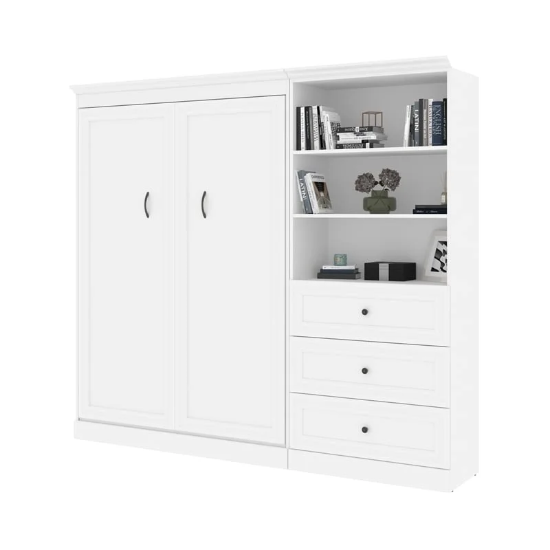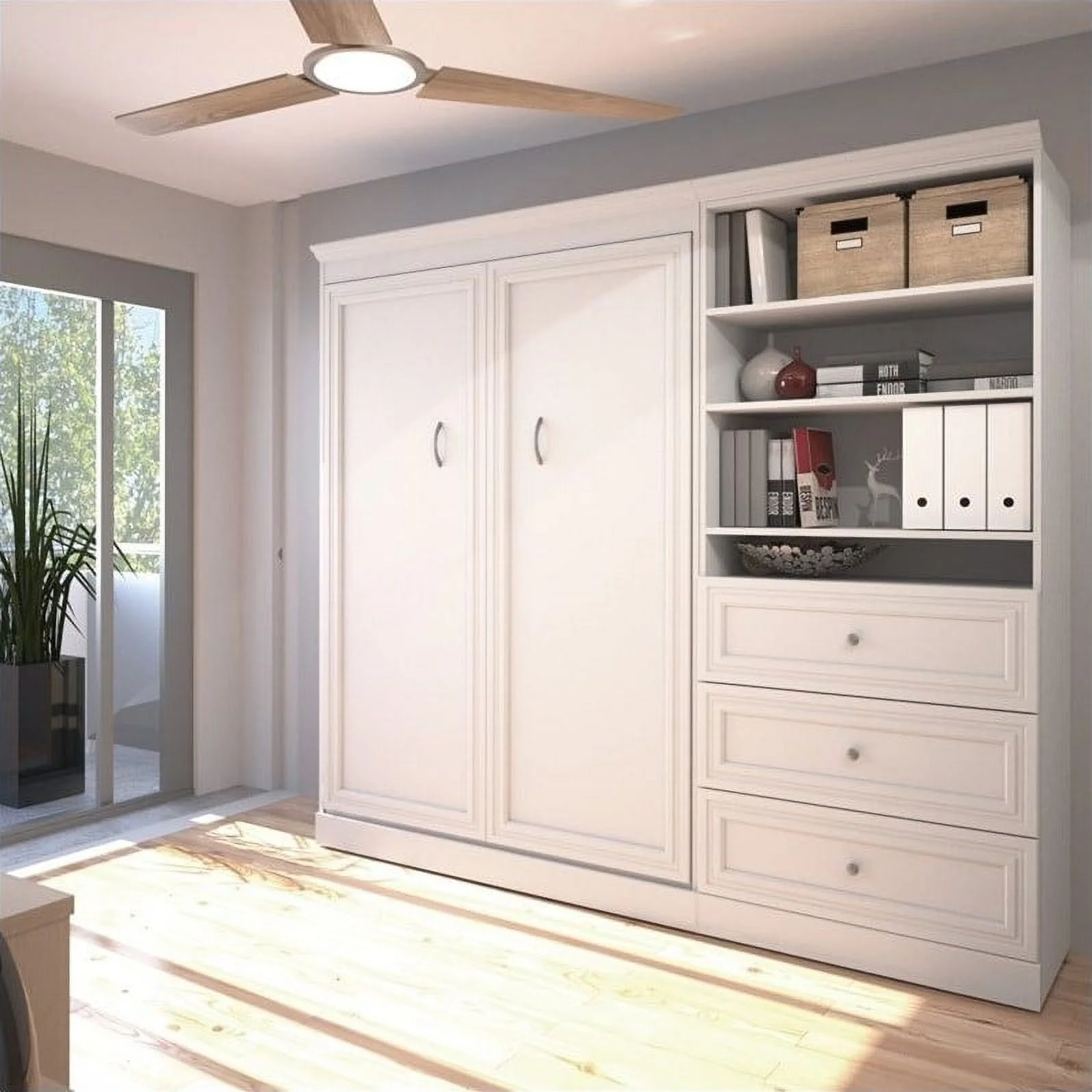 Atlin Designs 84" Wood Full Murphy Bed and Organizer with Drawers in White