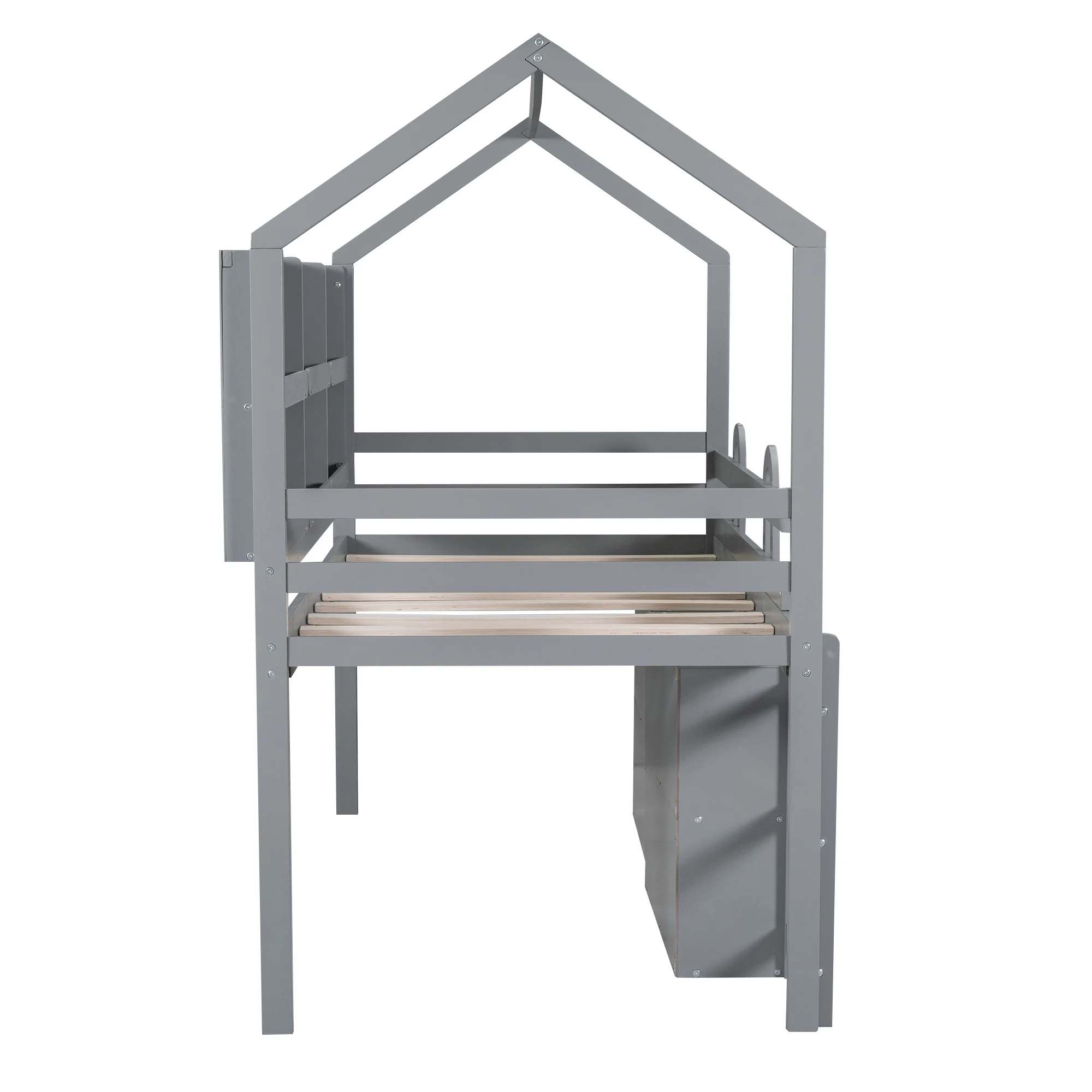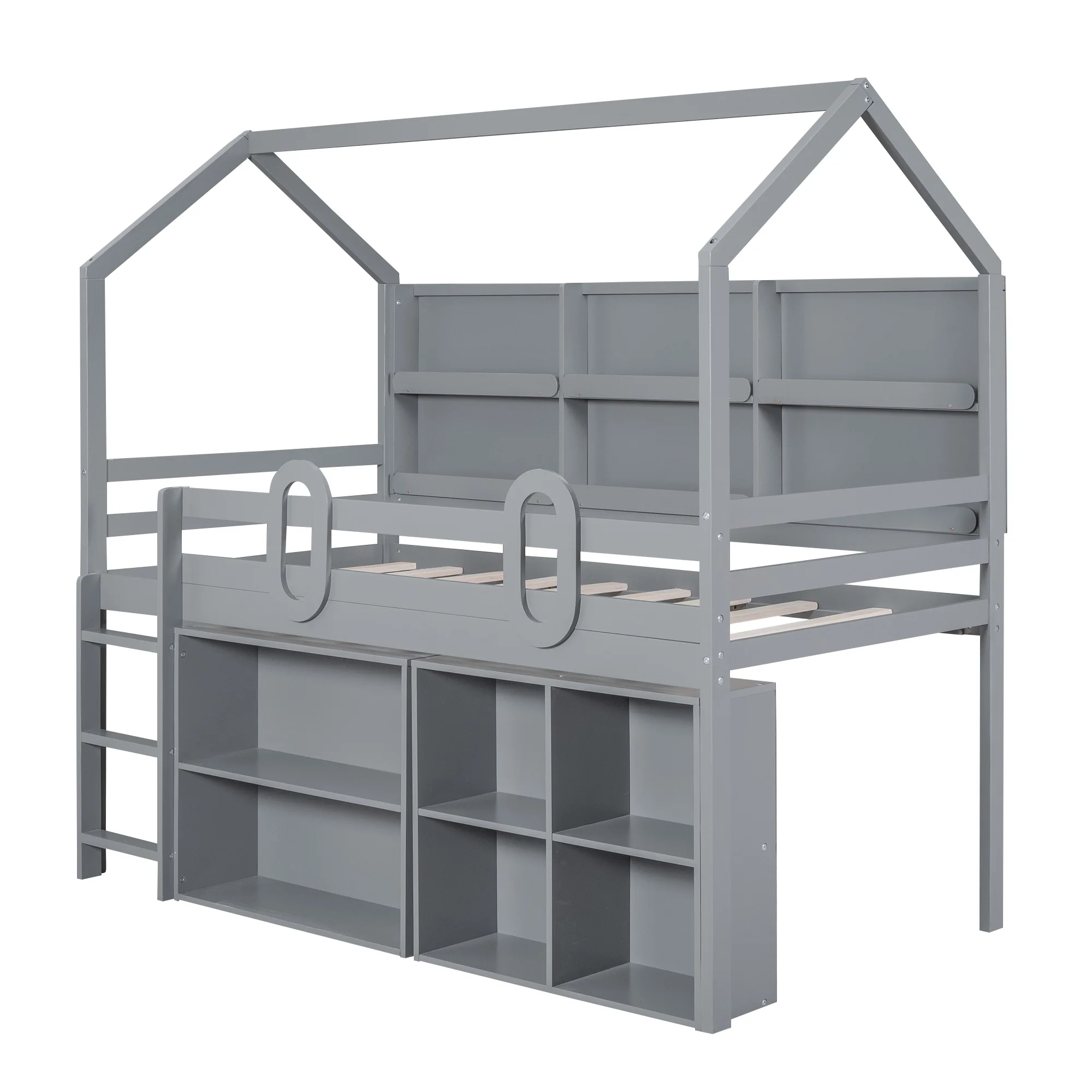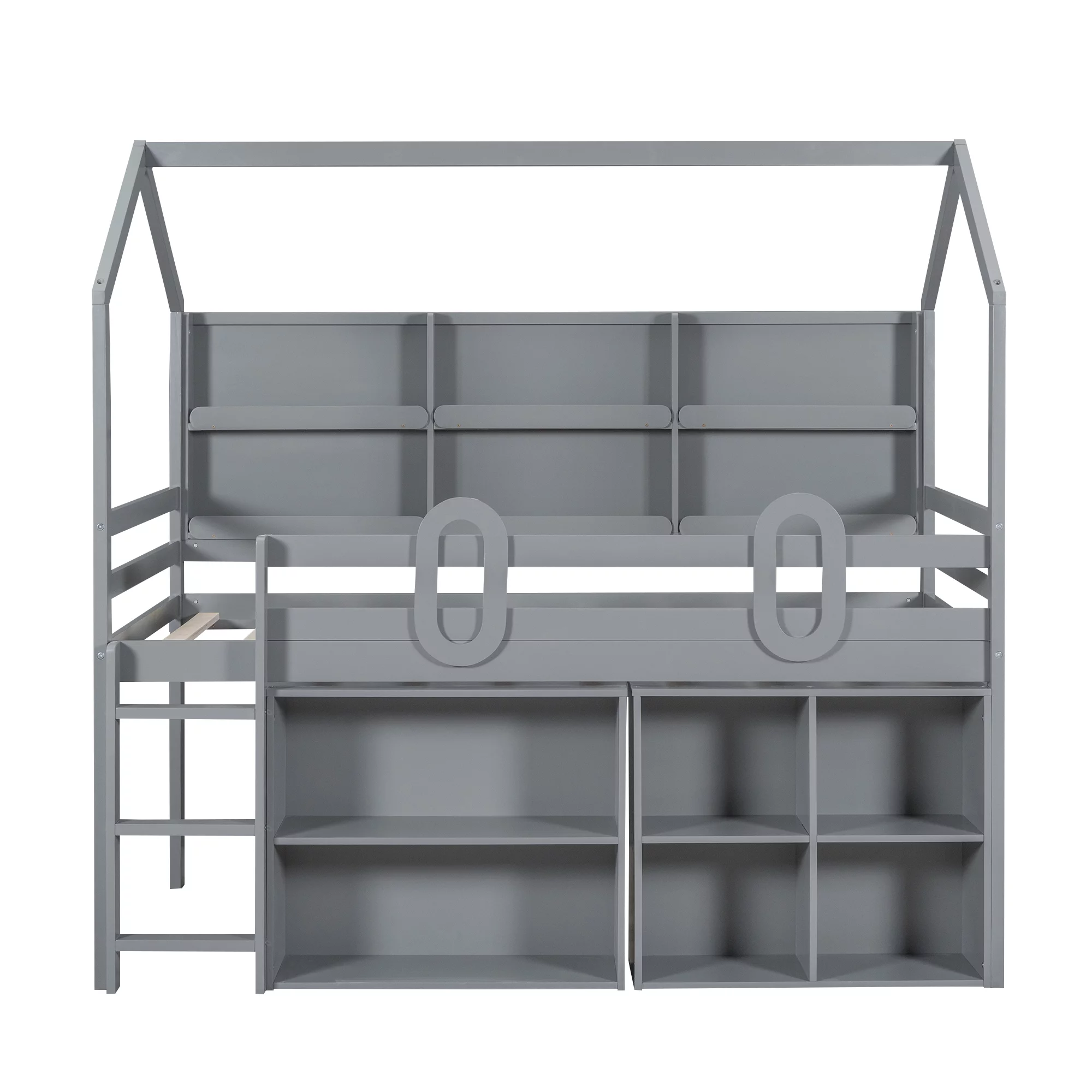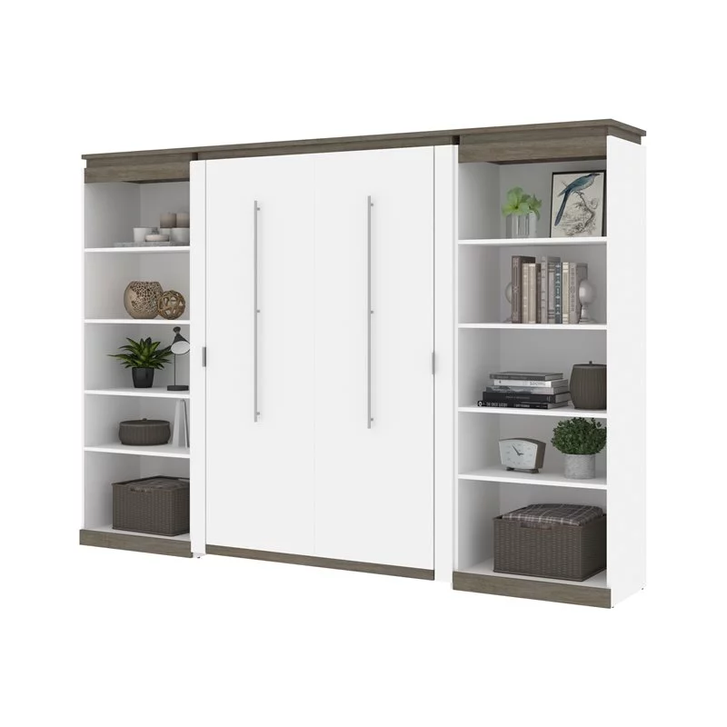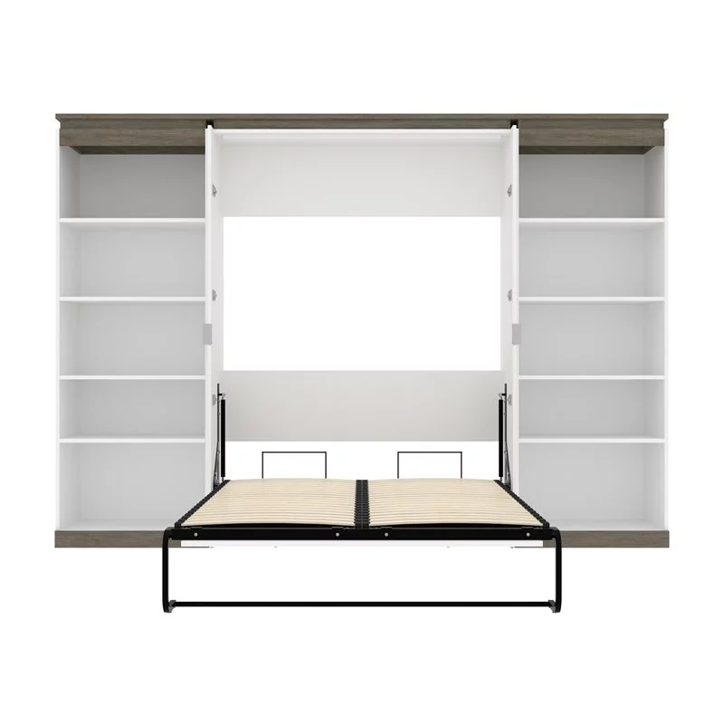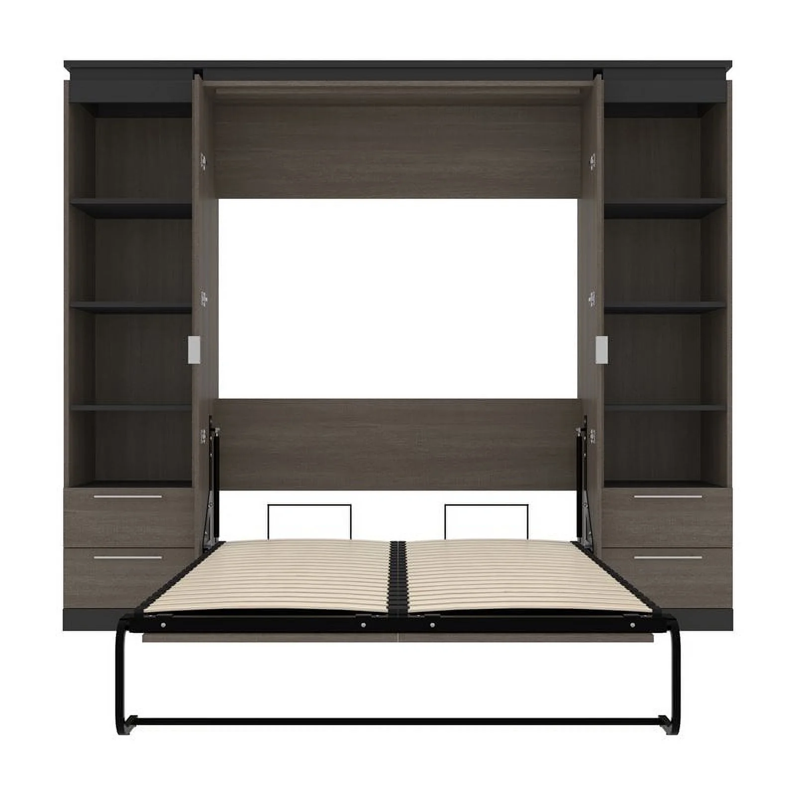 Atlin Designs 98" Full Murphy Bed and 2 Bookcases with Drawers in Bark Gray