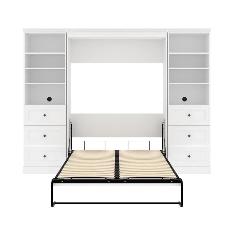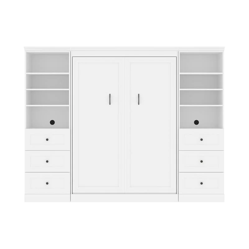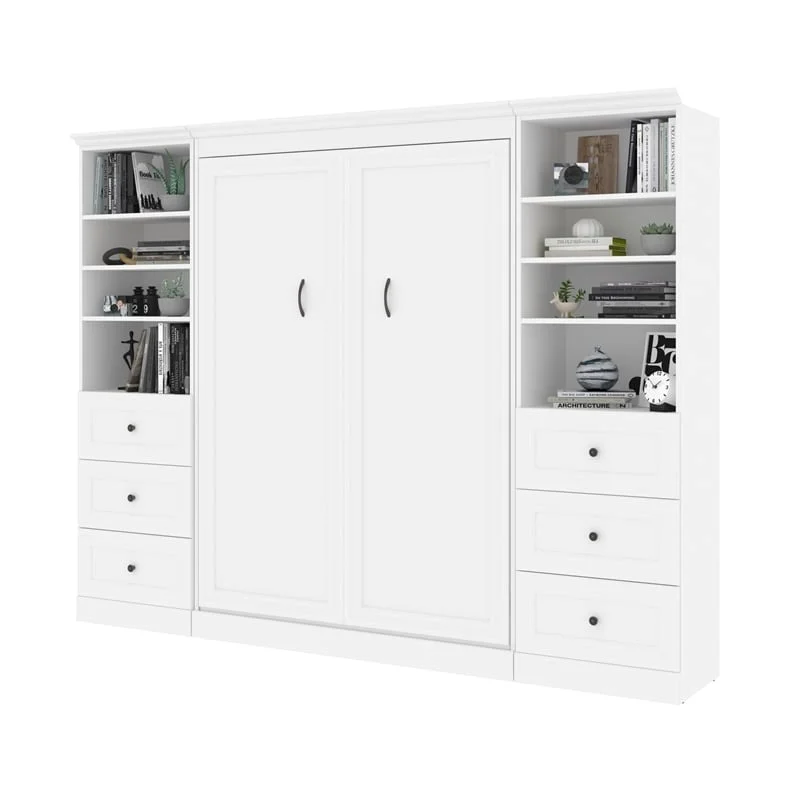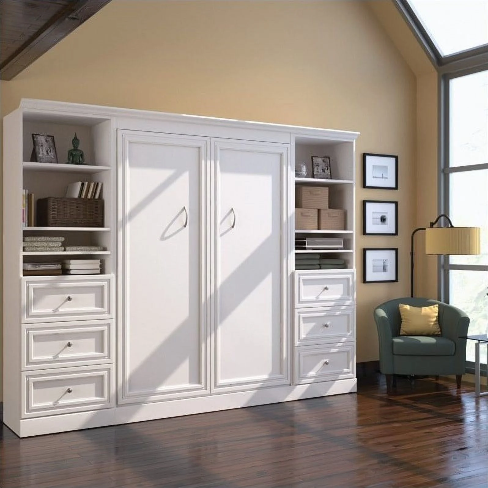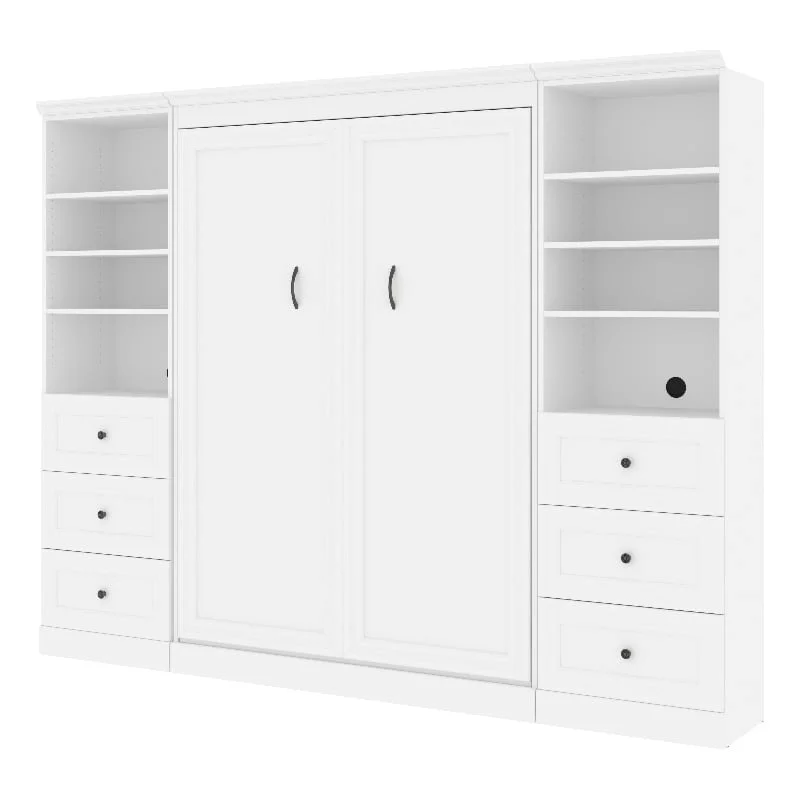 Atlin Designs Wood Full Murphy Bed and 2 Organizers with Drawers in White