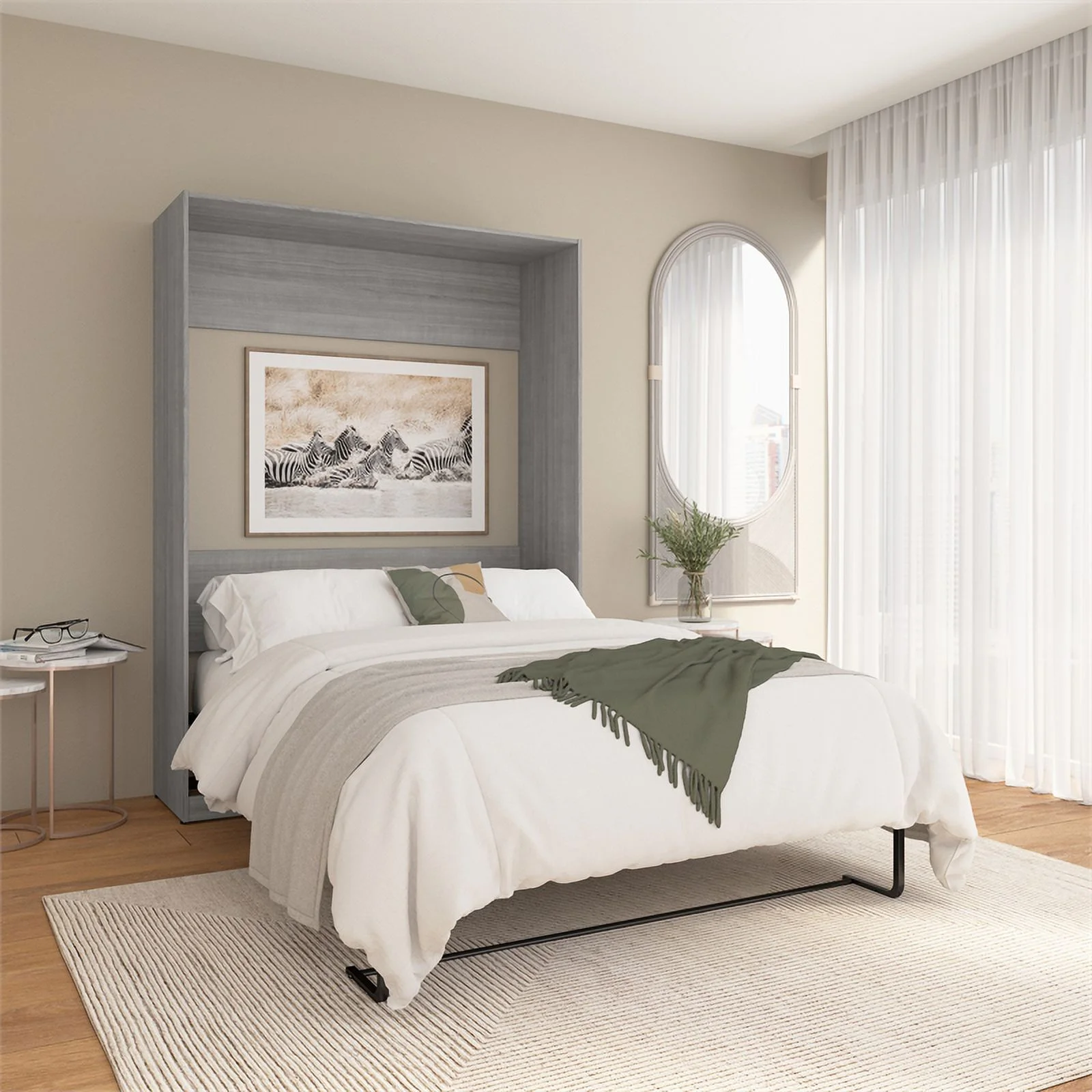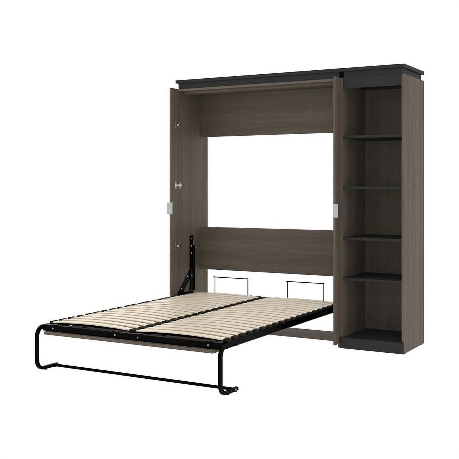 Atlin Designs 79" Full Murphy Bed with Narrow Bookcase in Bark Gray