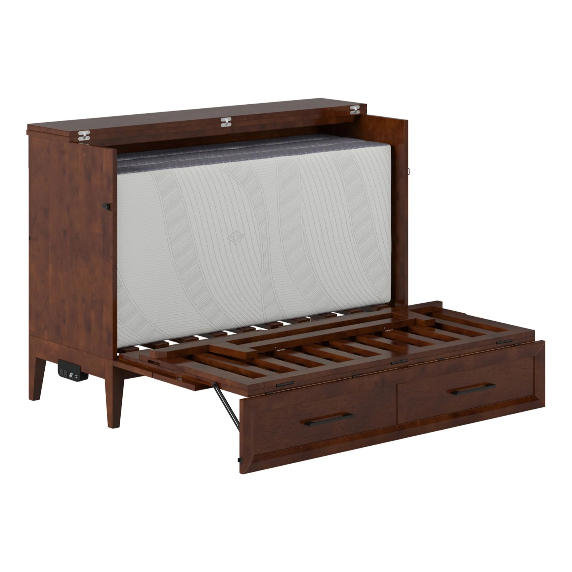 Santa Fe Full Murphy Bed Chest with Mattress & Built-in Charger in White
