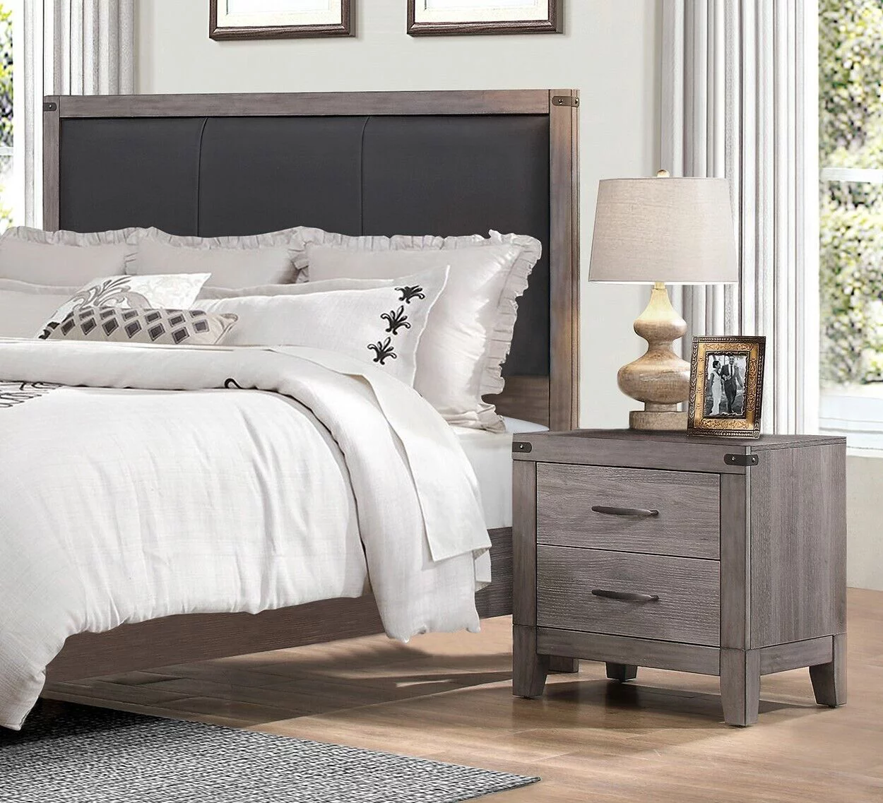 Modern Rustic Style Gray Finish Full Size Bed and 2x Nightstands Bedroom Furniture 3pc Set