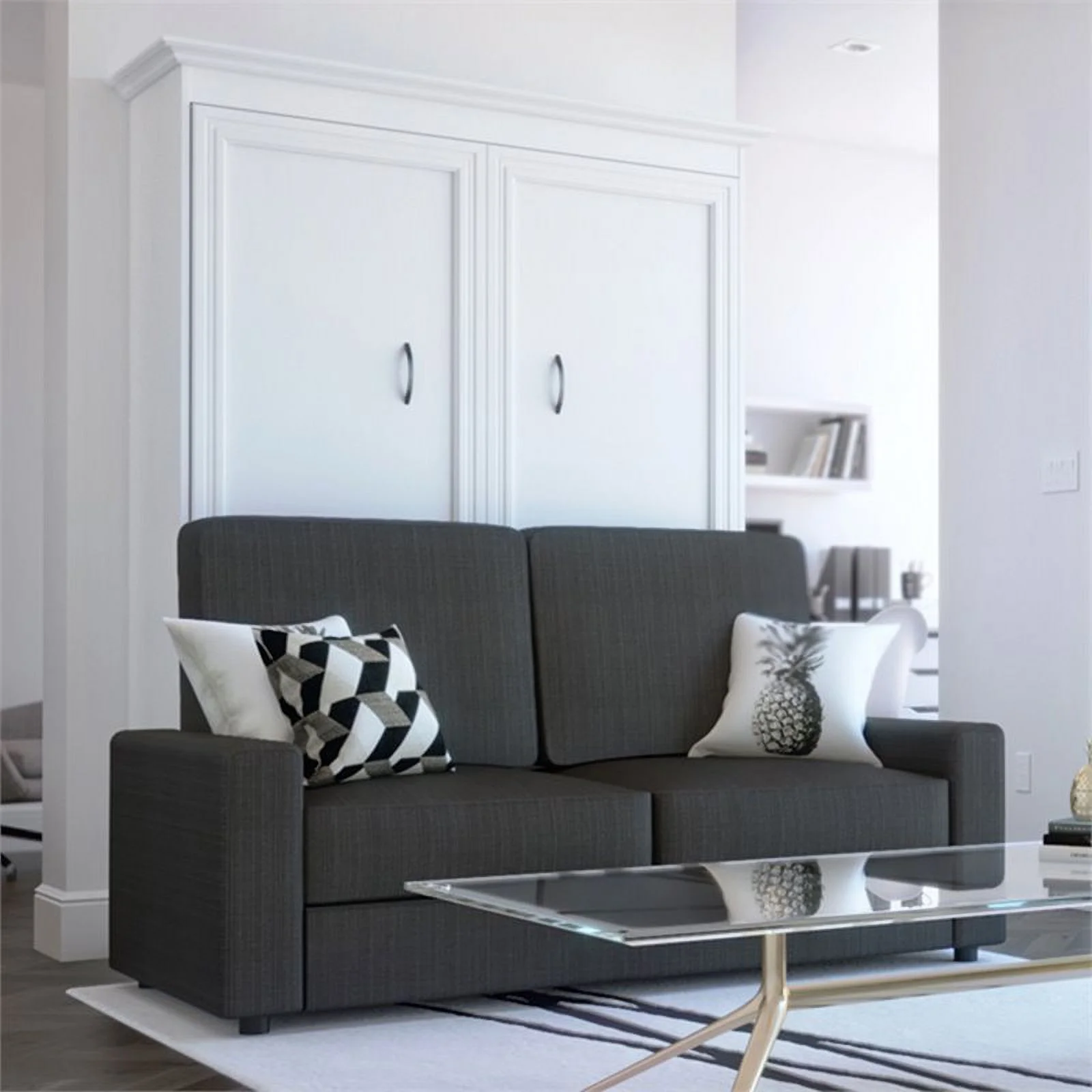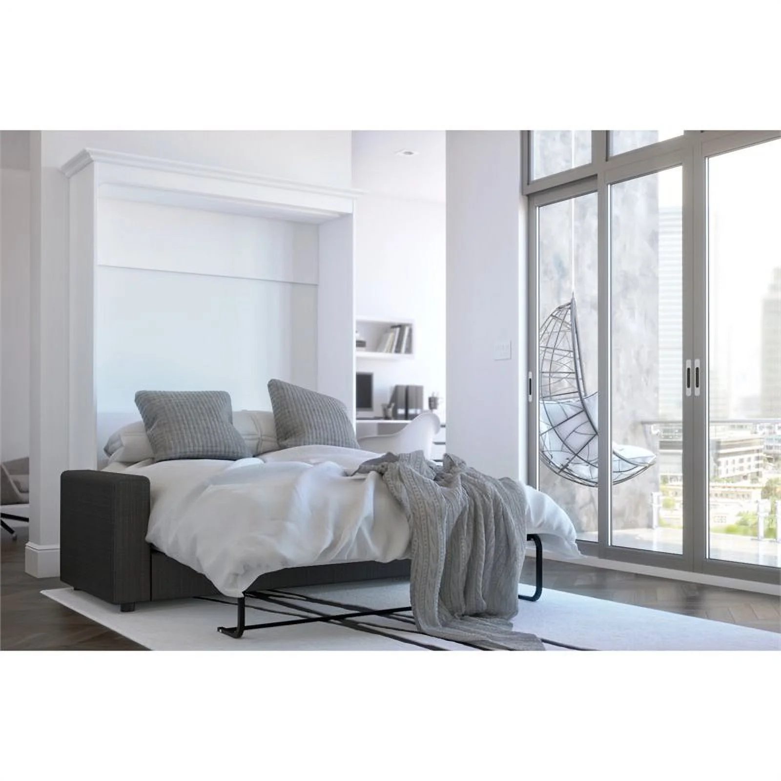 Atlin Designs 73"W Contemporary Wood Full Murphy Bed with Sofa in White/Gray