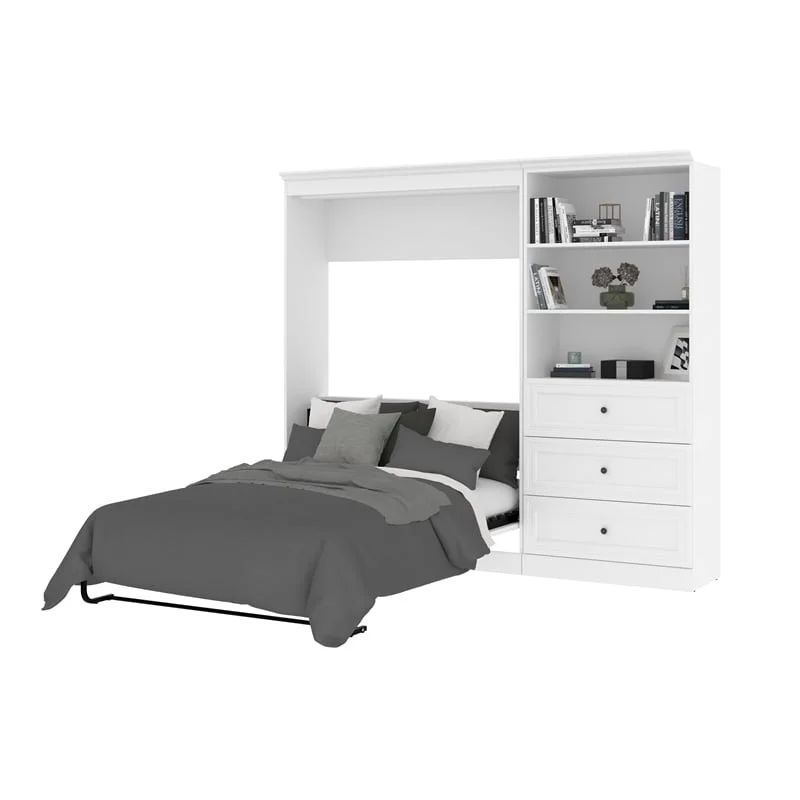 Atlin Designs 79" Full Murphy Bed and Narrow Bookcase with Drawers in White
