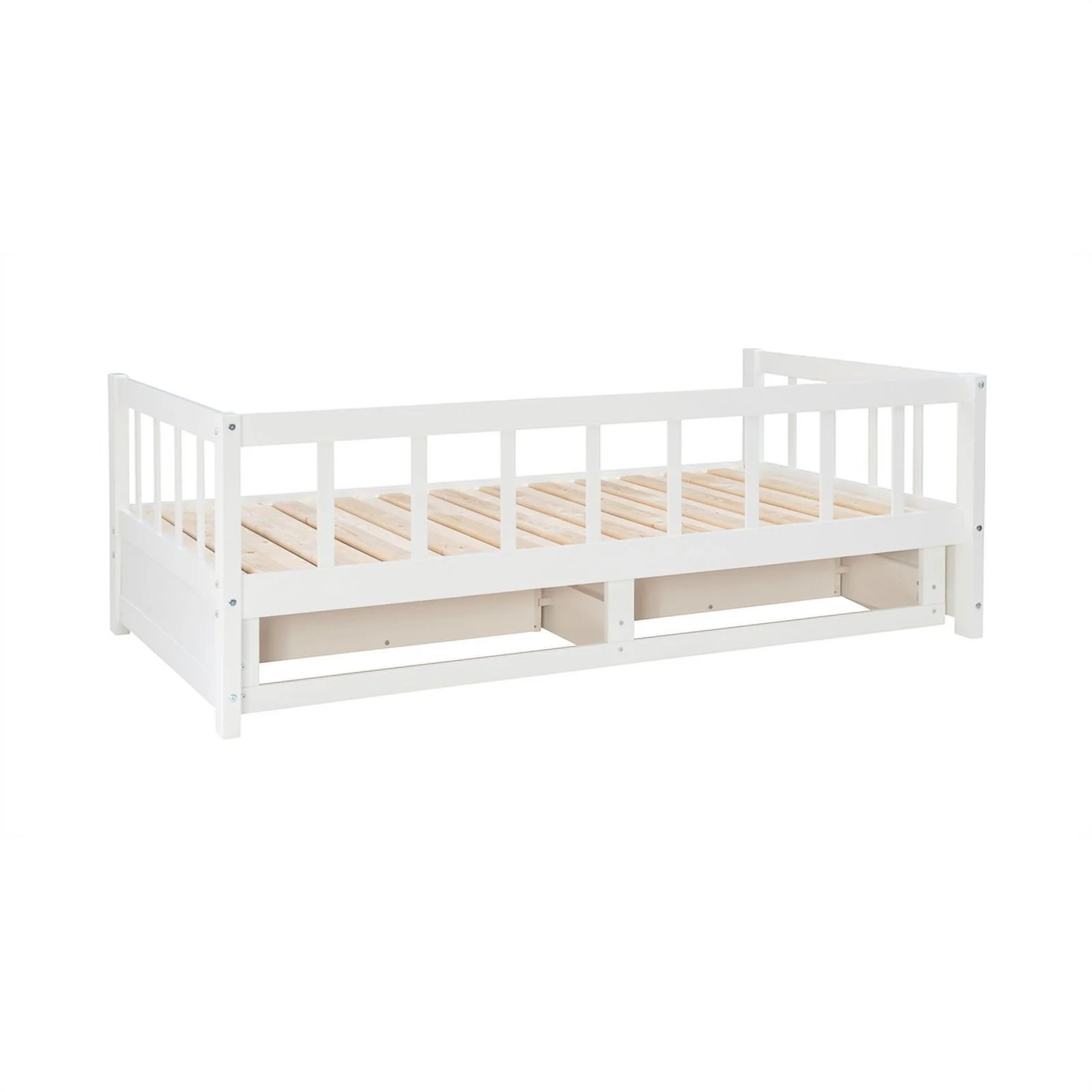 Contemporary Style 3pc Full Size Low-Profile Bed and 2x Nightstands Bedroom Furniture Set White Finish