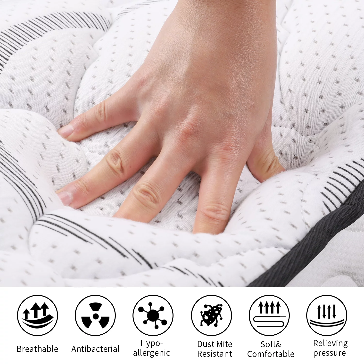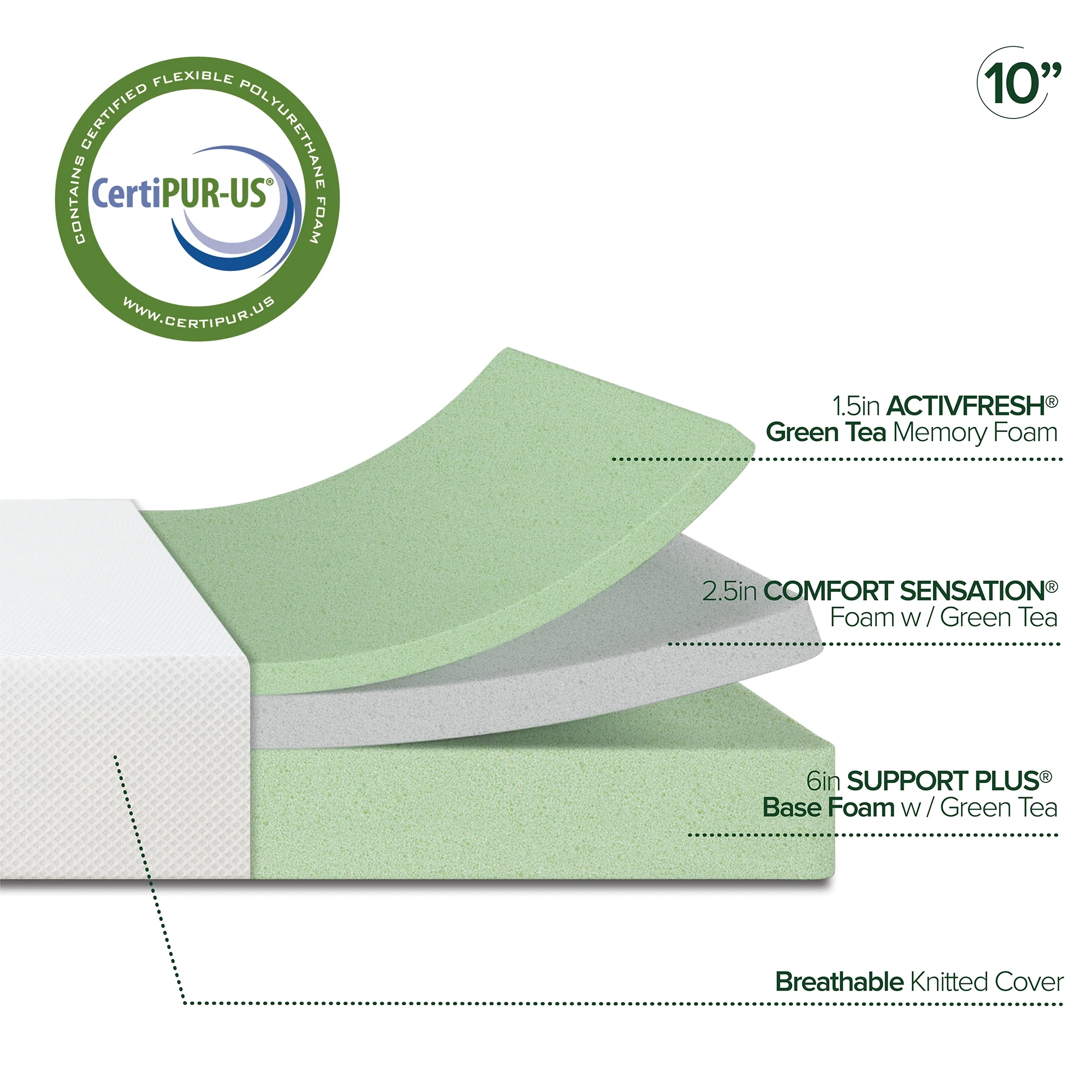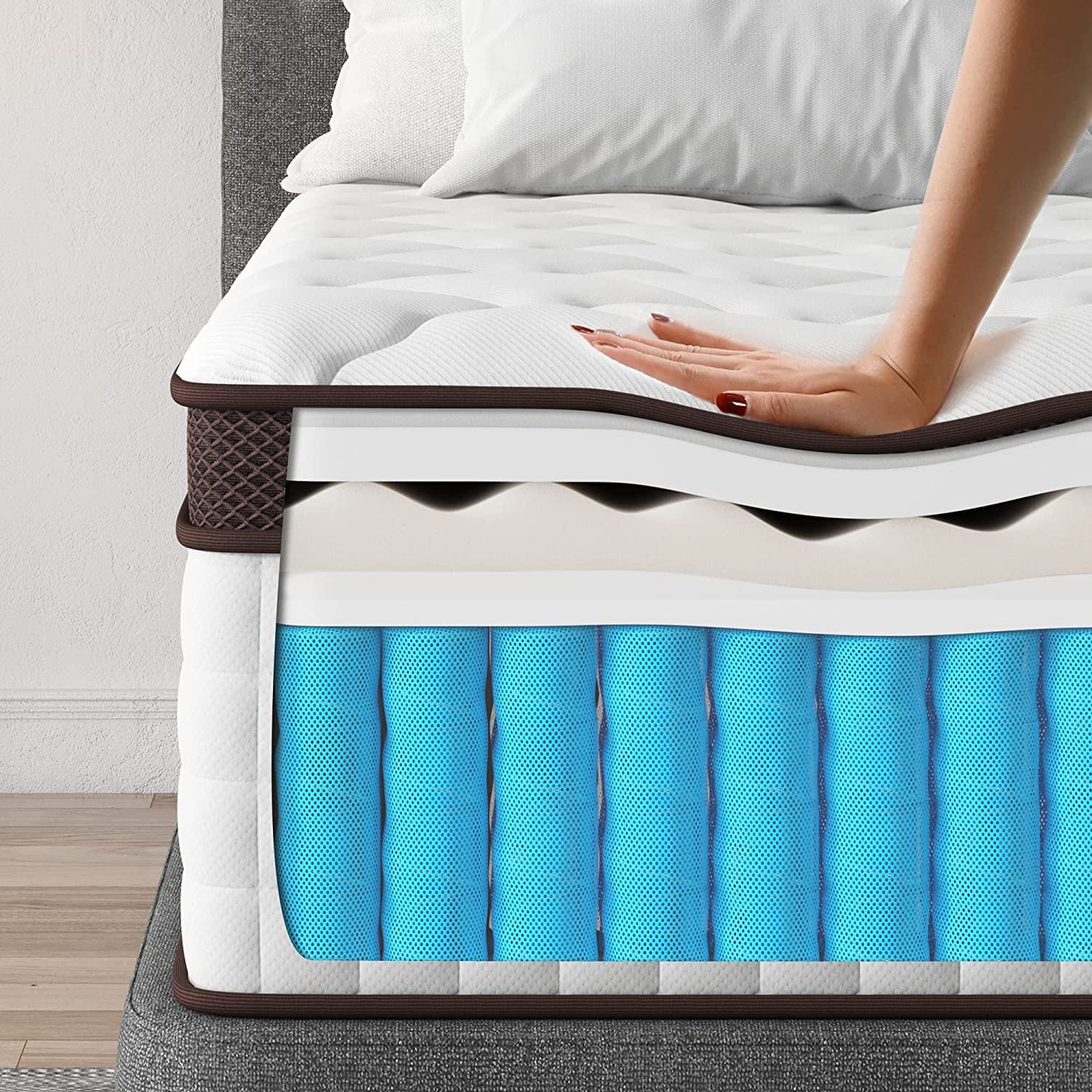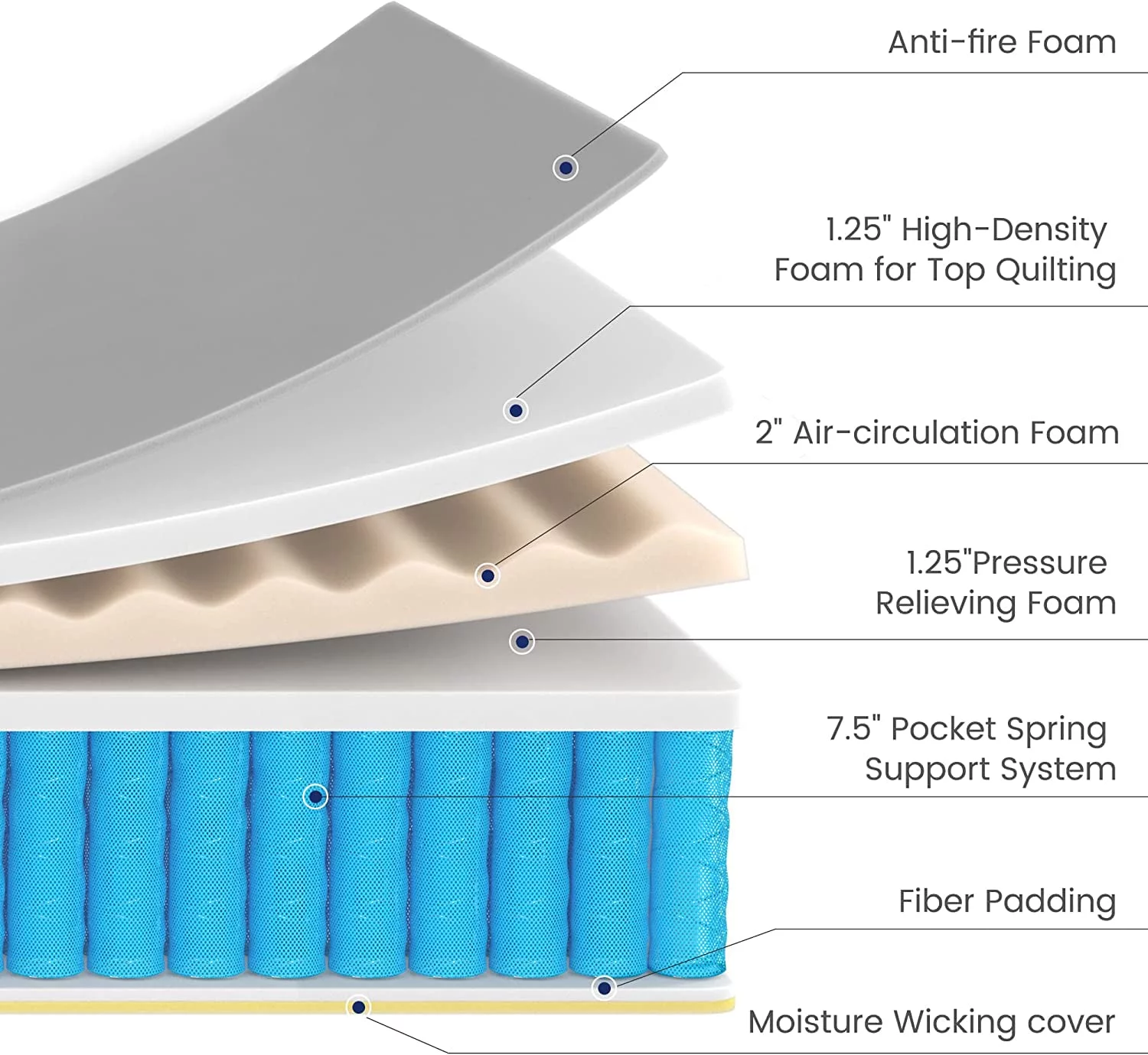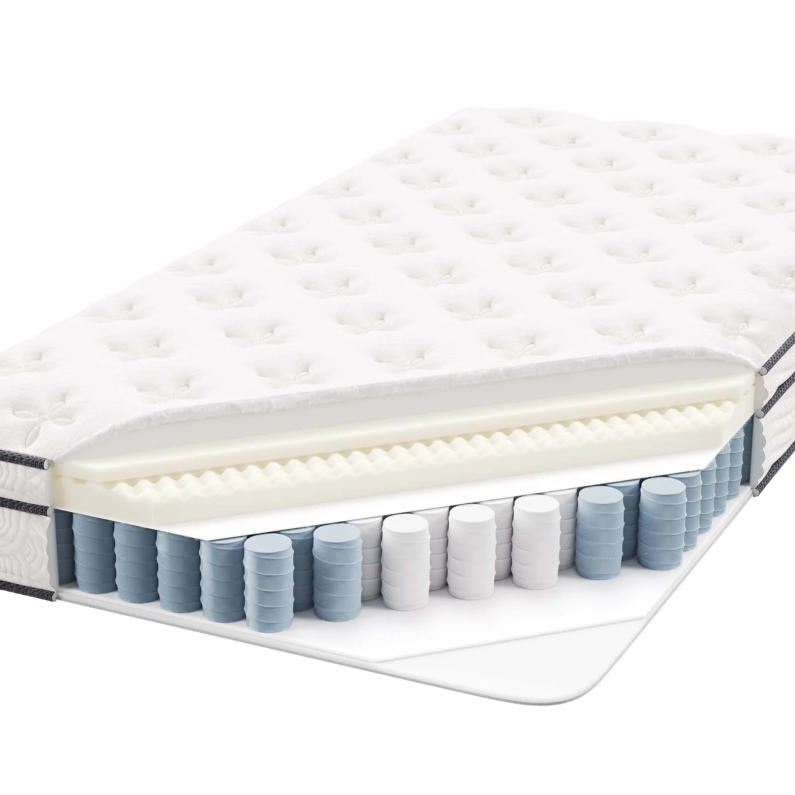 Gem 6 Inch Full Mattress, Premium PU Foam, Pocket Coils, Tricot Fabric- Saltoro Sherpi