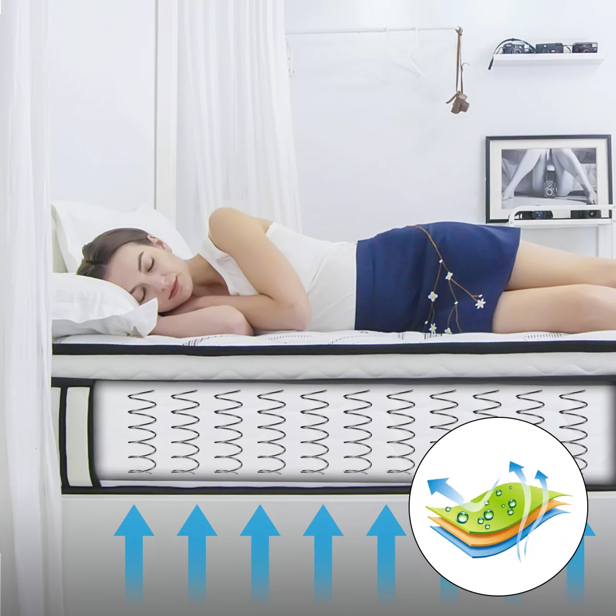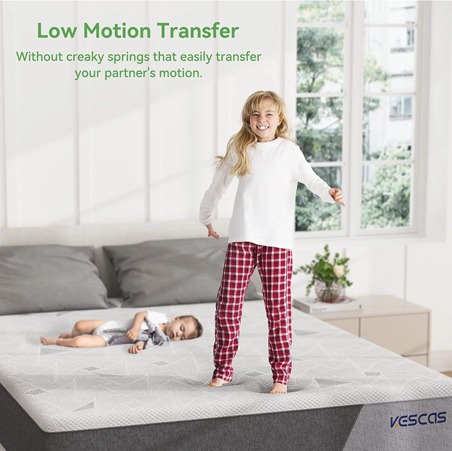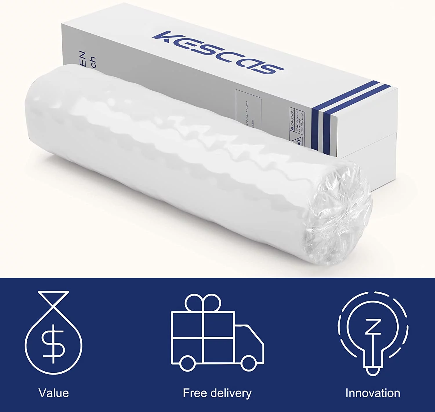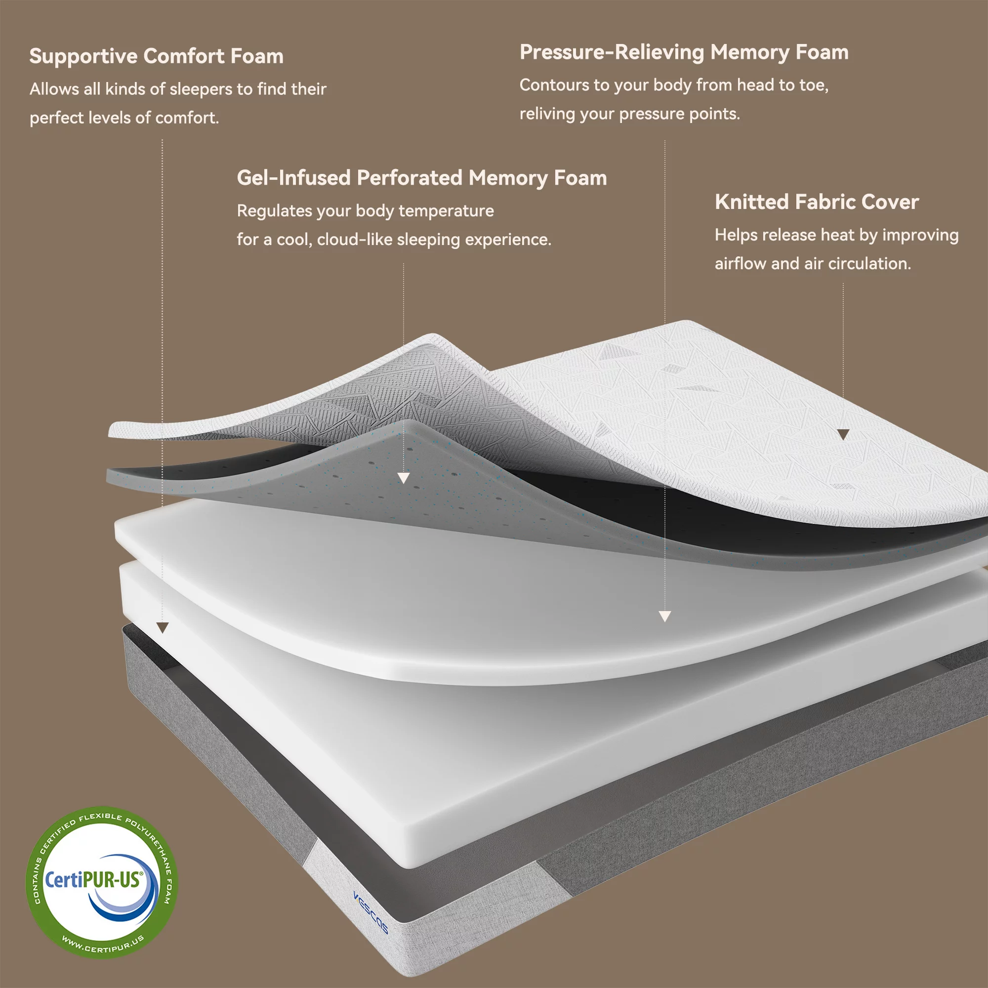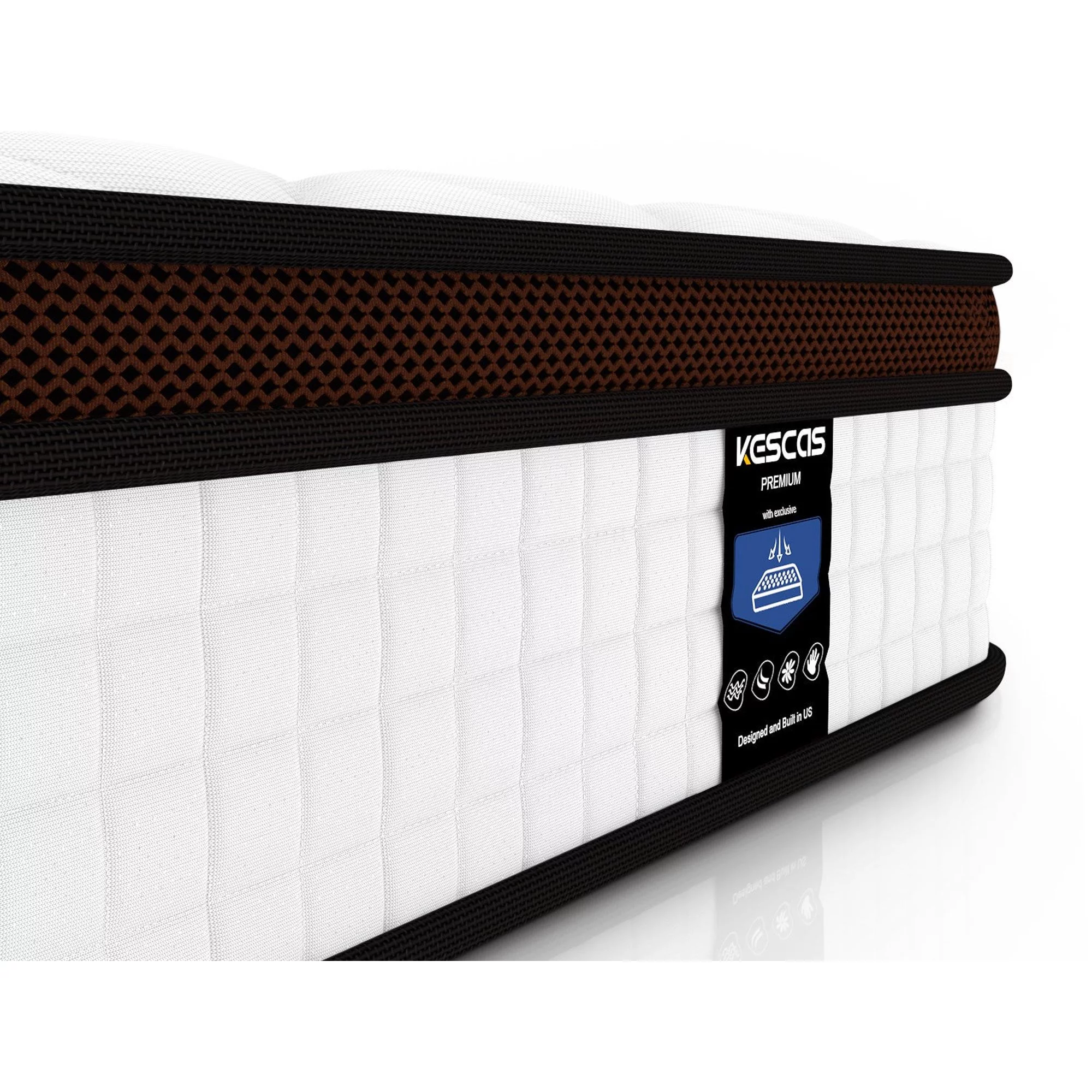 Gem 6 Inch Full Mattress, Premium PU Foam, Pocket Coils, Tricot Fabric- Saltoro Sherpi