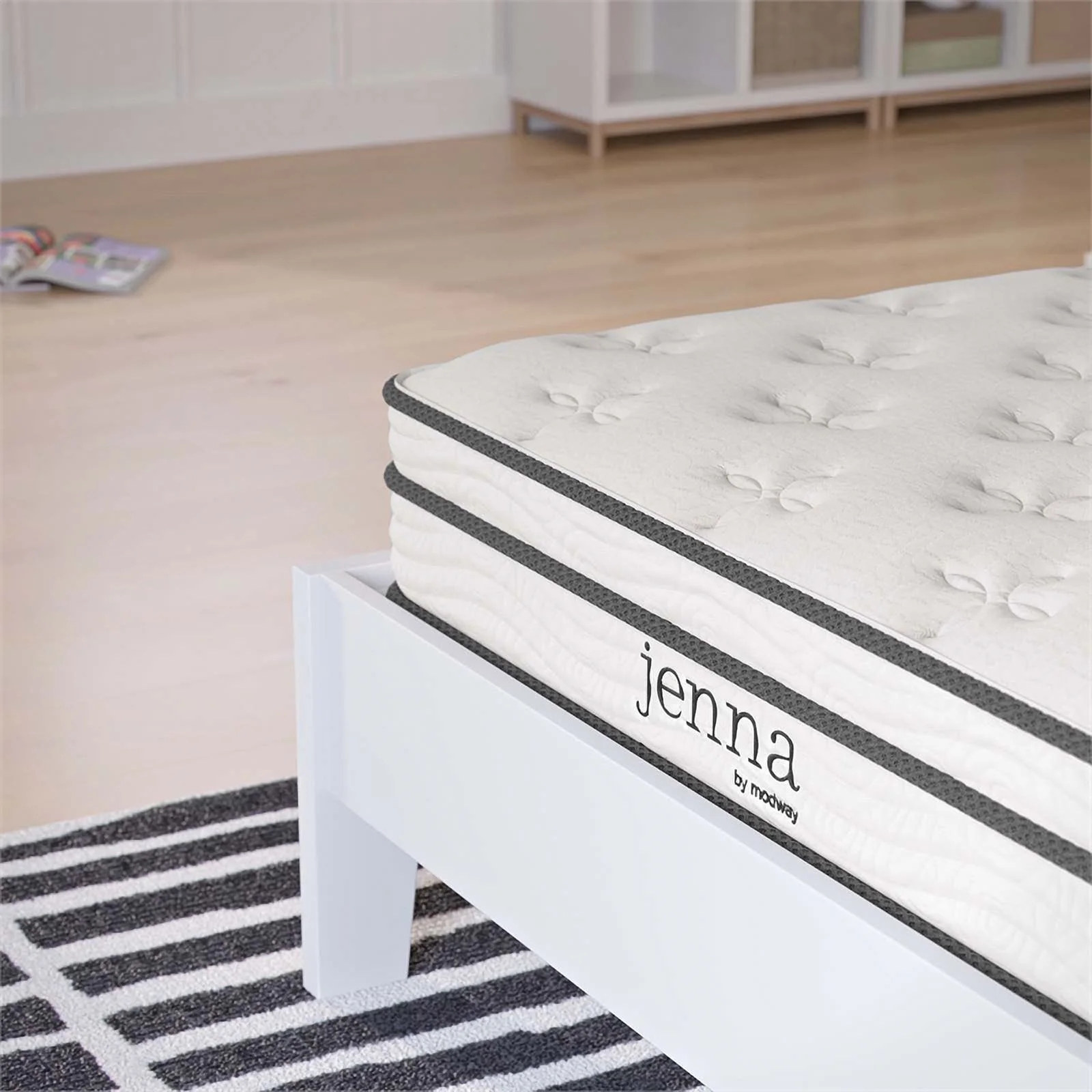 Pemberly Row Modern Fabric 6" Innerspring and Foam Narrow Twin Mattress in White