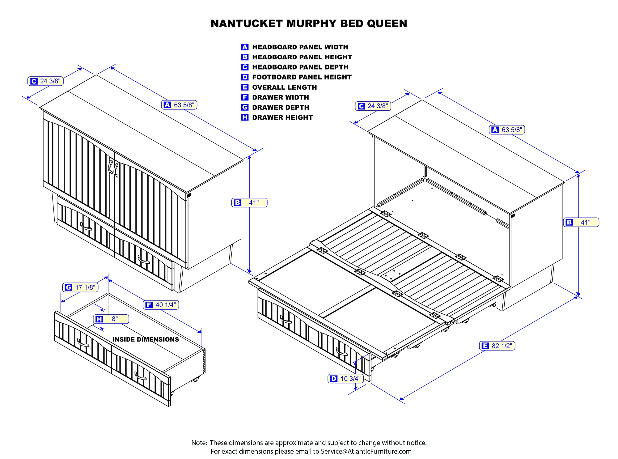 Nantucket Murphy Bed Chest with Cool Soft Mattress in Multiple Colors and Sizes