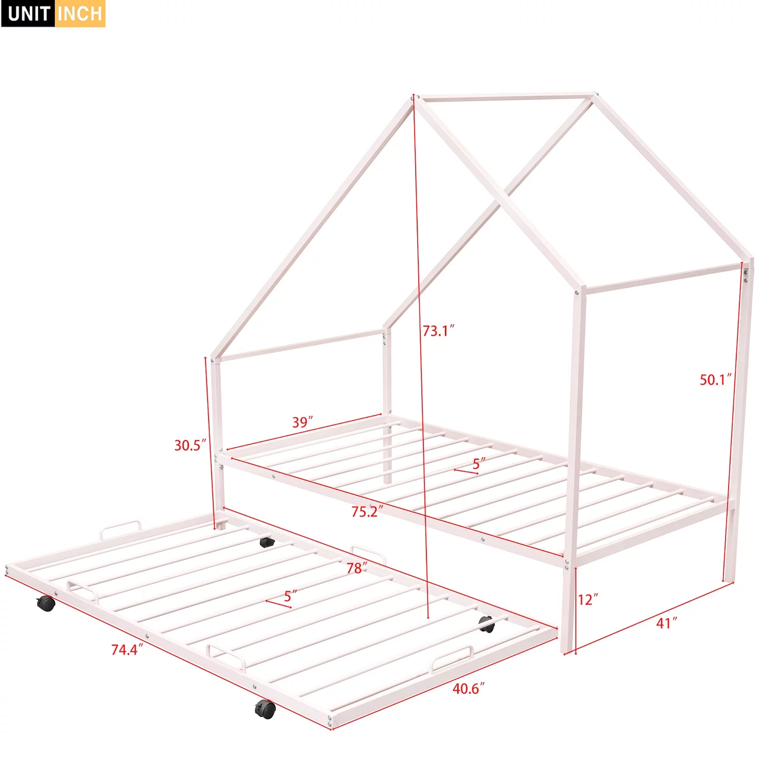 Churanty Twin Size Metal House Bed with Trundle, Metal Bed Frame for Girls Boys Teens,Pink