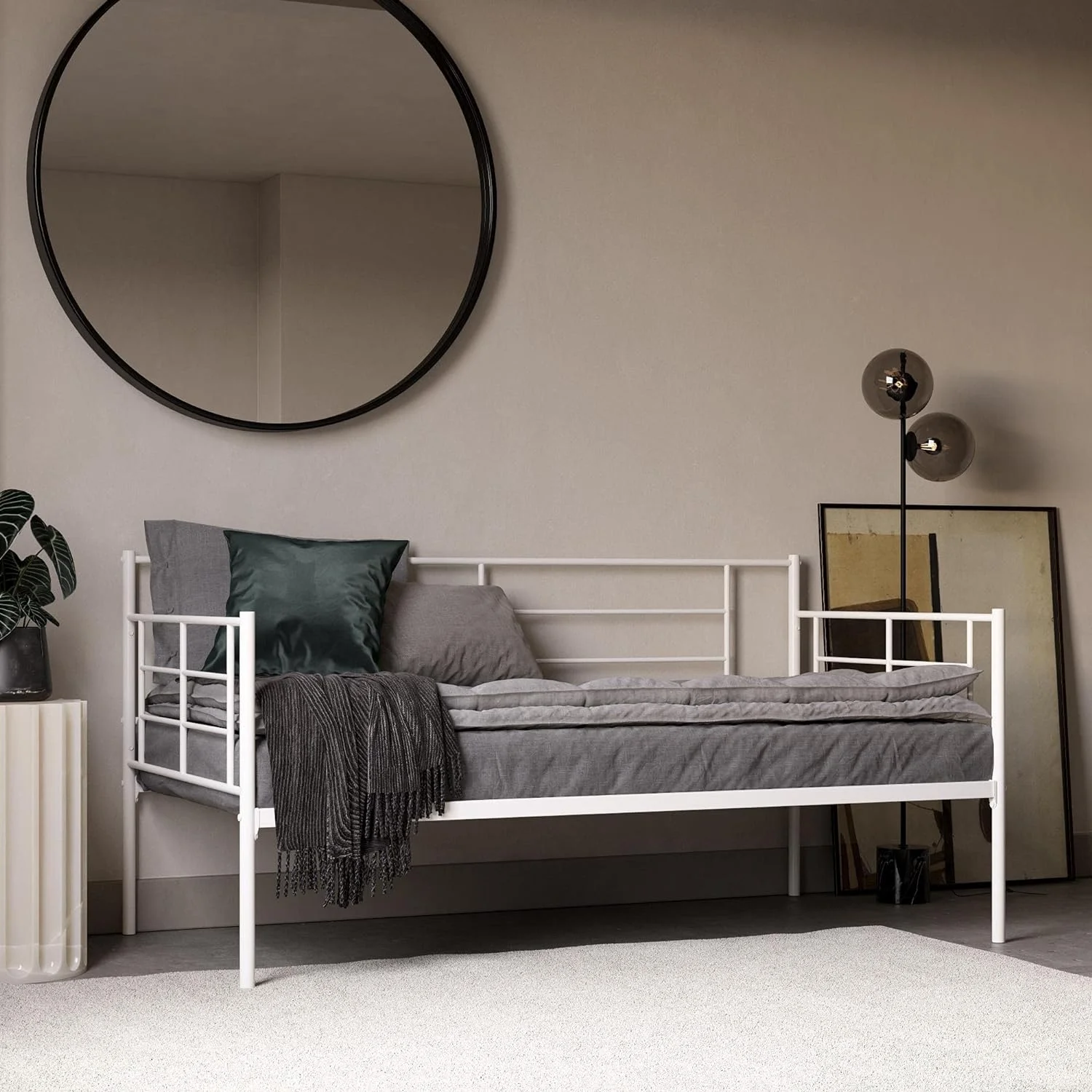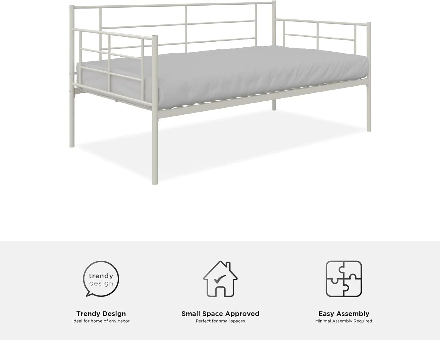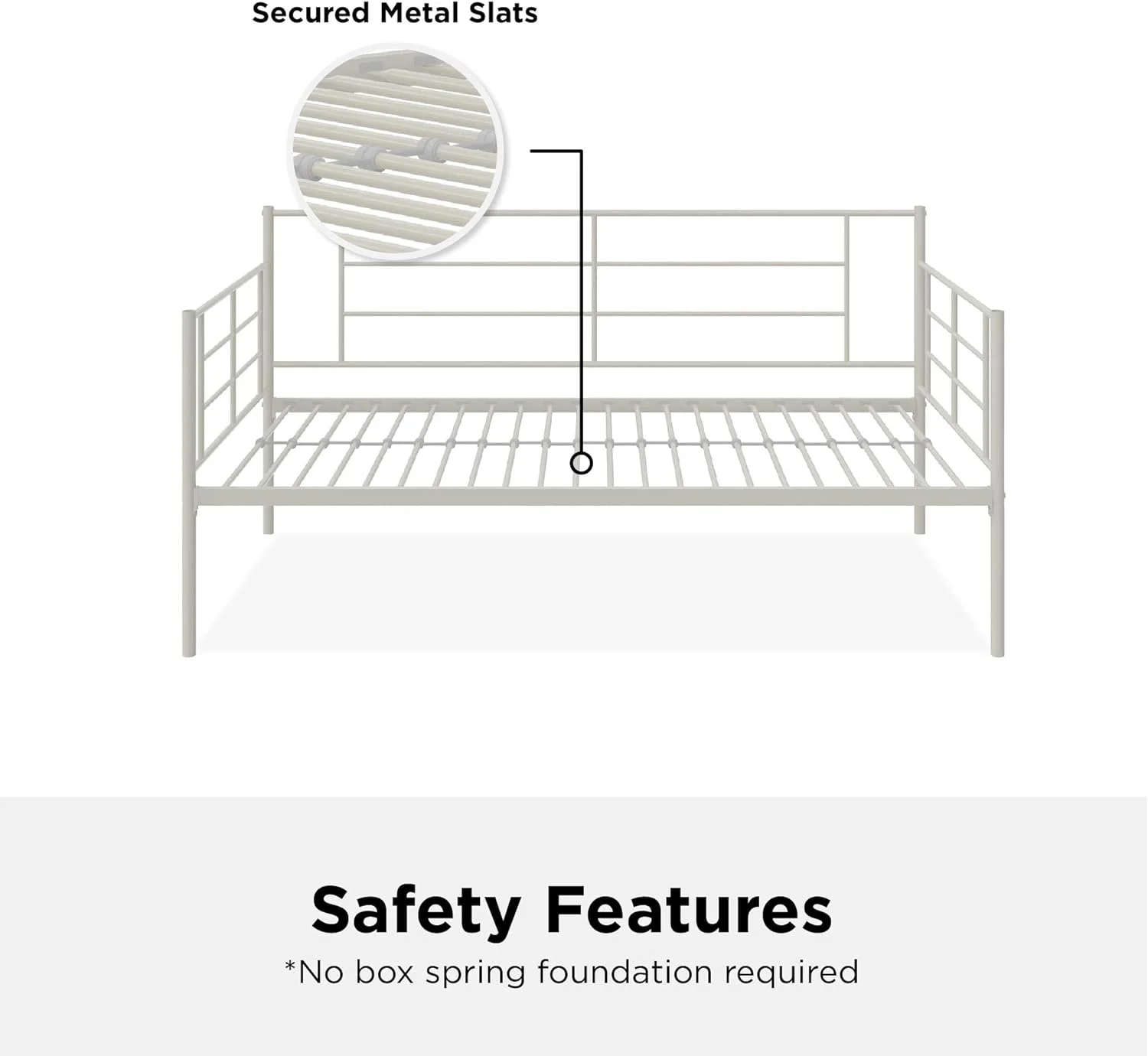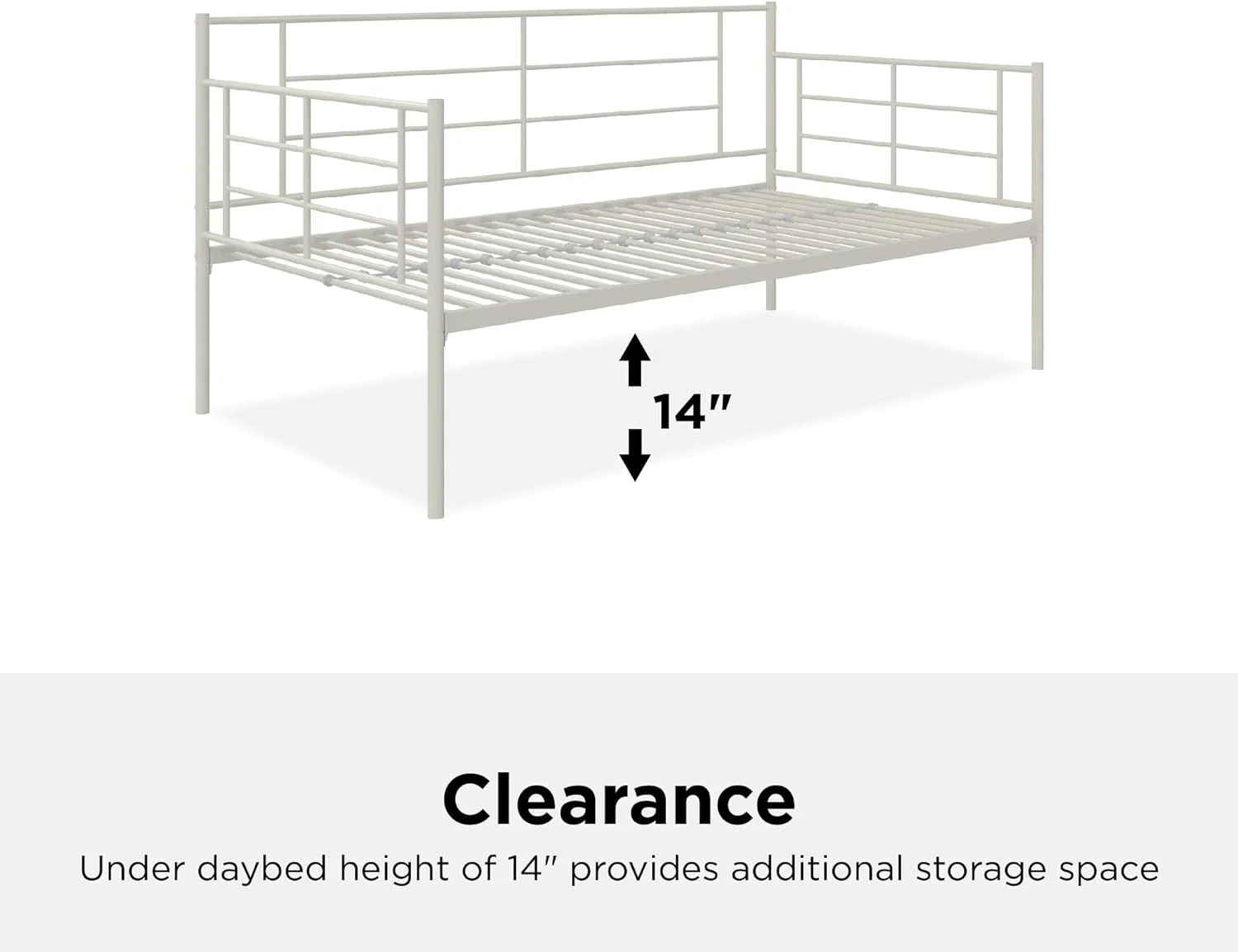 Praxis Metal Daybed With Steel Frame And Slats, Under Bed Storage, , White