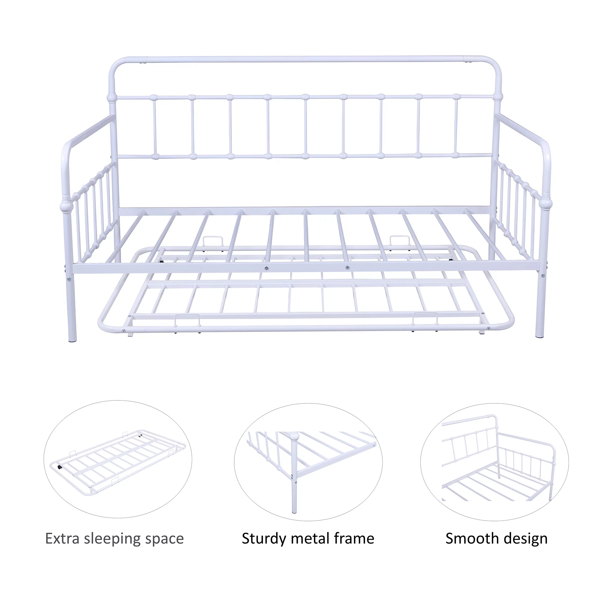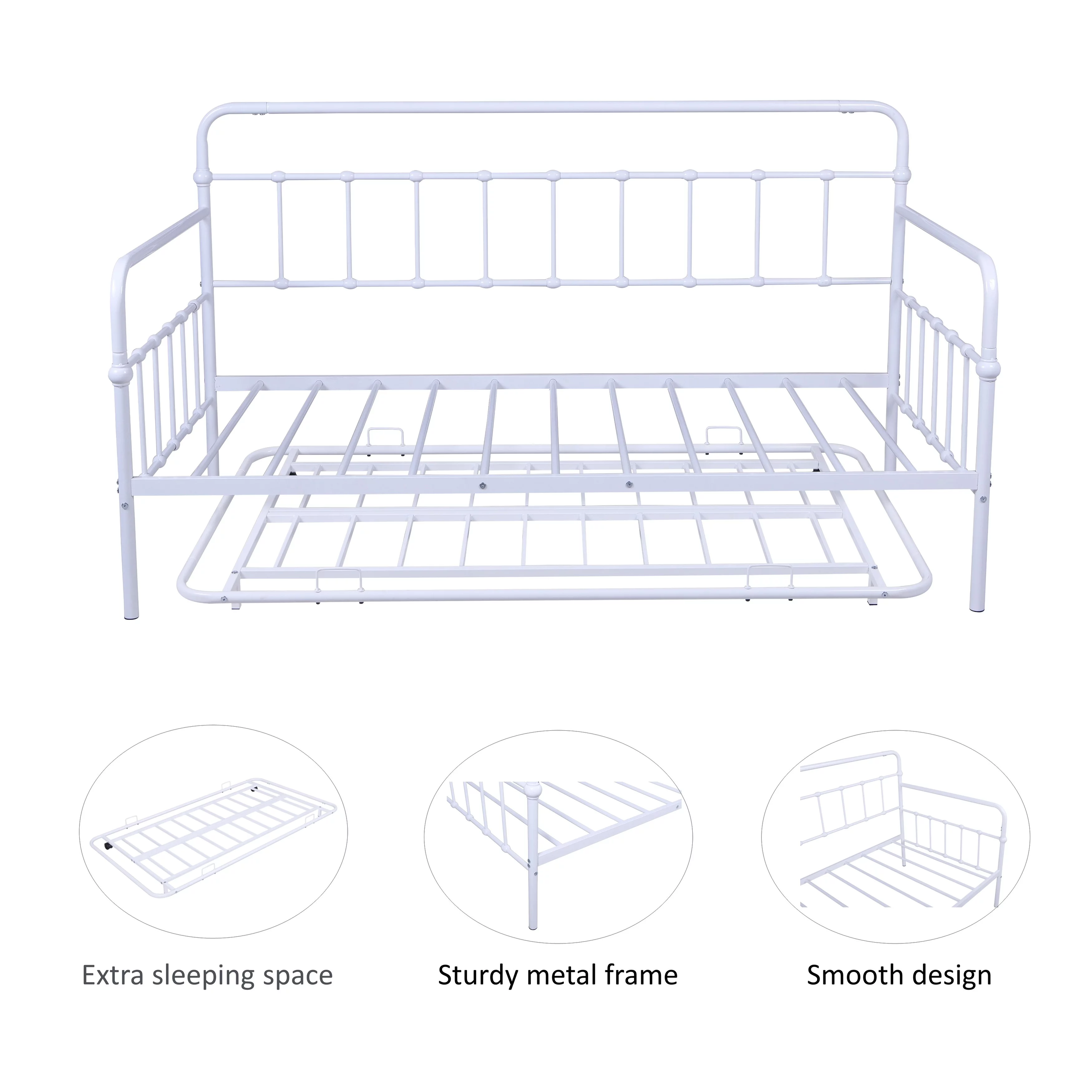 Metal Daybed with Trundle Twin Sofa Bed Frame White, No Box Spring Needed