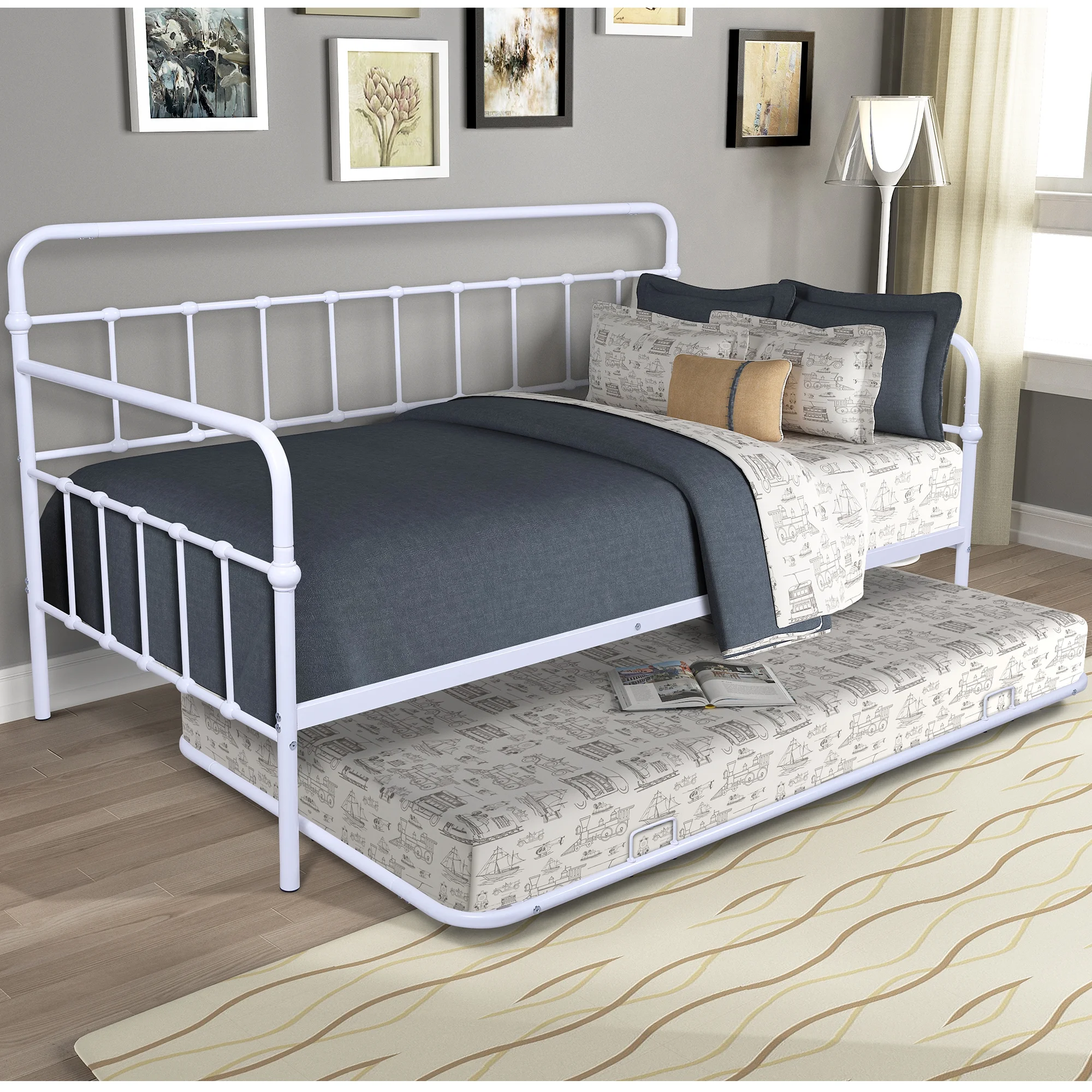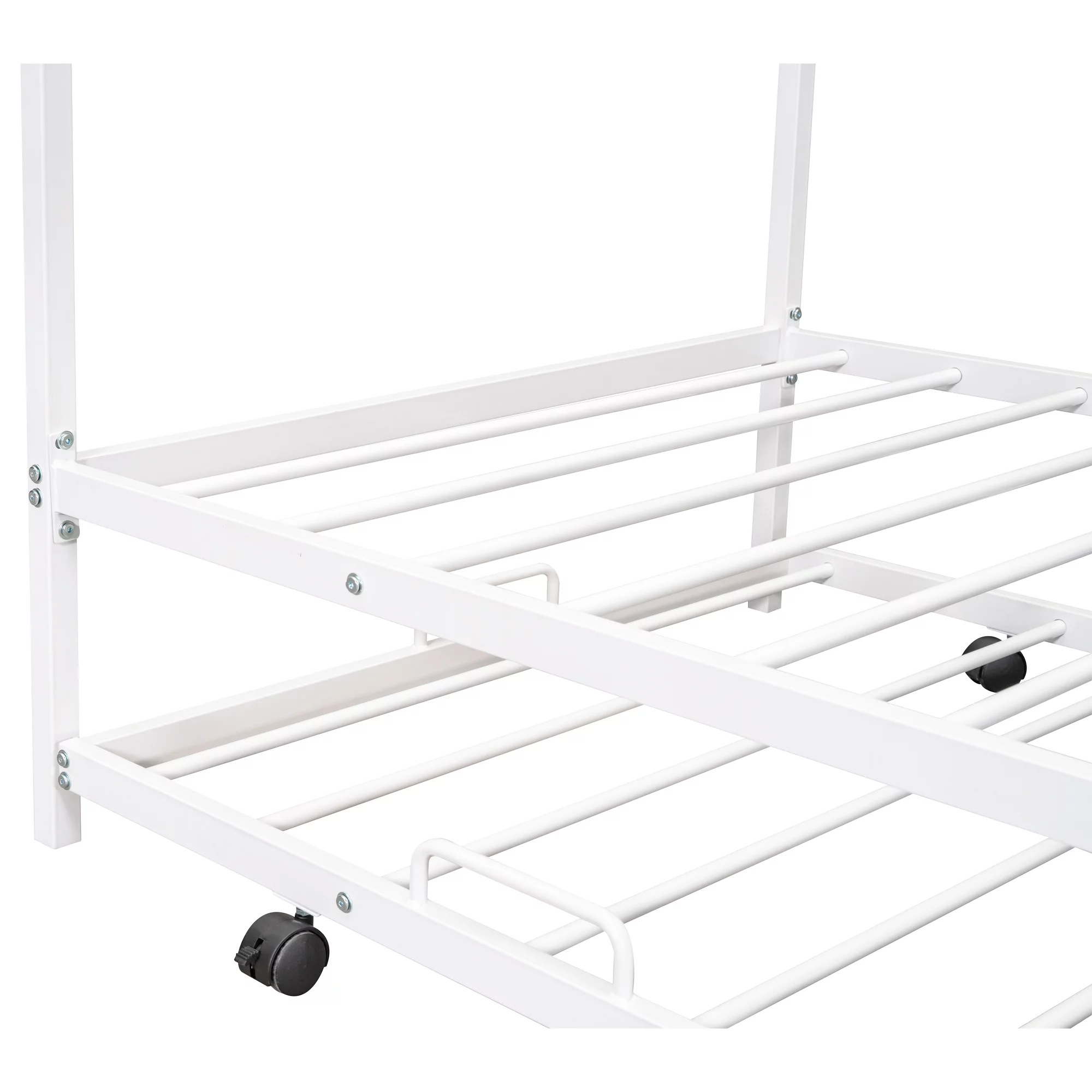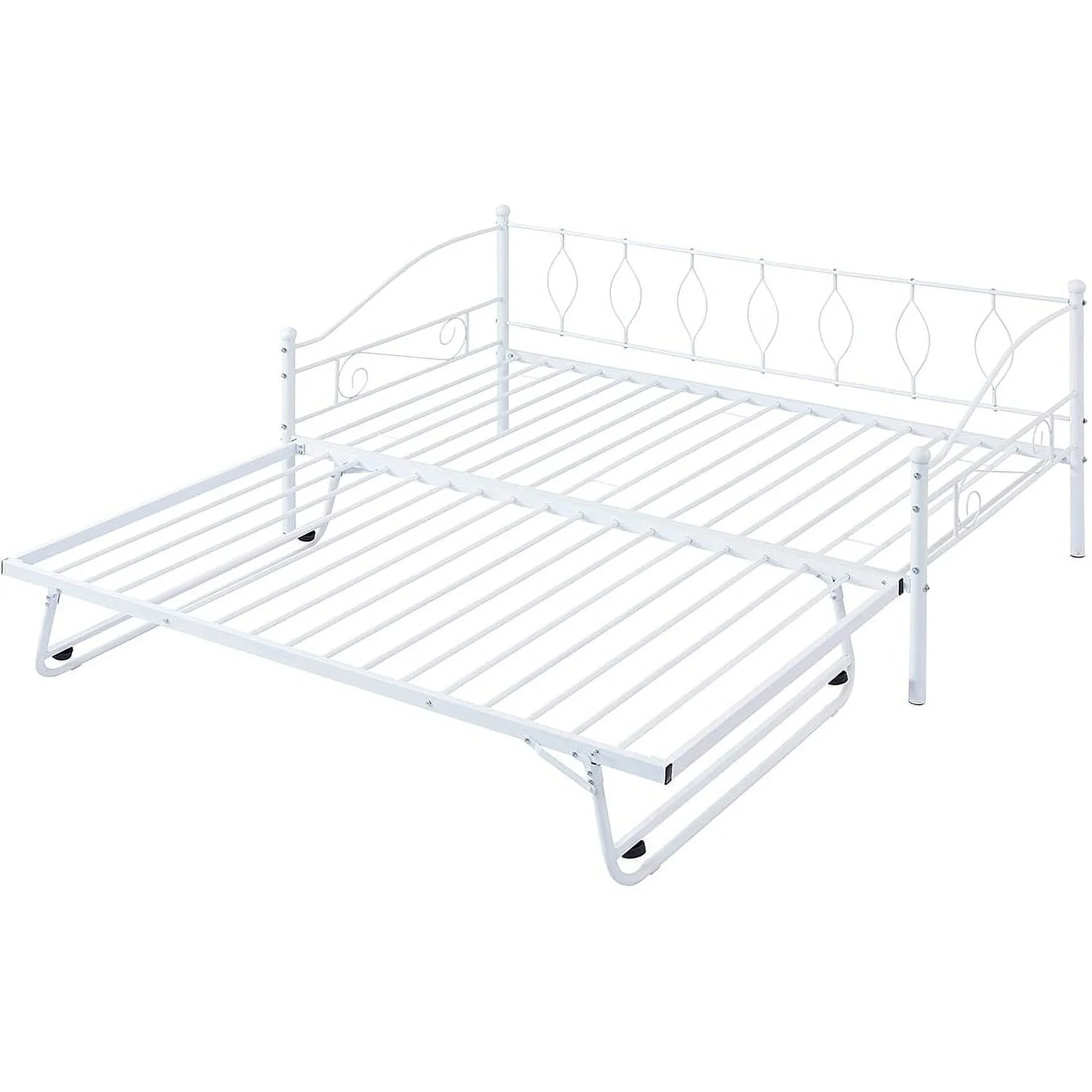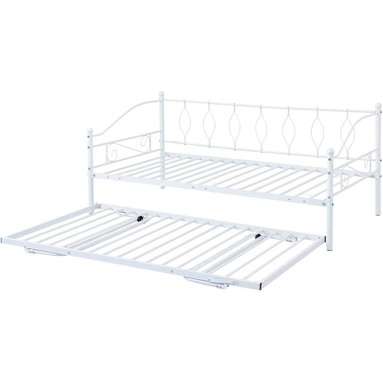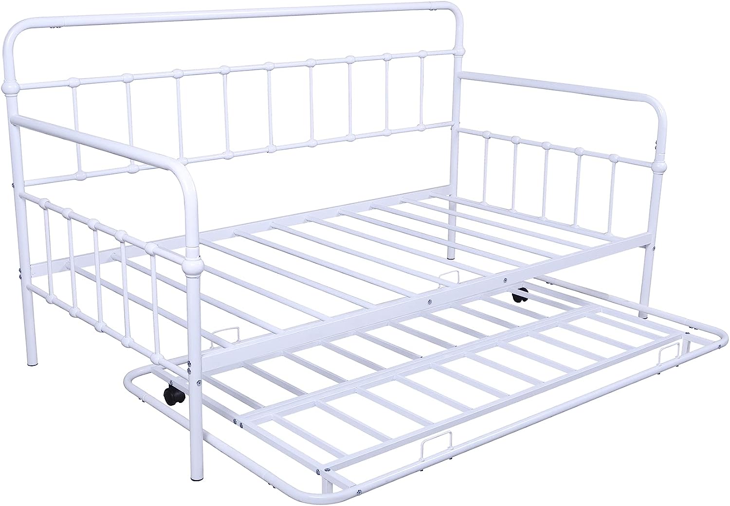 MERAX Metal Daybed with Twin Size Portable Folding Trundle White Twin
