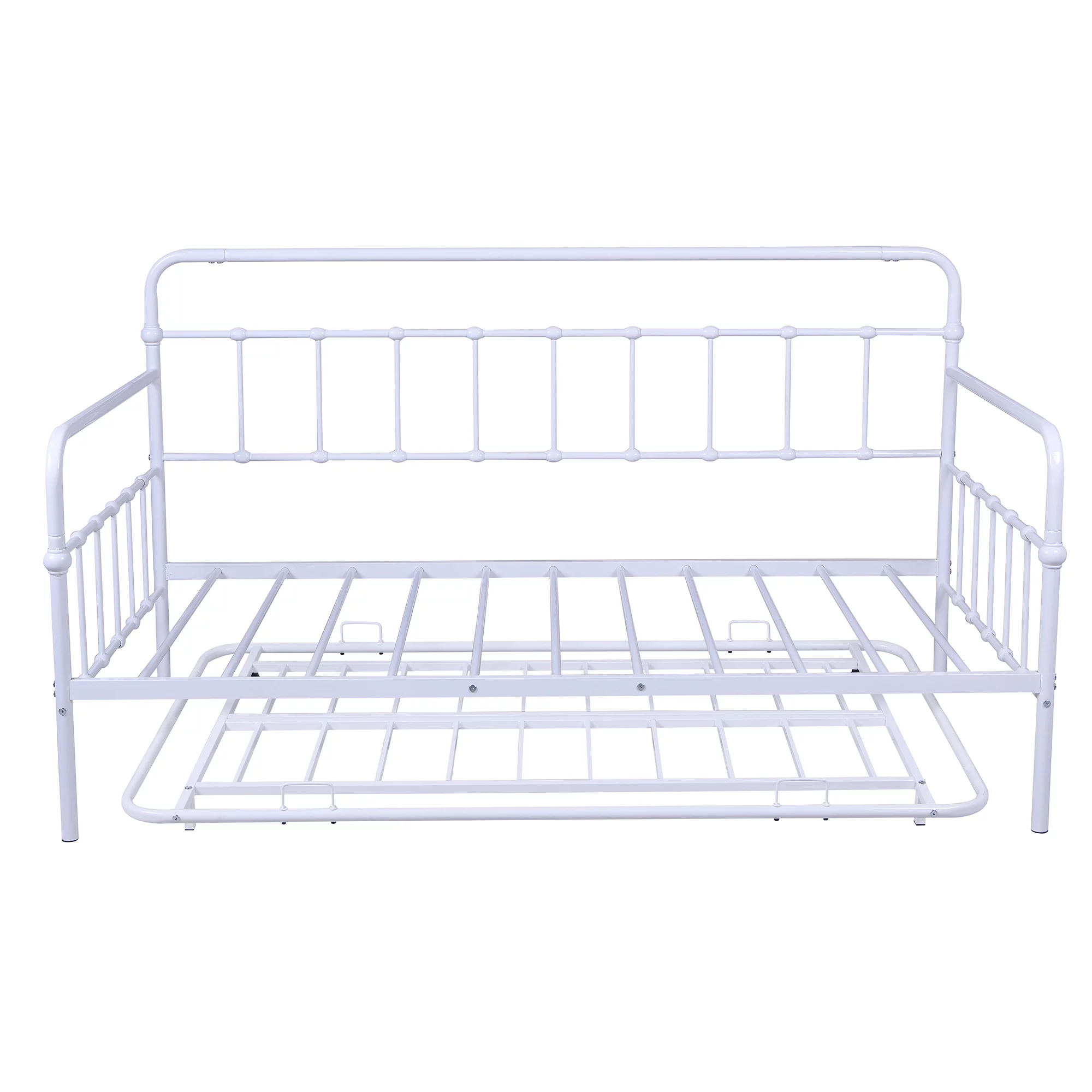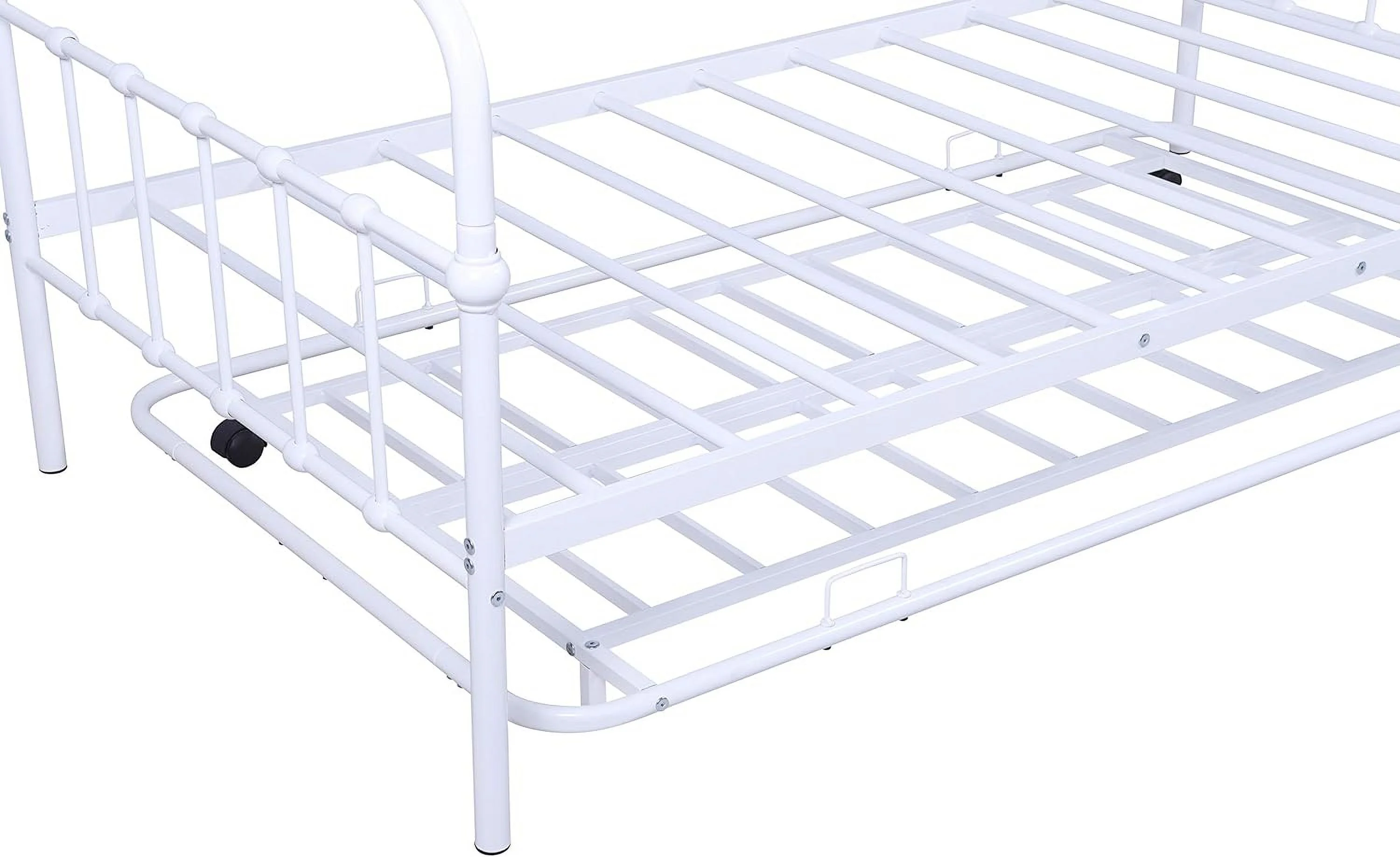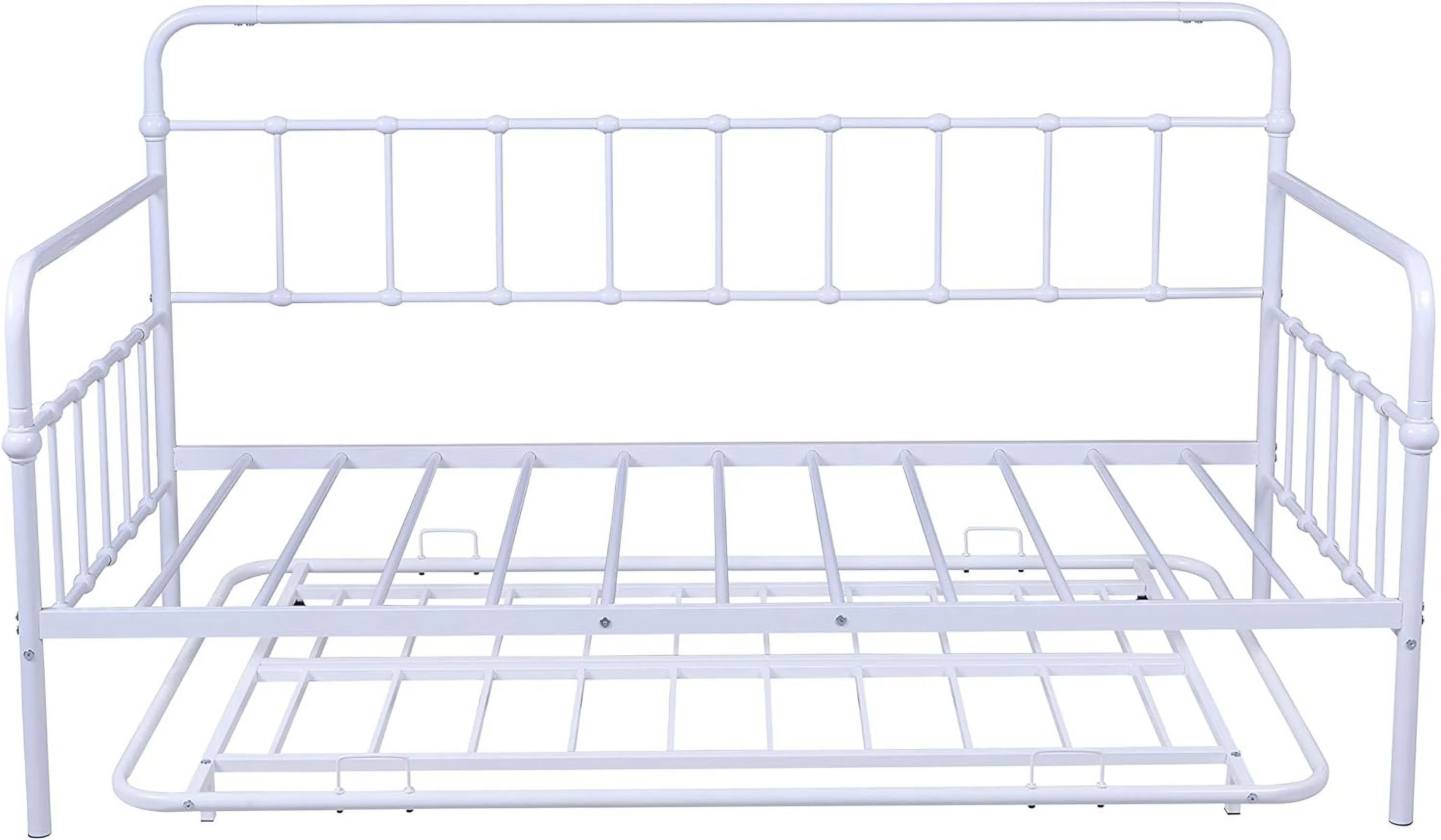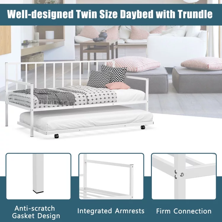 Twin Metal Daybed with Roll Out Trundle Heavy Duty Frame Sofa Bed Set White