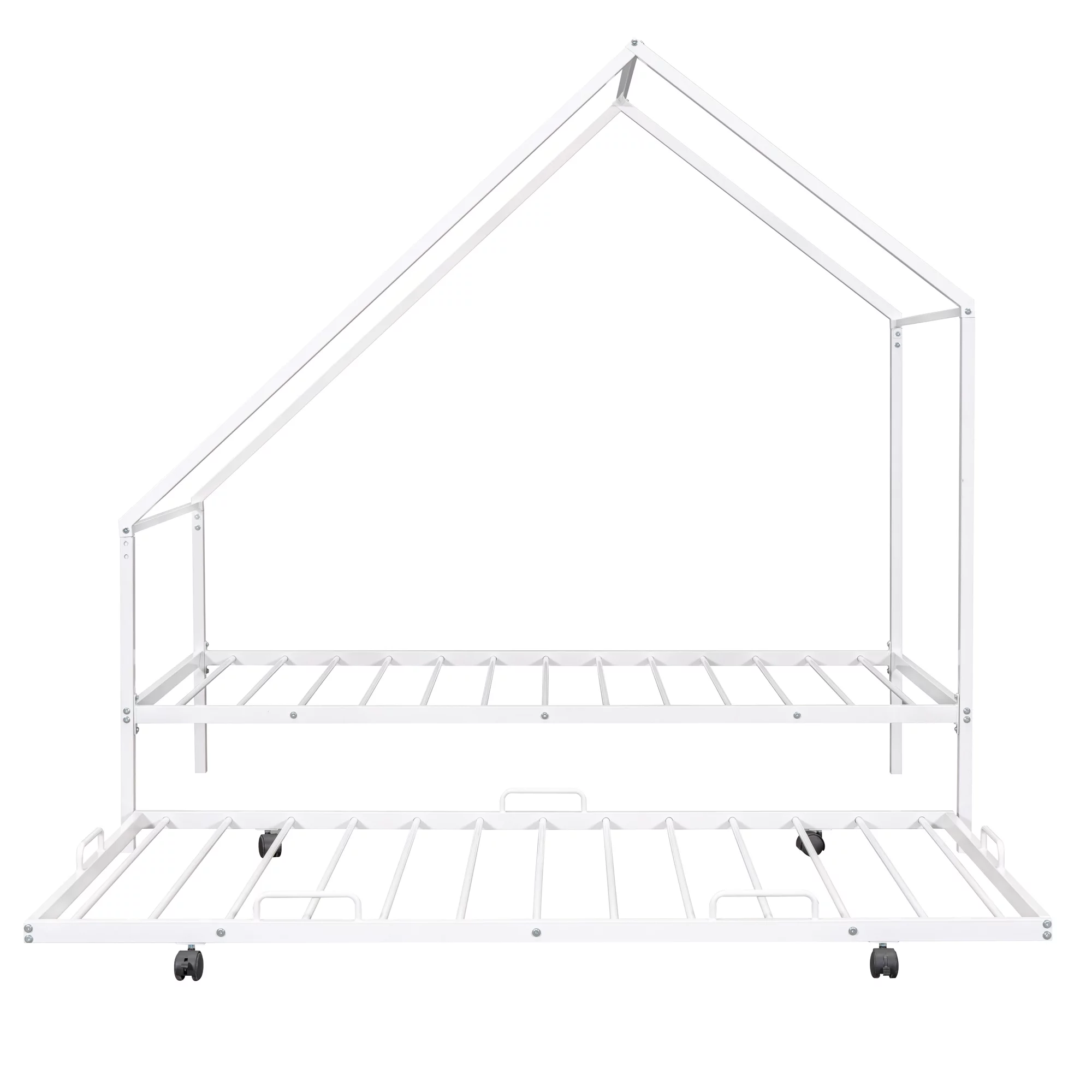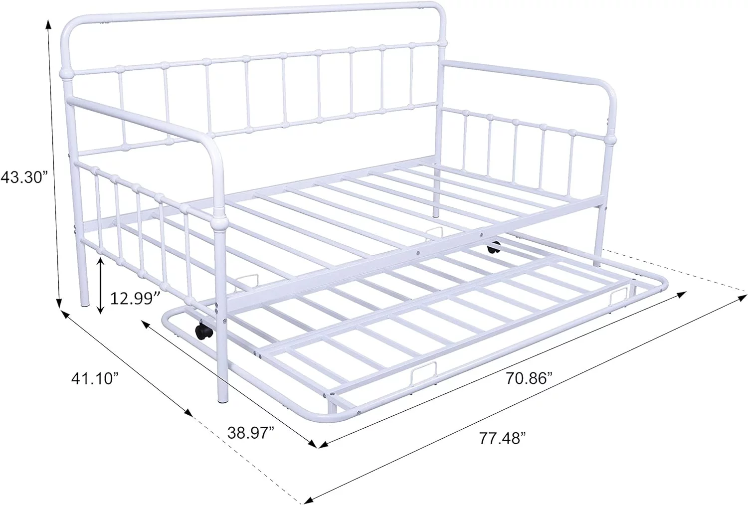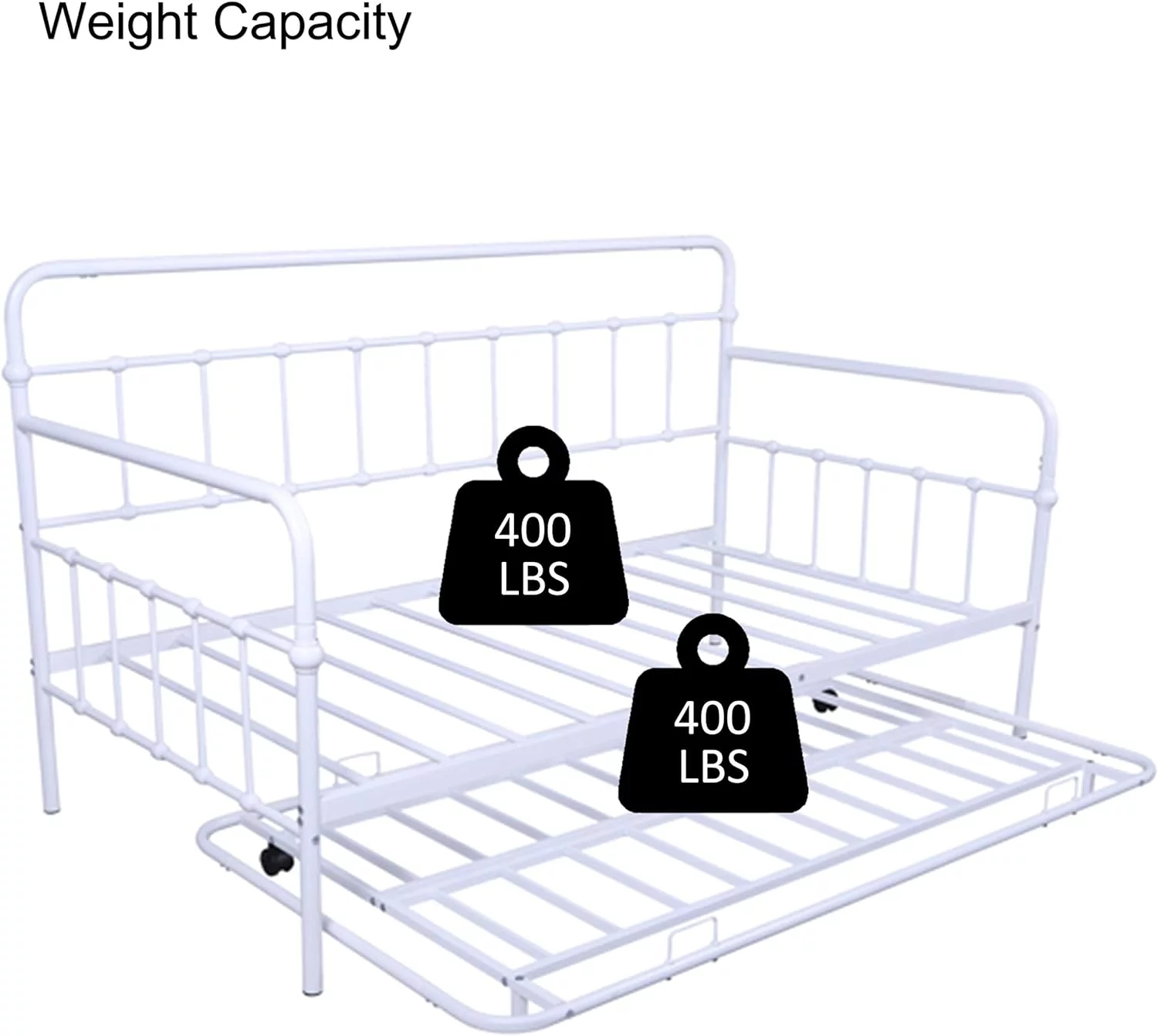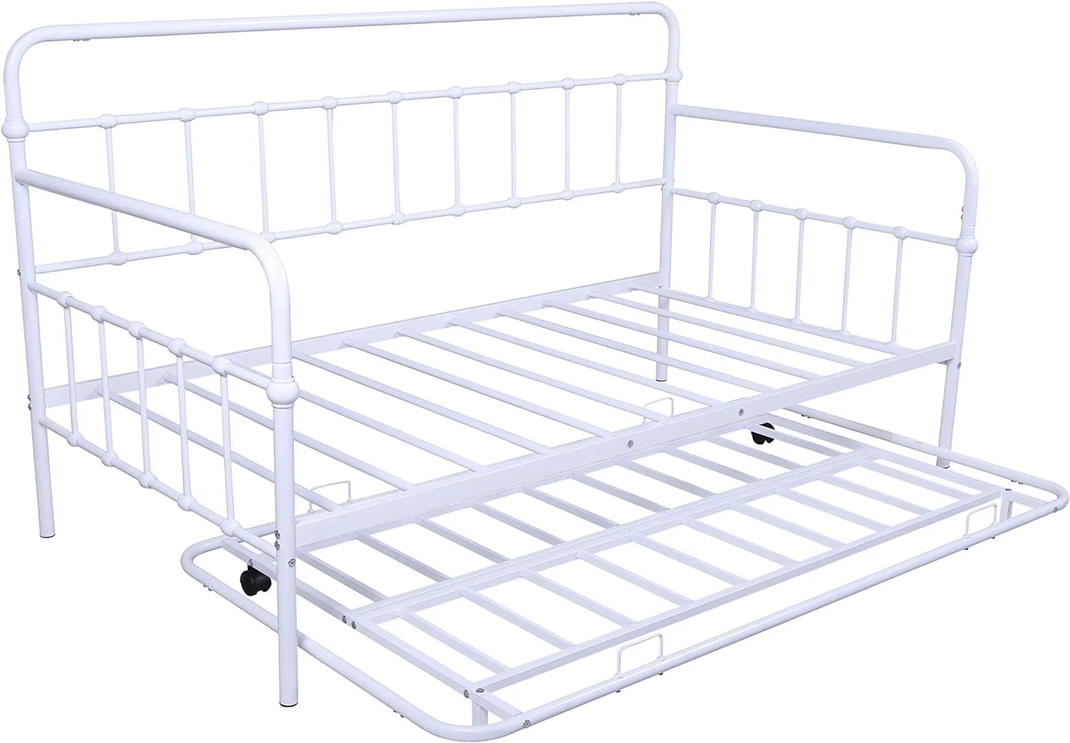 Twin Metal Daybed with Roll Out Trundle Heavy Duty Frame Sofa Bed Set White