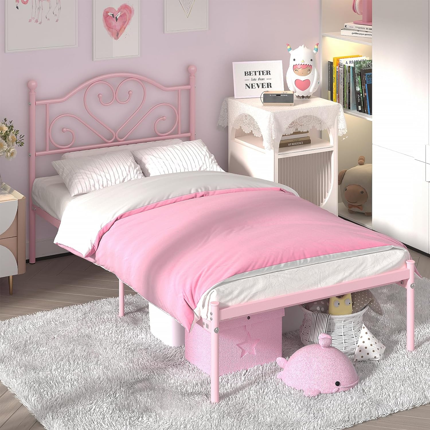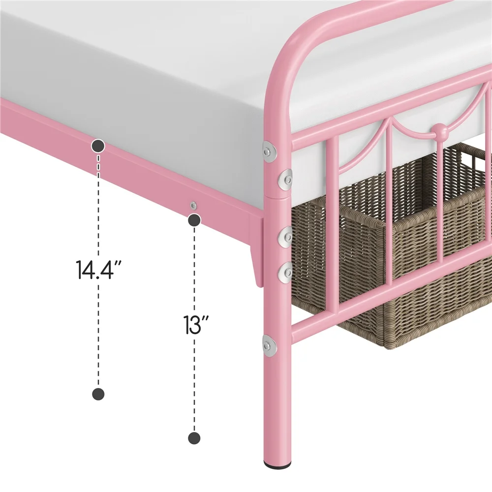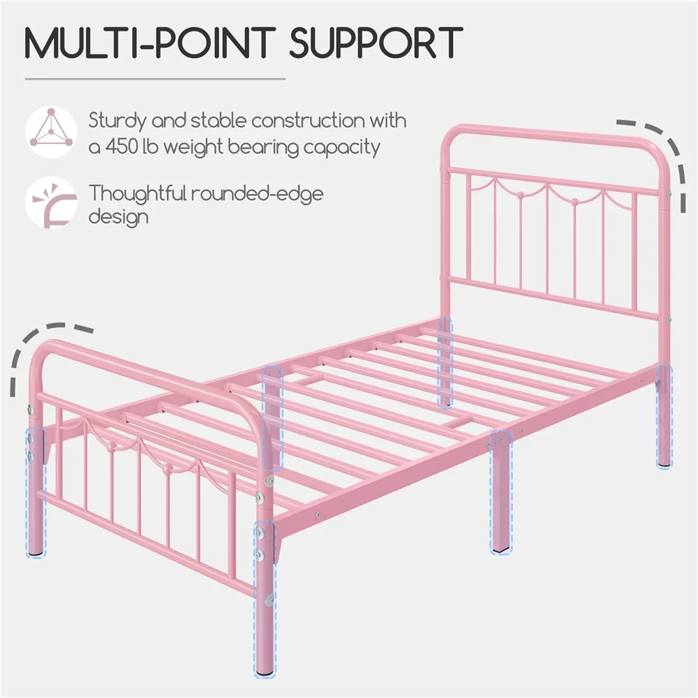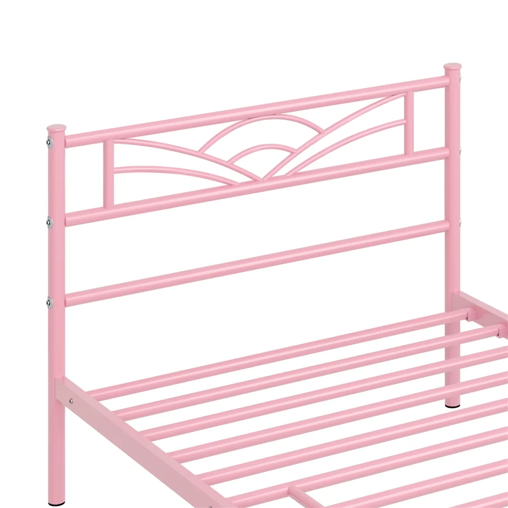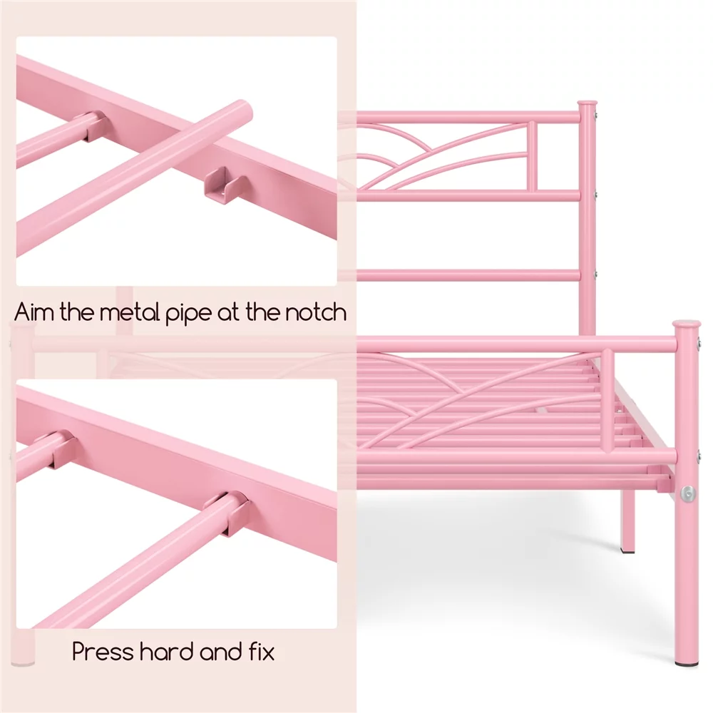 FJU Twin Bed Frames with , Heavy Duty Metal Platform Bed Space Easy Assembly for Kids Adults, Pink