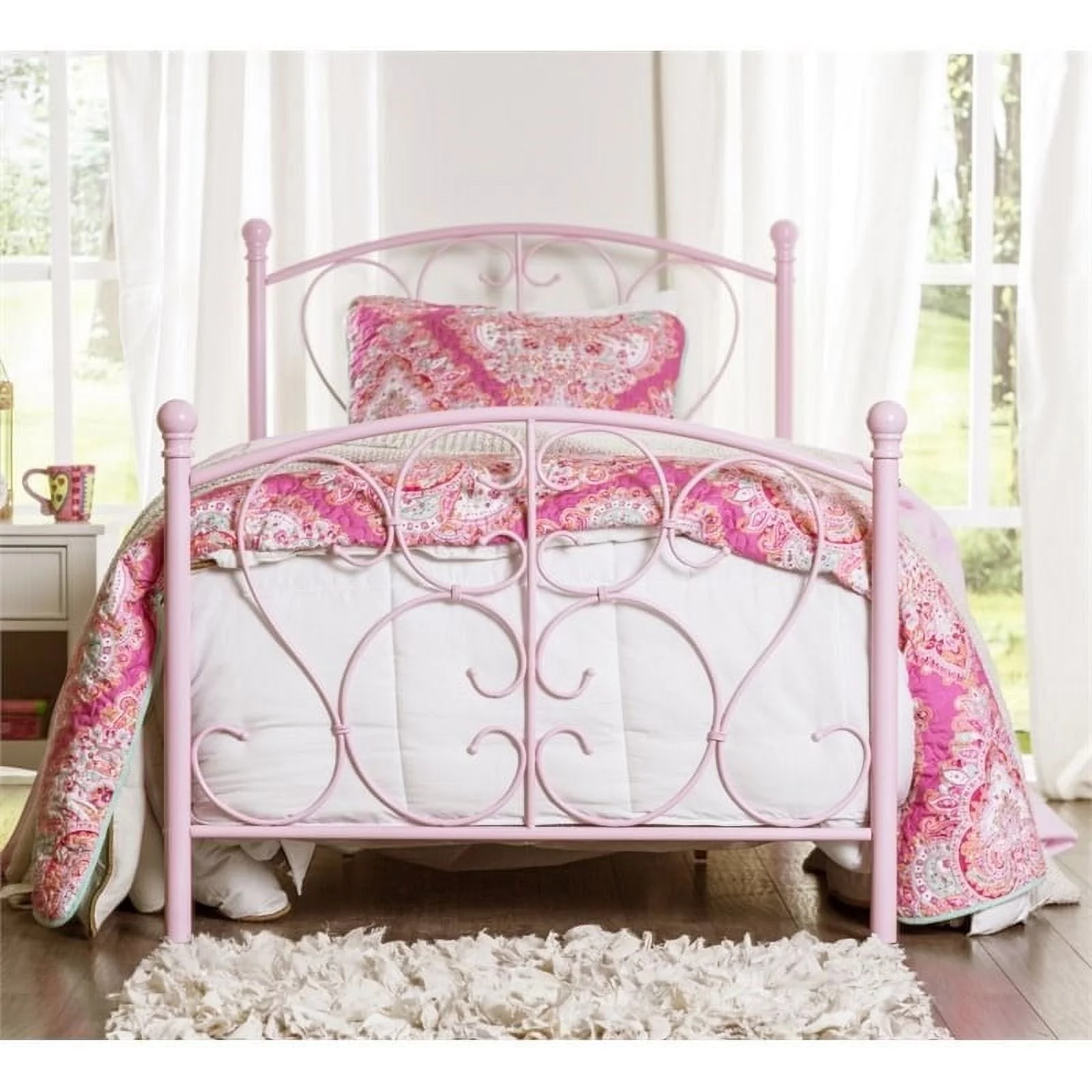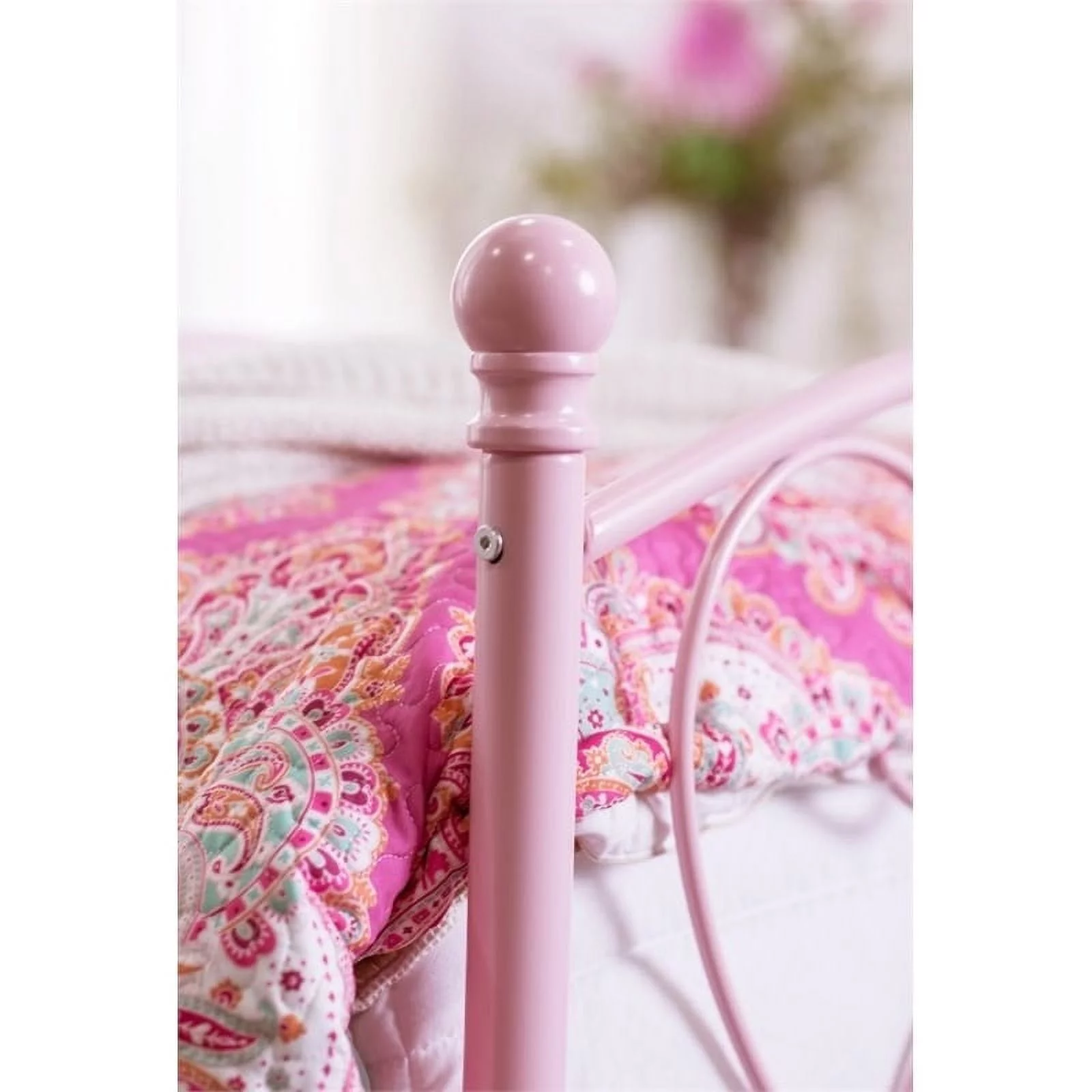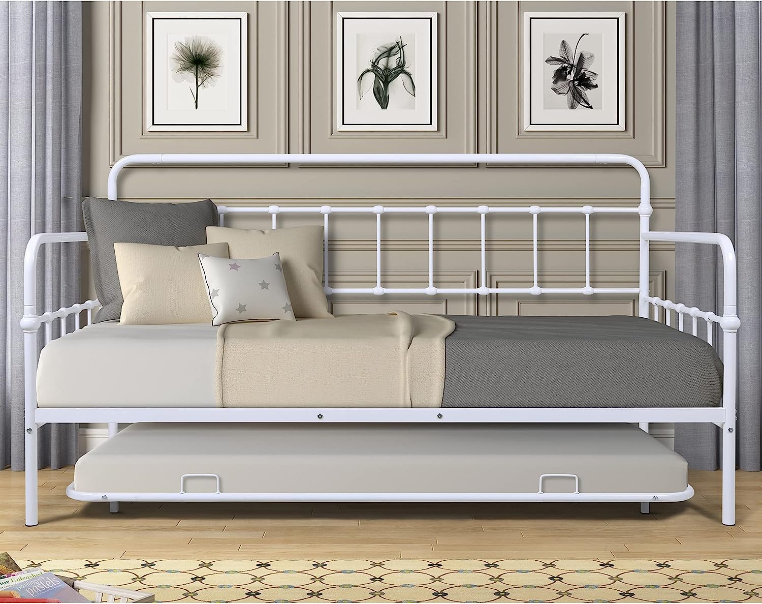 Bowery Hill Traditional Metal/Steel Tubing Twin Floral Daybed in White
