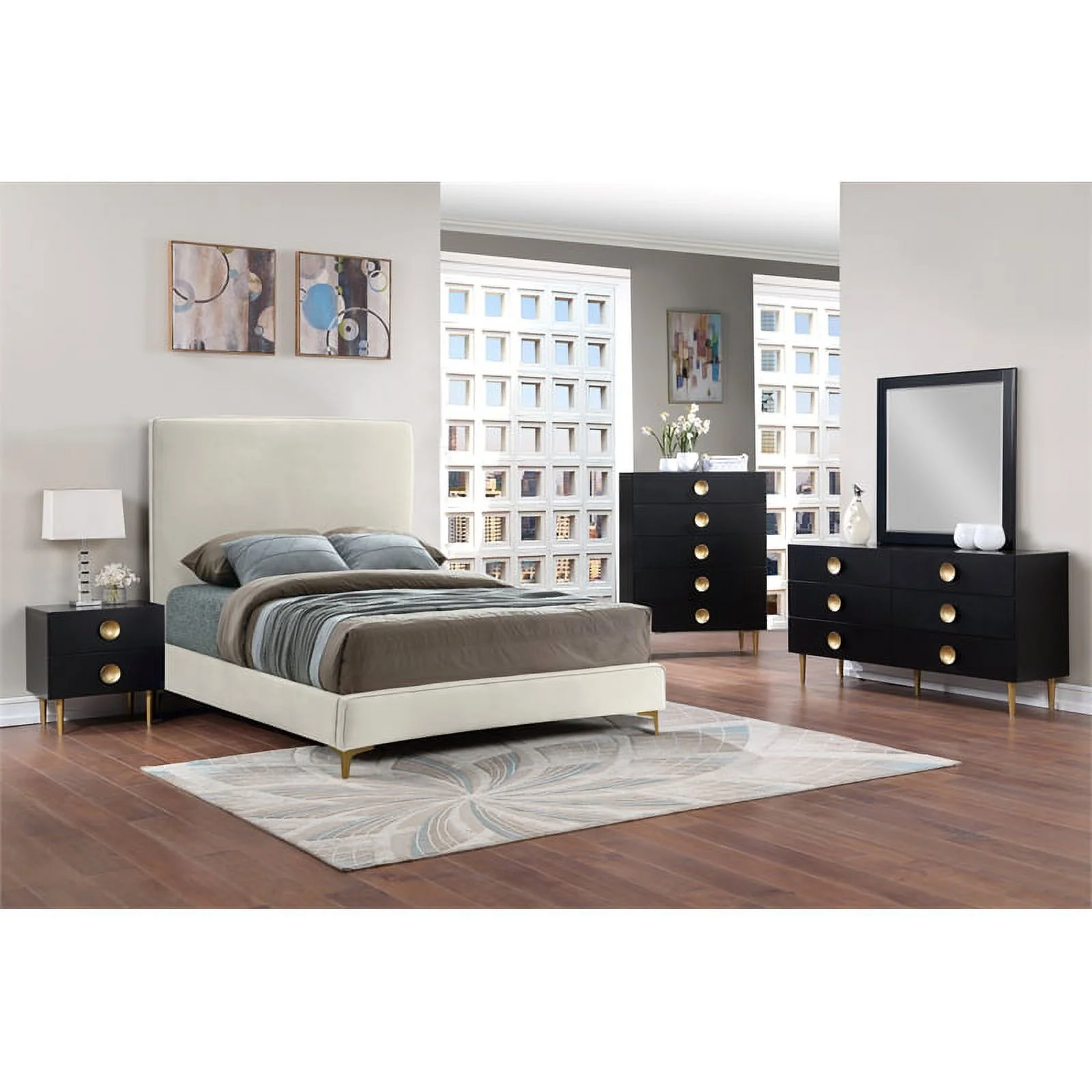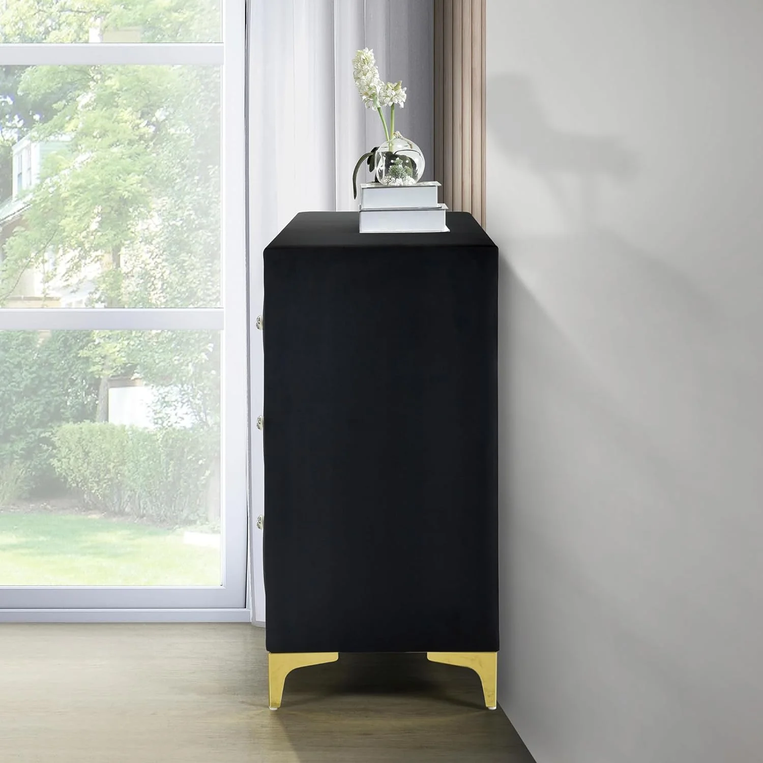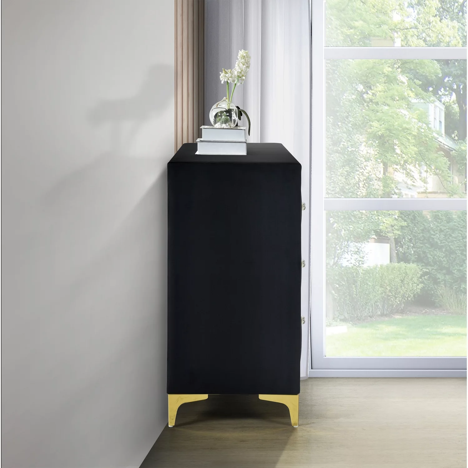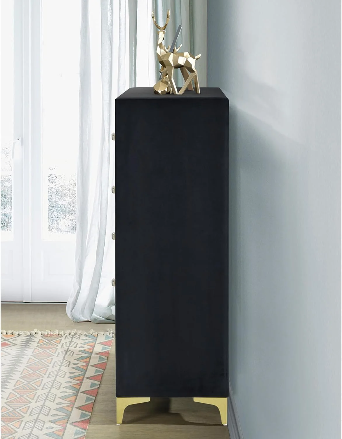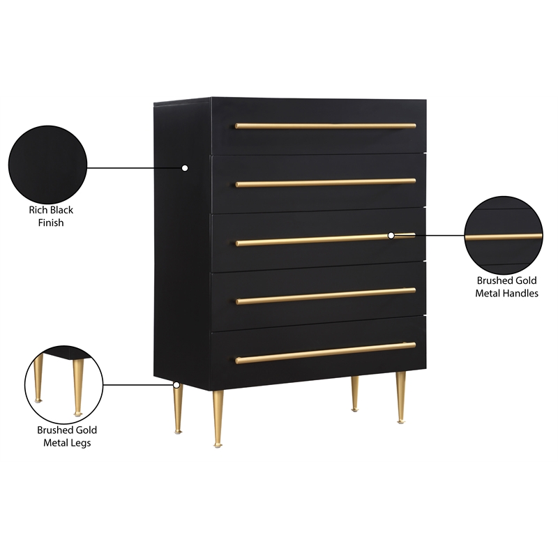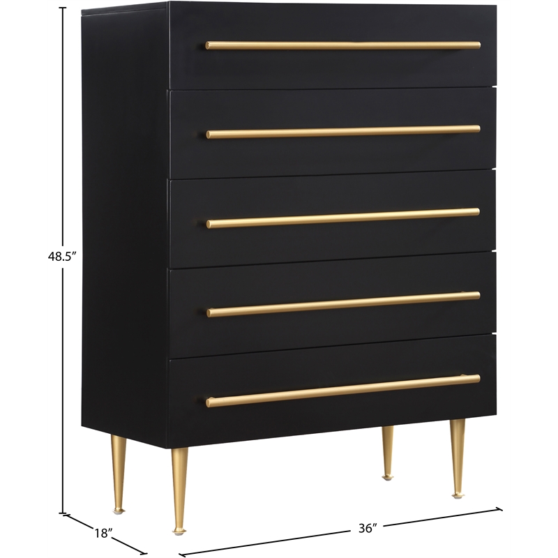 Meridian Furniture Marisol Black Chest with Gold Metal Legs and Handle