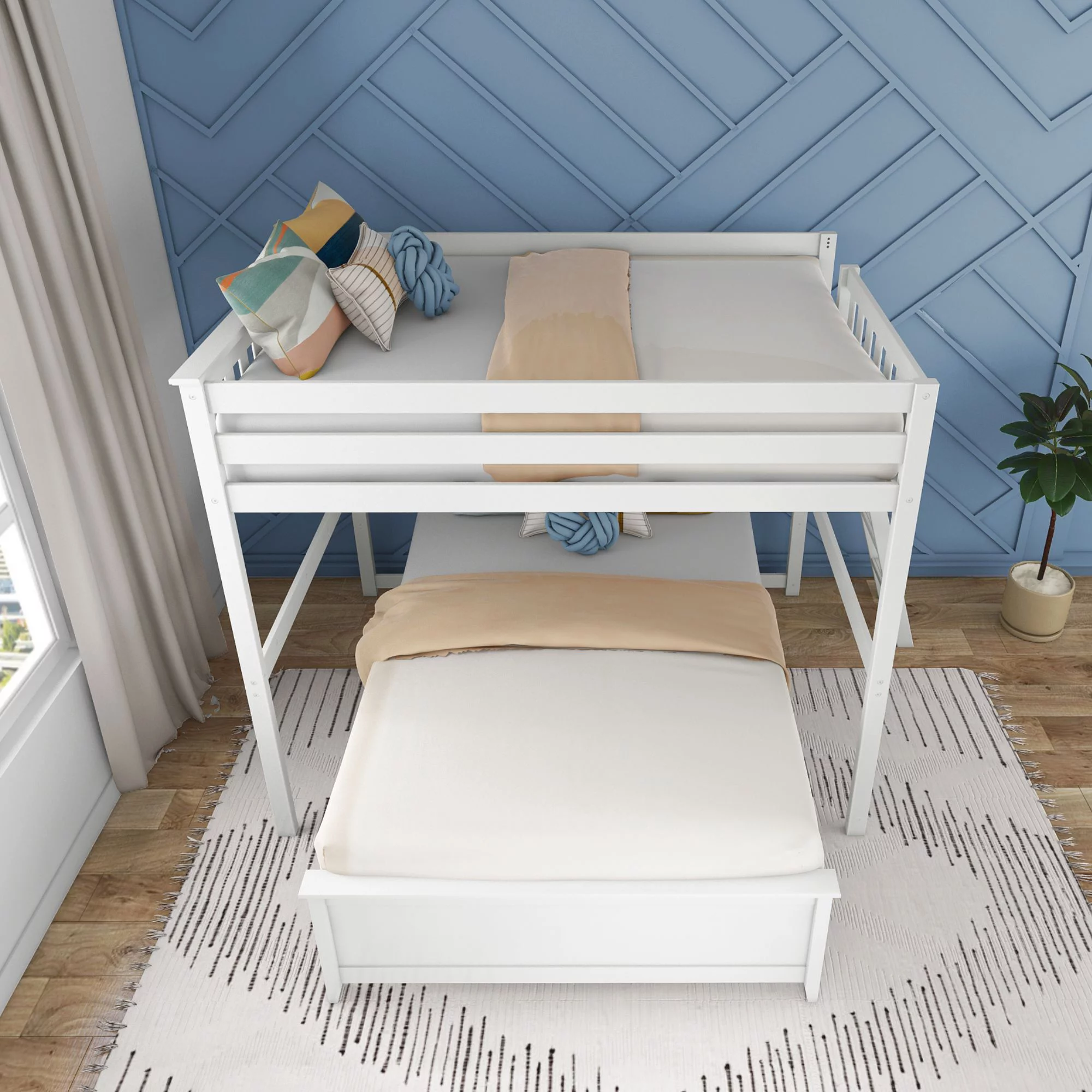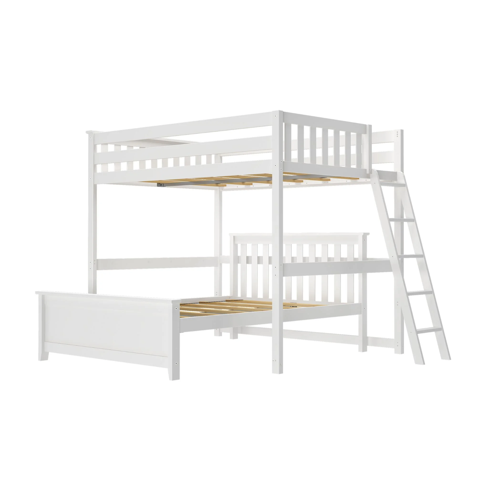 Max & Lily L-Shaped Full over Full Bunk Bed with Ladder on End, White