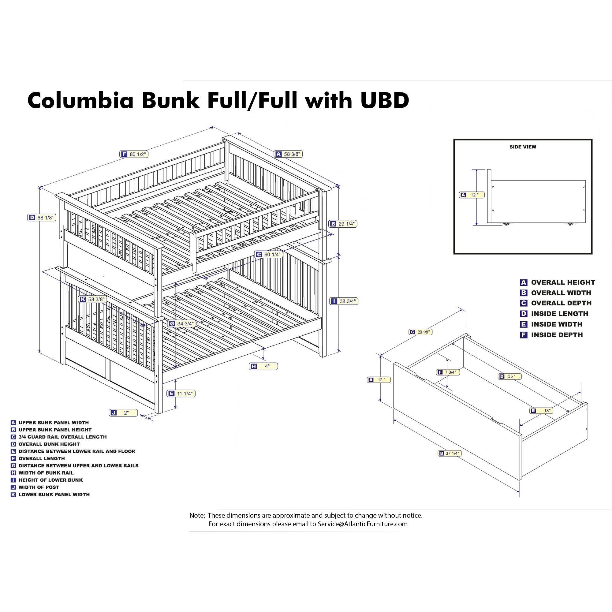 Columbia Bunk Bed Full over Full in Multiple Colors and Configurations